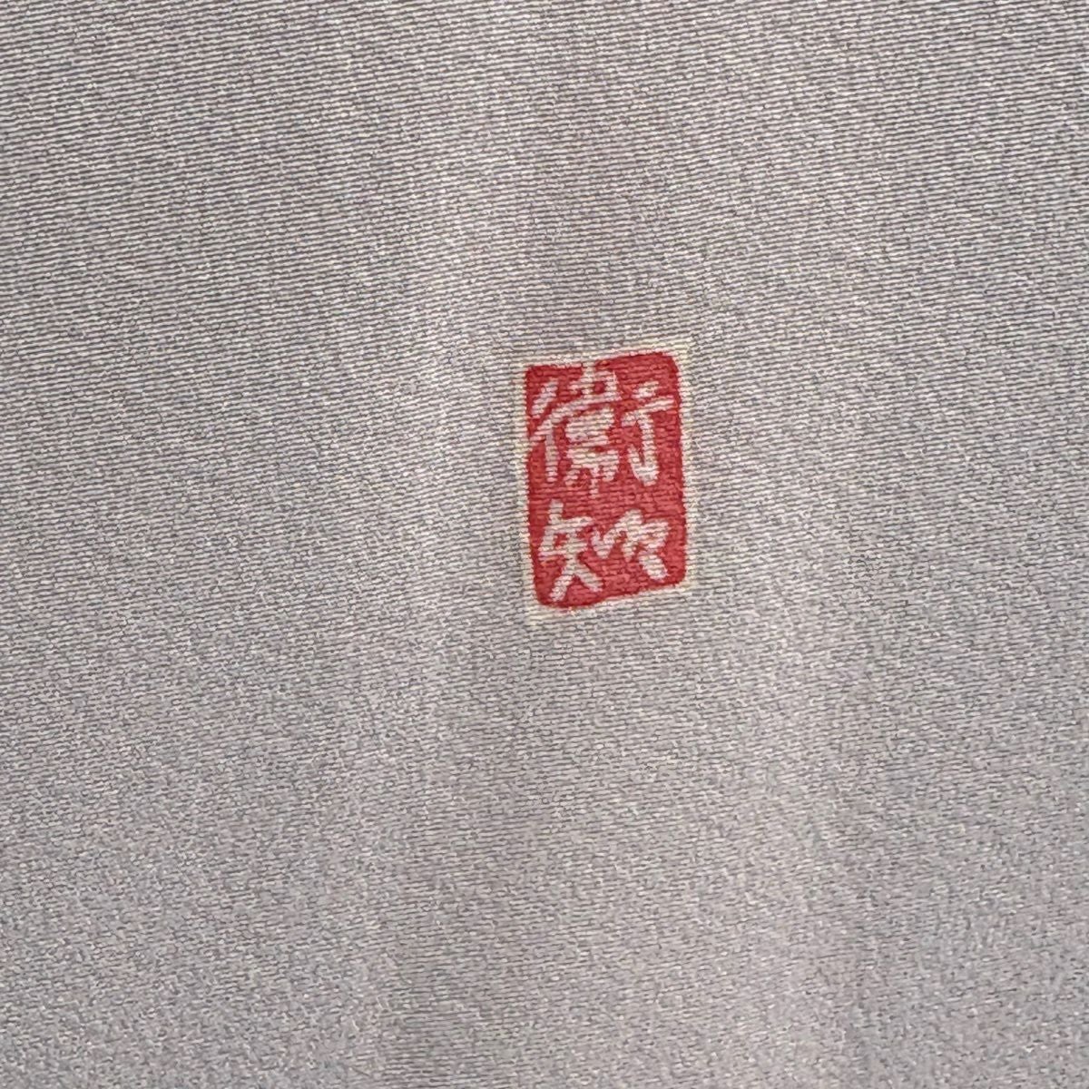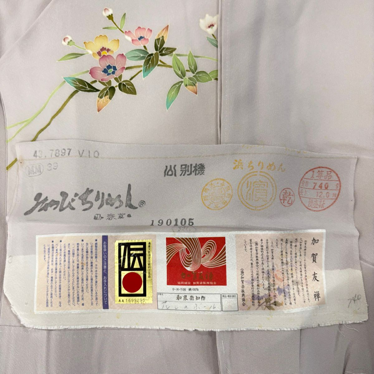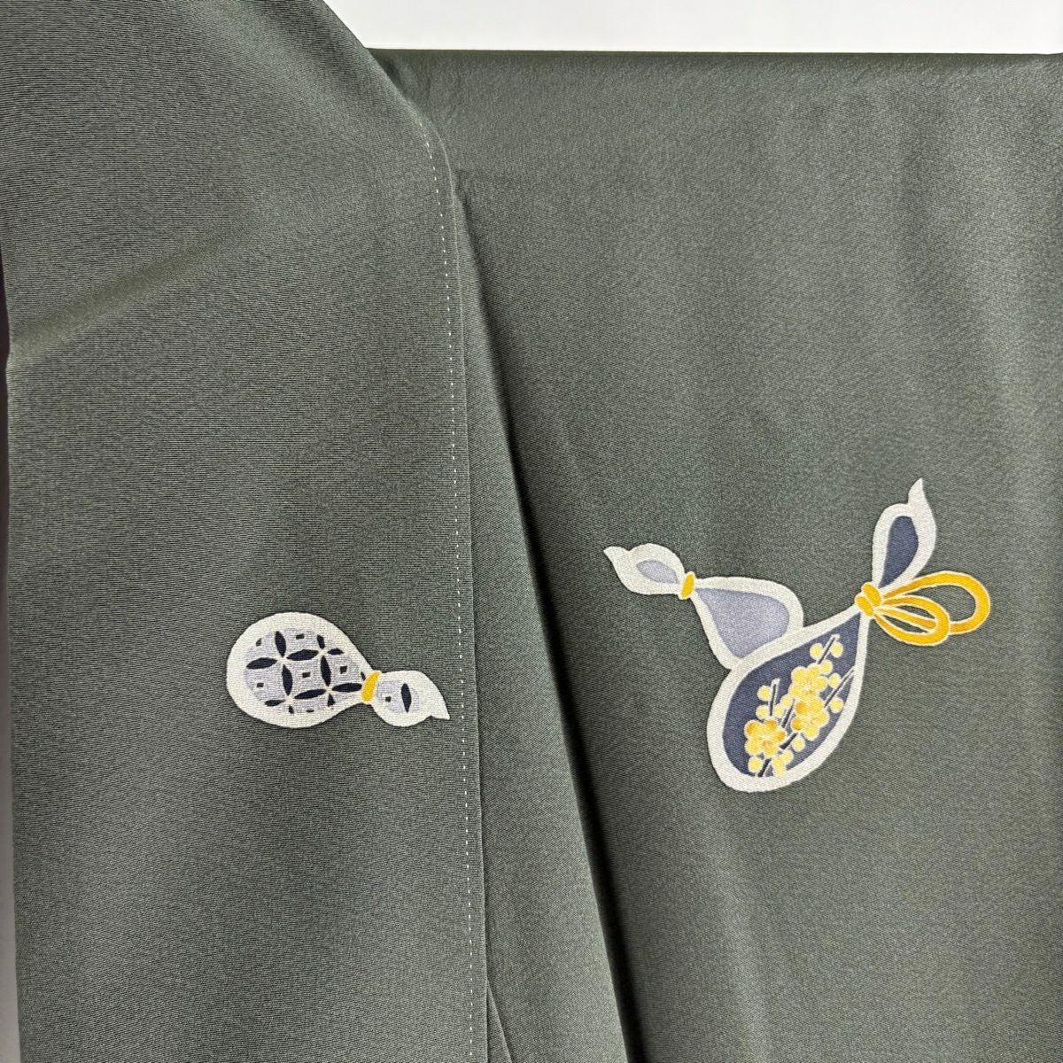 付下げ 身丈167cm 裄丈67.5cm L 袷 宮野勇造 加賀友禅 落款あり 証紙あり 瓢箪 七宝 灰緑 正絹 逸品