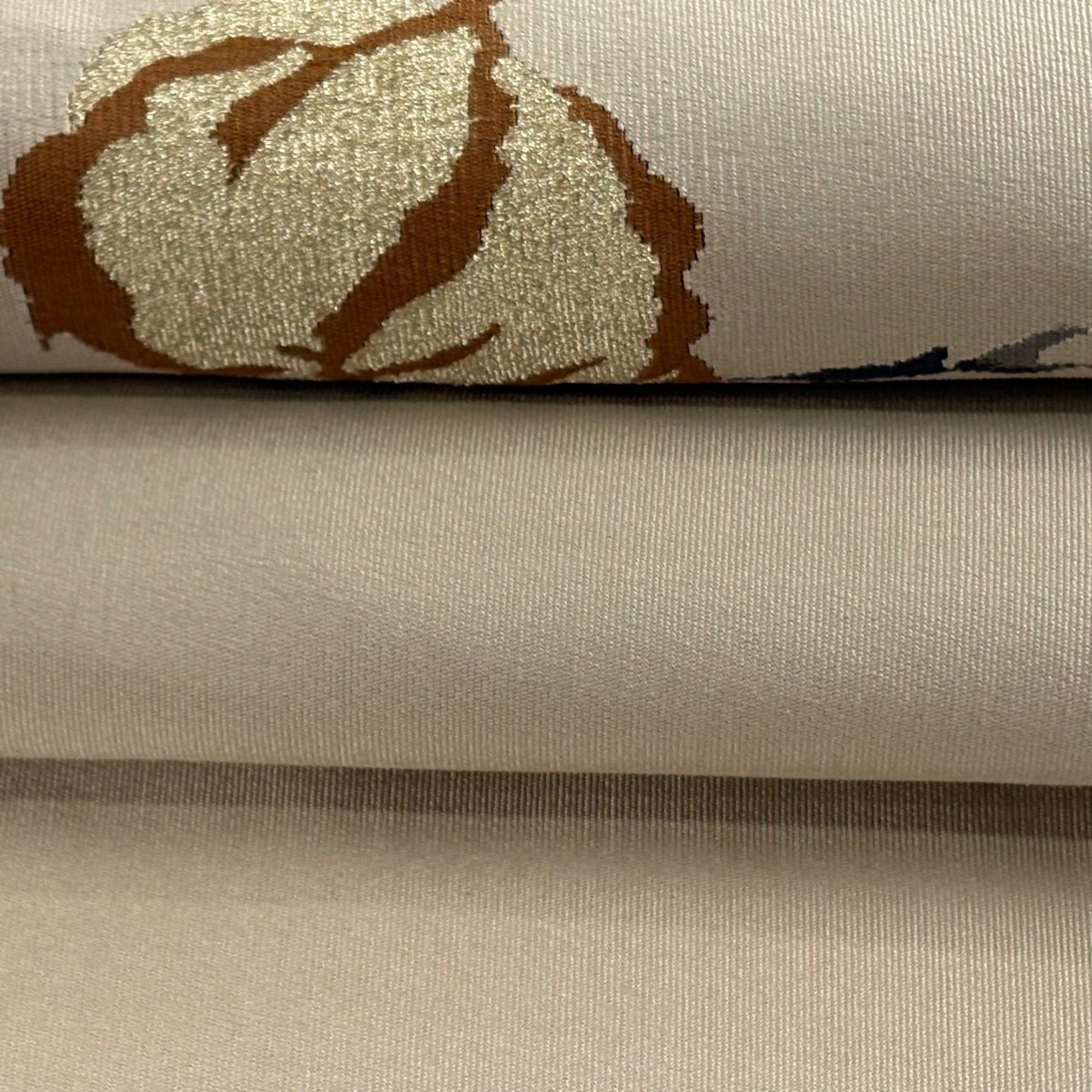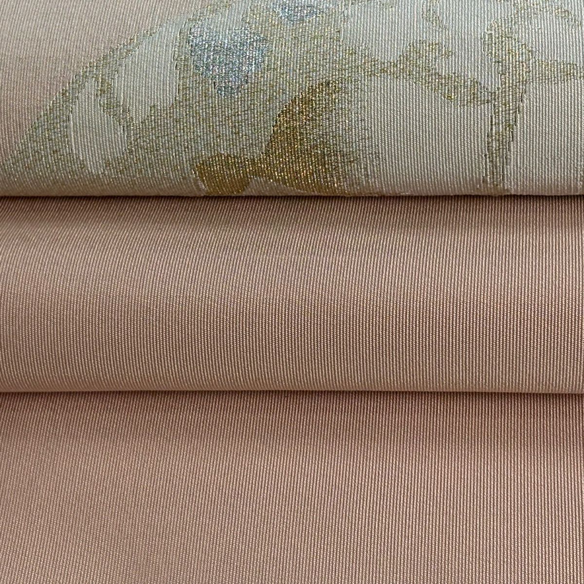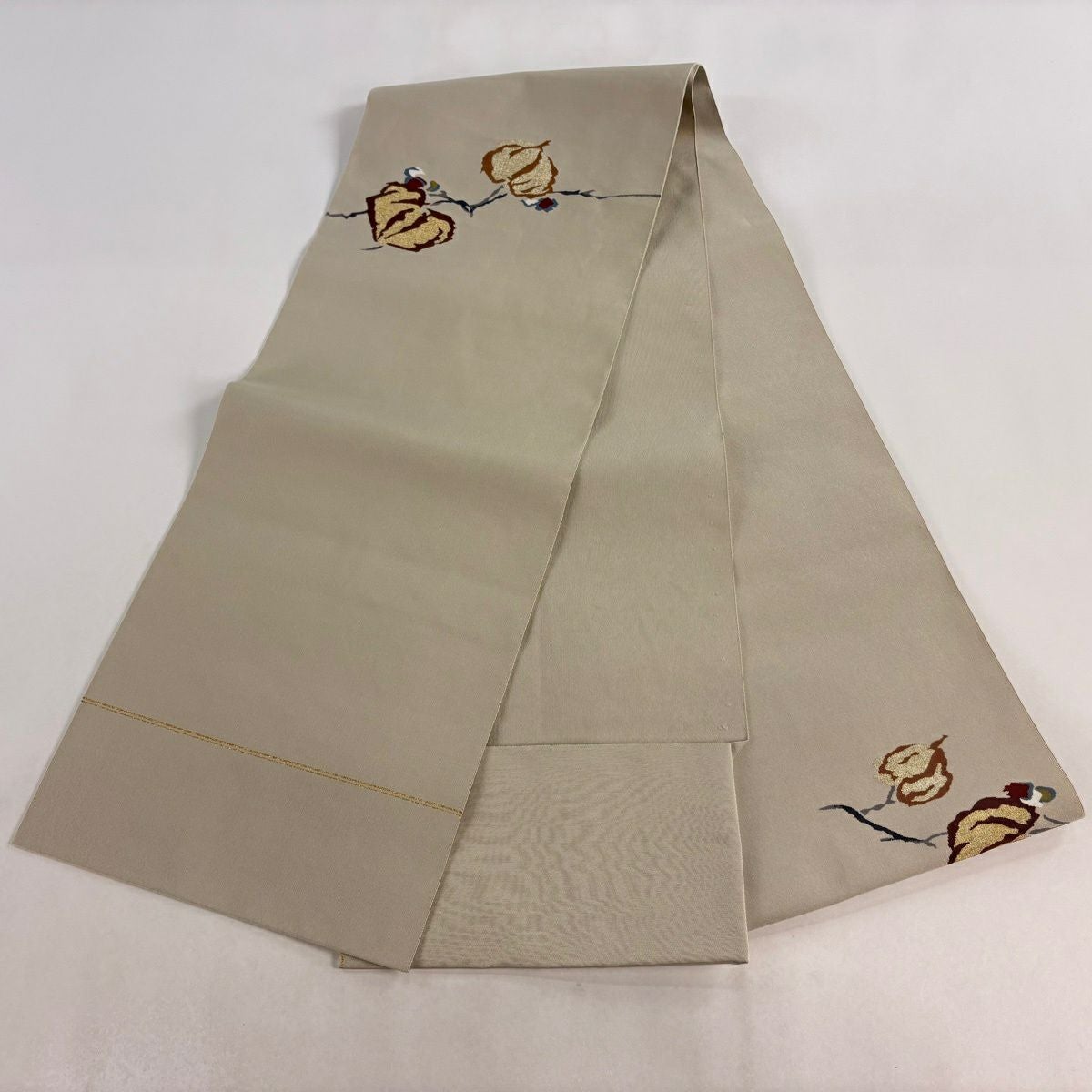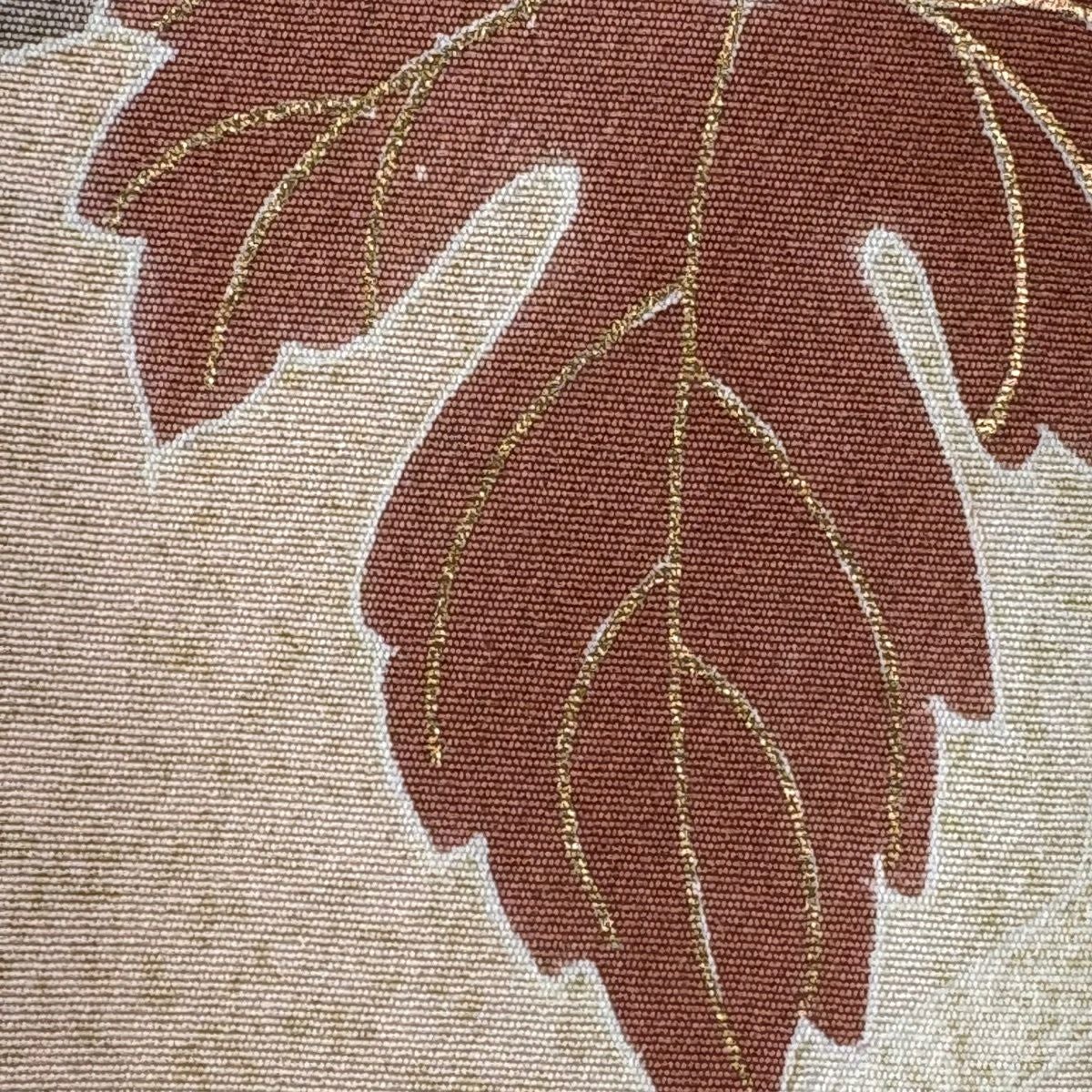 名古屋帯 逸品 落款あり 証紙あり 八寸名古屋帯 松葉仕立て 西陣 小川英 共箱付き 扇面 葉柄 金銀糸 薄ピンク 正絹