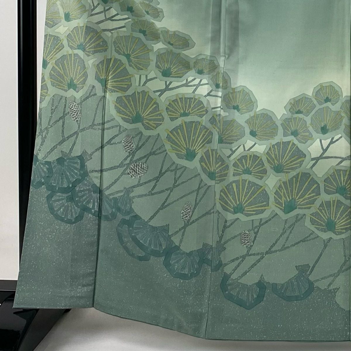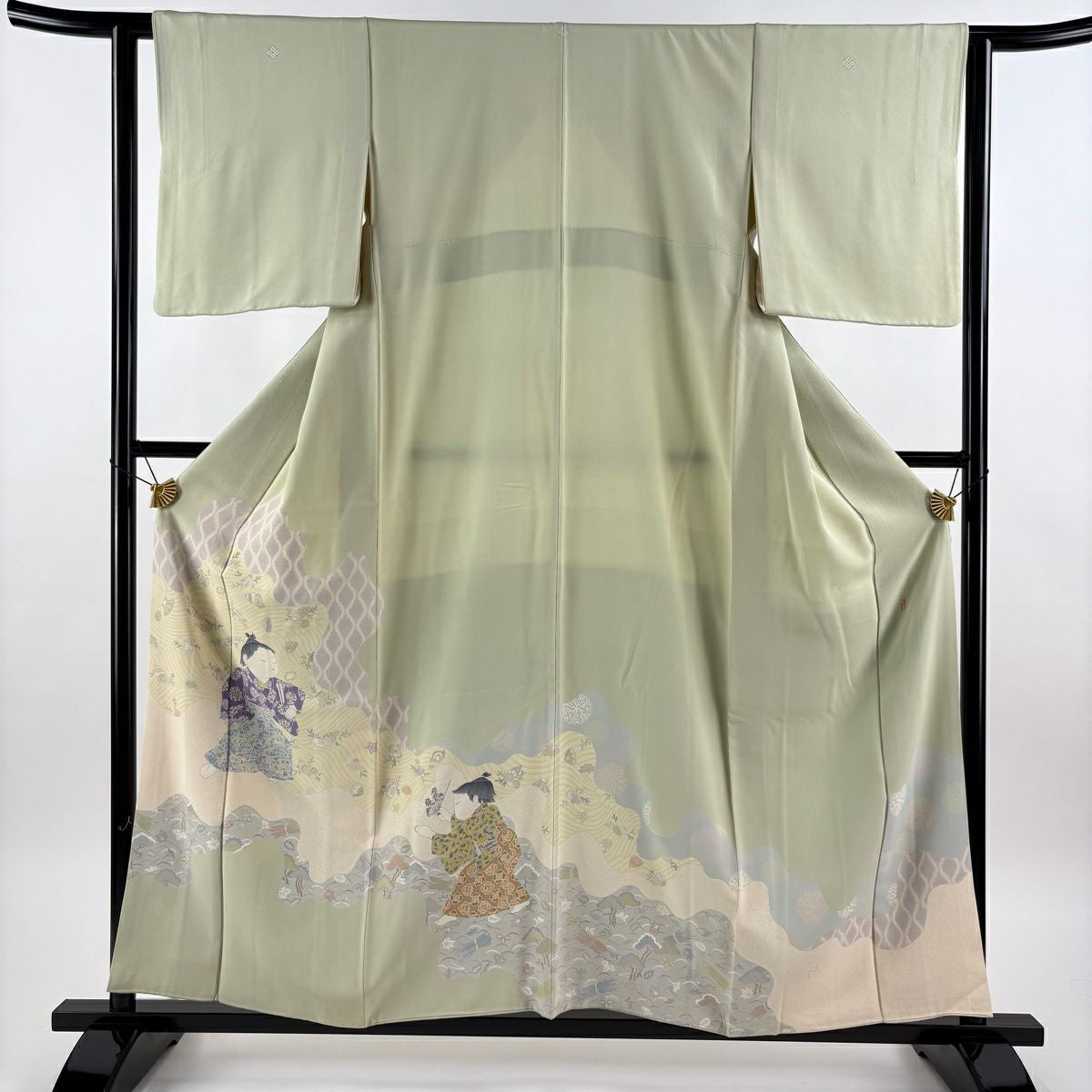 色留袖 身丈159cm 裄丈62cm S 袷 由水十久 加賀友禅 落款あり 童 貝 染分け 薄緑 正絹 逸品 三つ紋