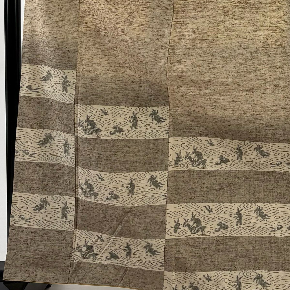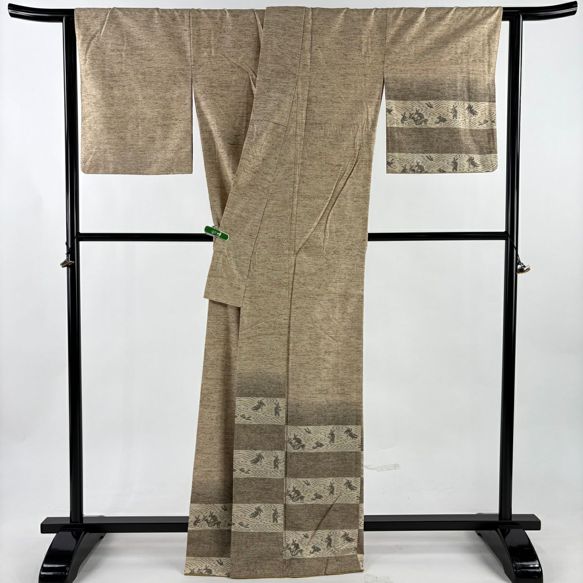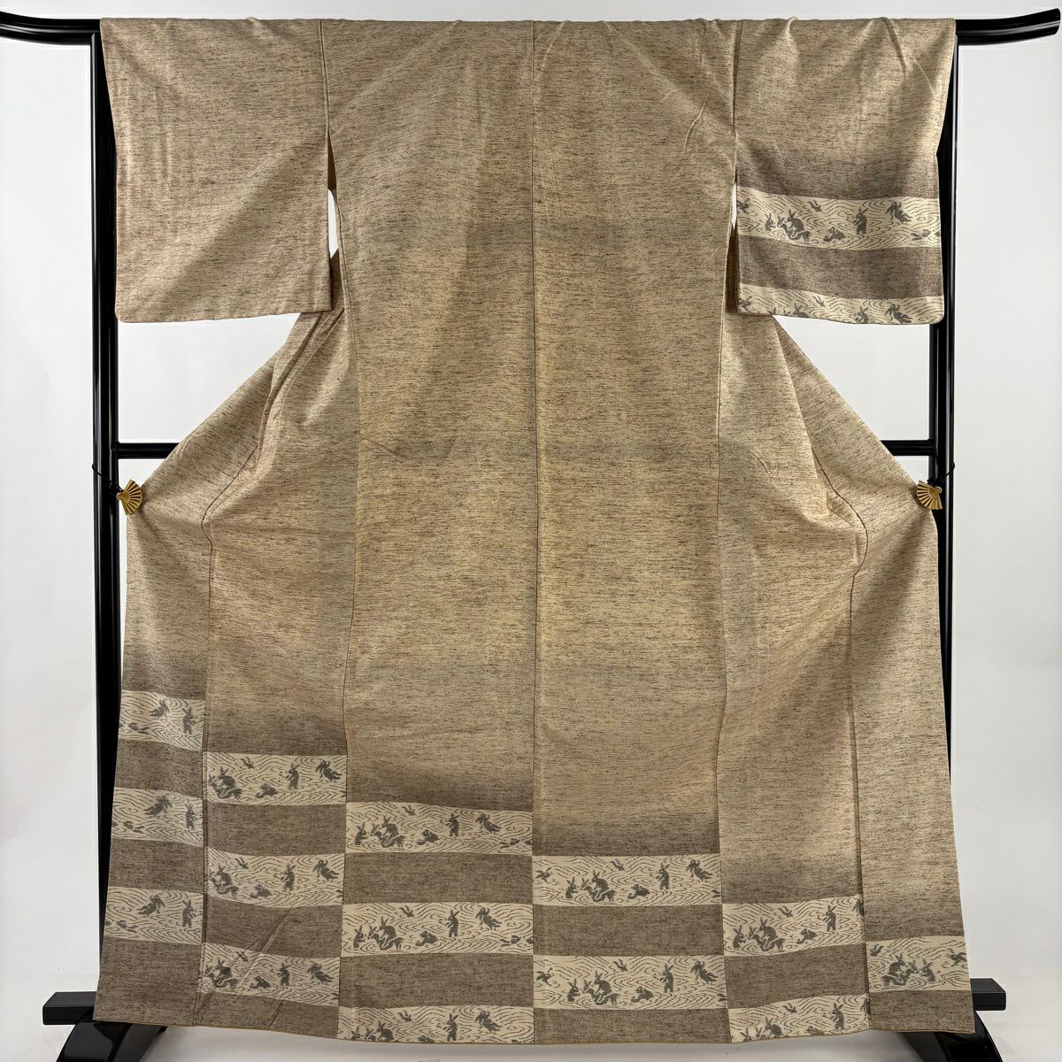 【美品】 付下げ 身丈166cm 裄丈64.5cm M 袷 ぜんまい紬地 根津儀一 うさぎ 流水 薄茶色 正絹 逸品