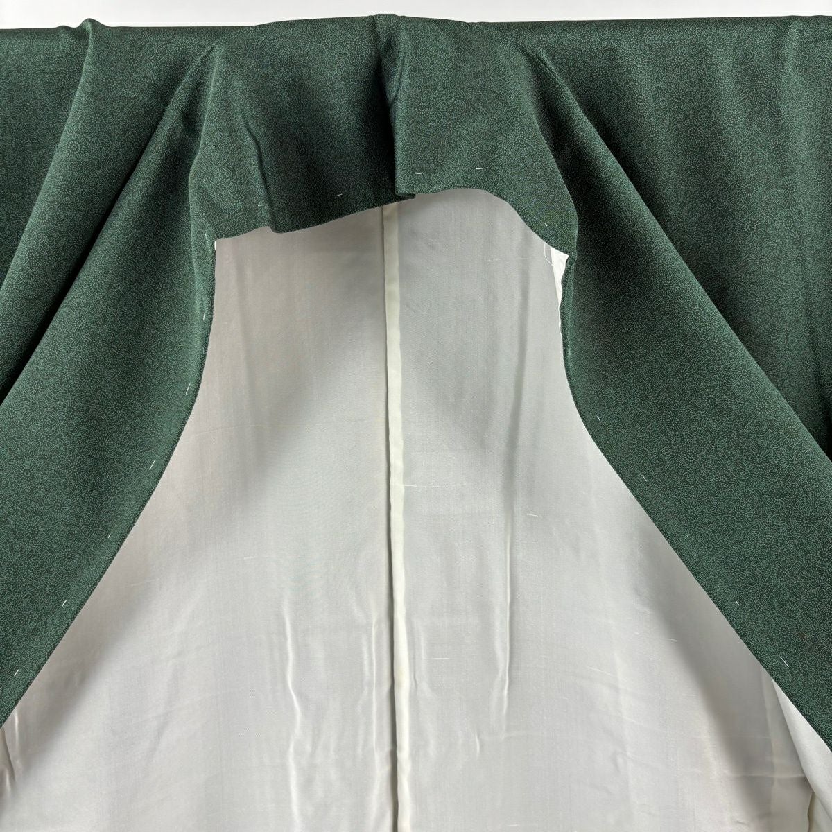 【美品】 江戸小紋 身丈157cm 裄丈65.5cm M 袷 人間国宝 中村勇二郎 落款あり 古代菊 緑 正絹 逸品