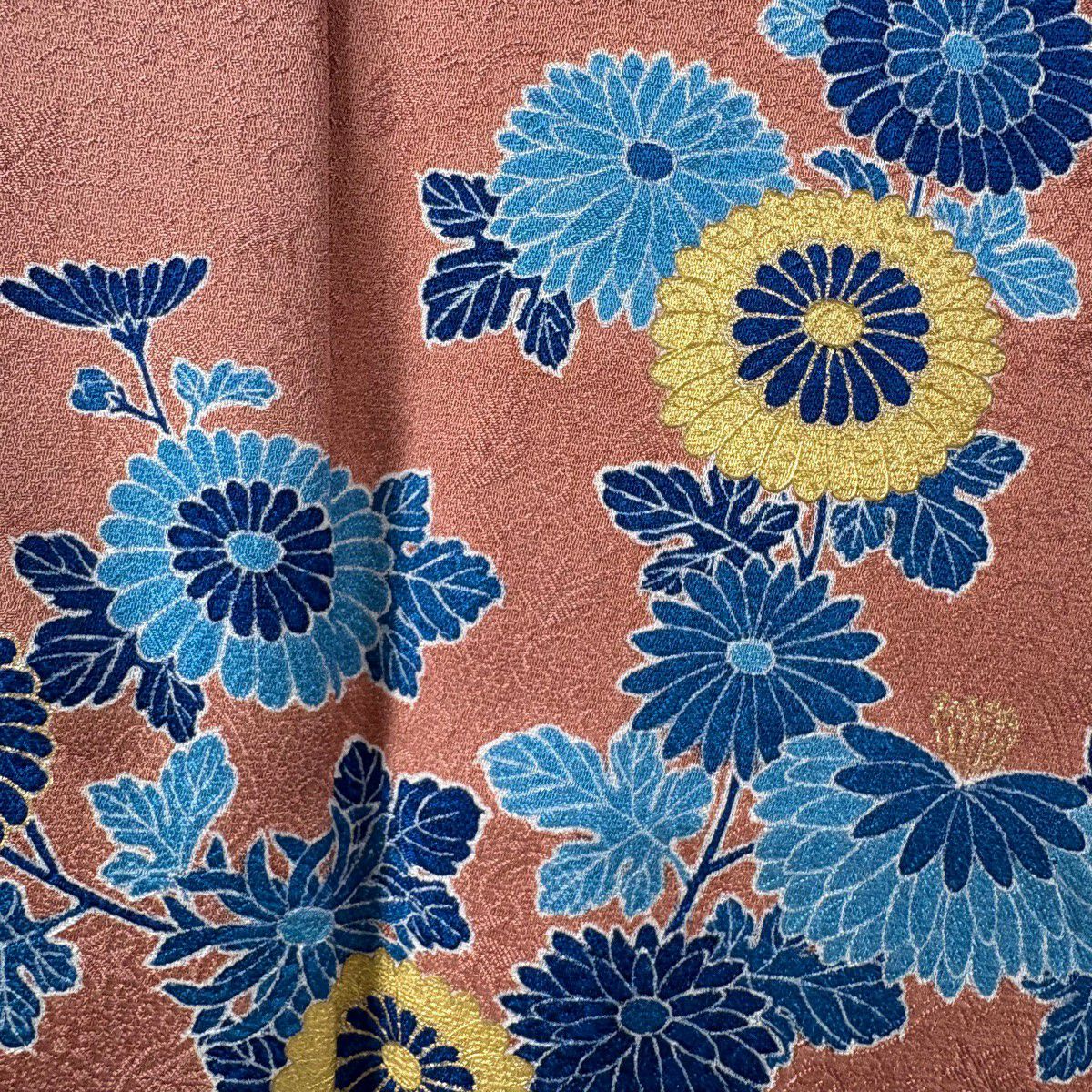 【美品】 付下げ 身丈168cm 裄丈68cm L 袷 田畑喜八 伊と幸 落款あり 菊 青海波 金彩 薄小豆 正絹 逸品