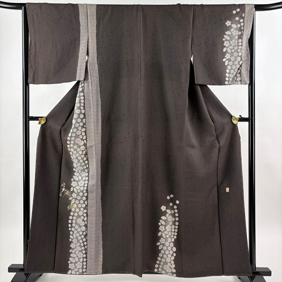 【美品】 訪問着 身丈160cm 裄丈65cm M 袷 吉乃一廉 落款あり 辻が花 銀通し 金彩 焦茶色 正絹 逸品