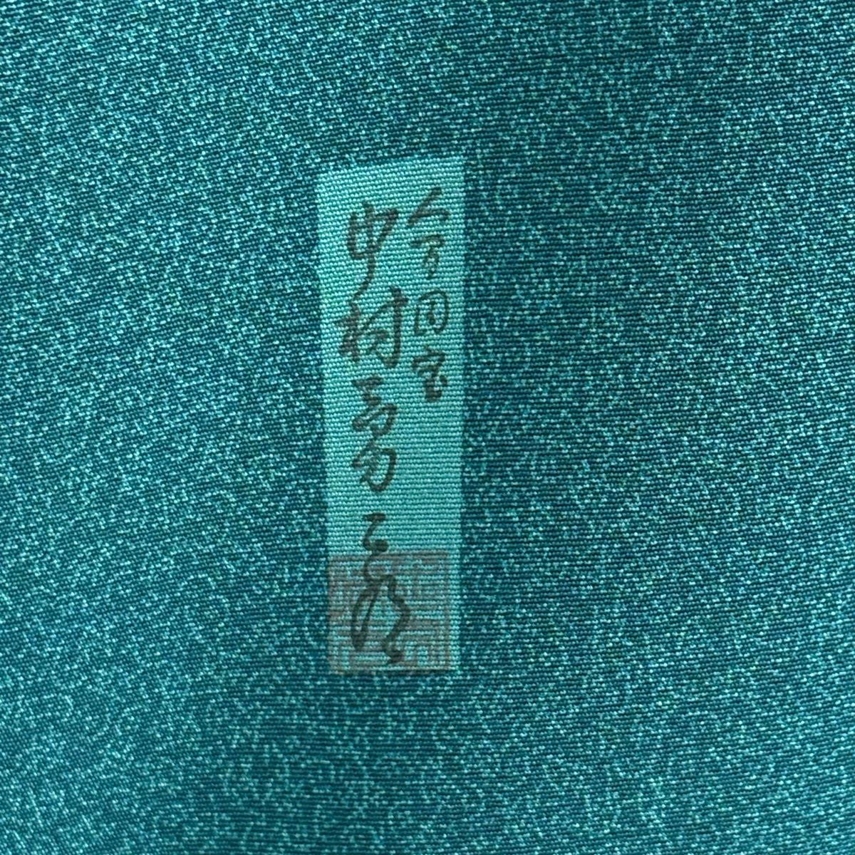 江戸小紋 身丈154cm 裄丈63.5cm S 袷 人間国宝 中村勇二郎 落款あり 文字文 青緑 正絹 逸品 一つ紋