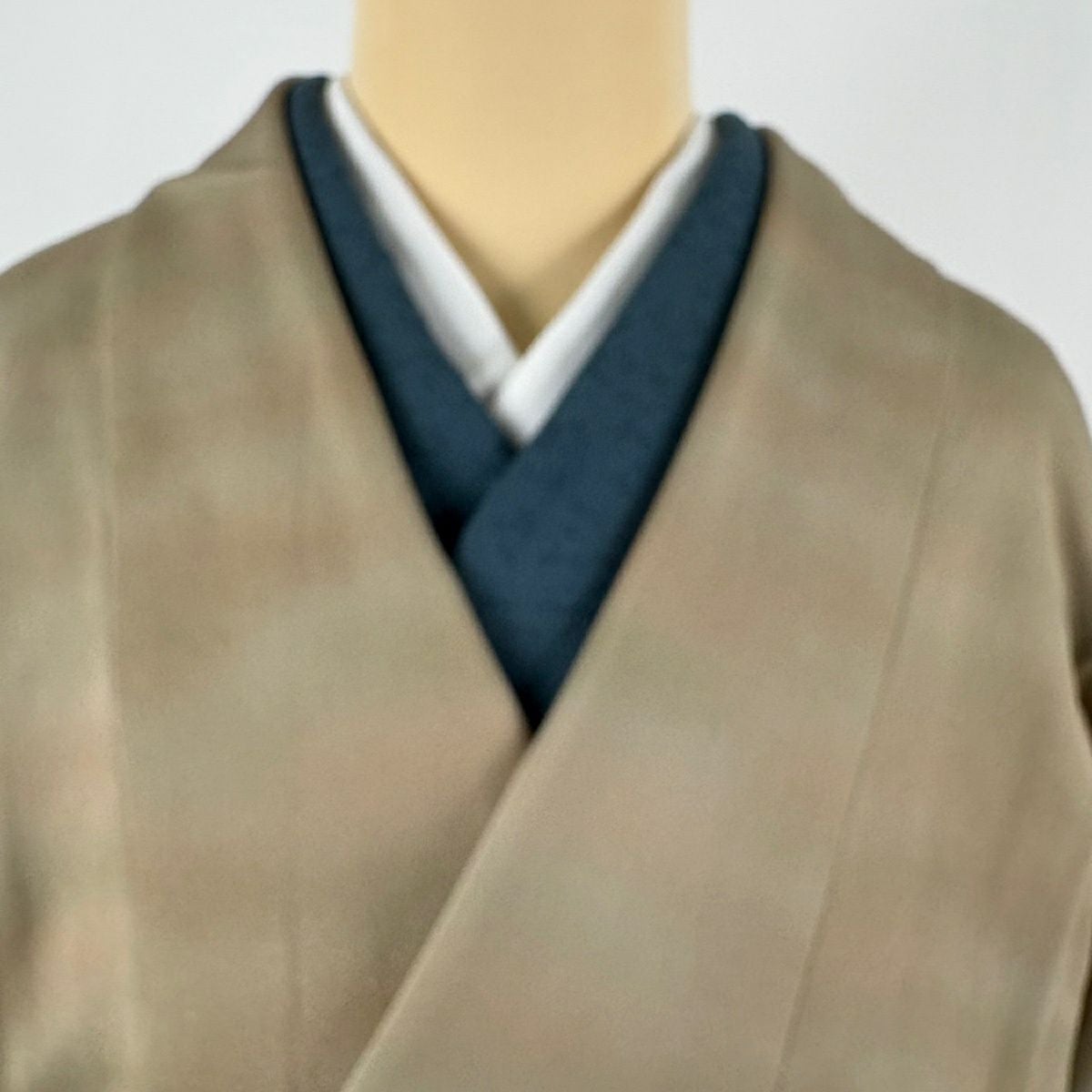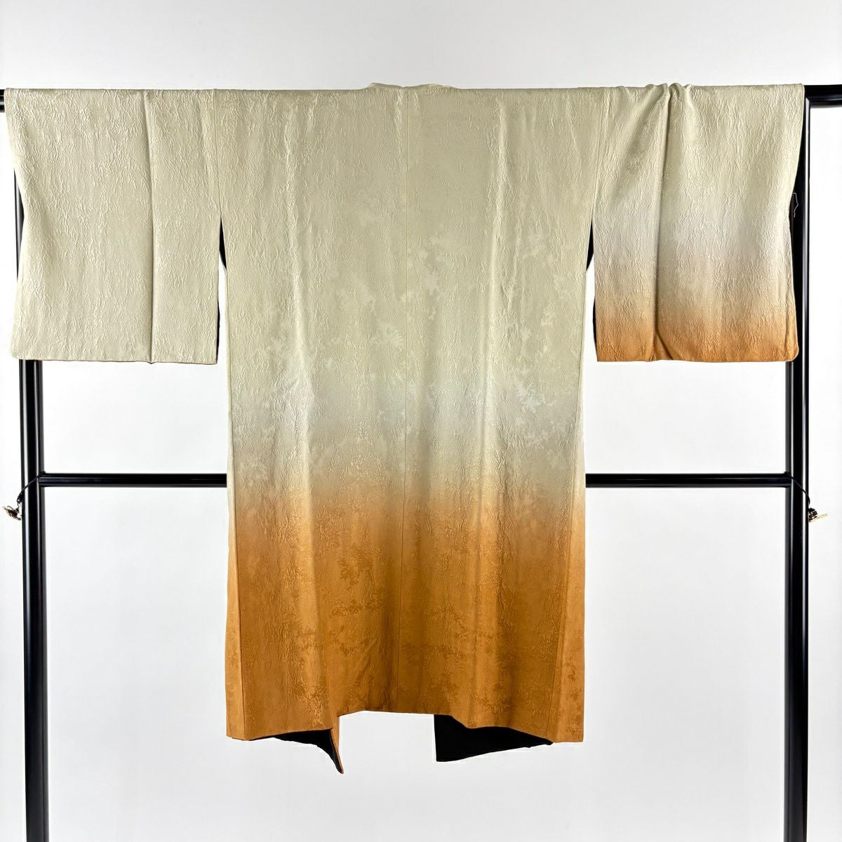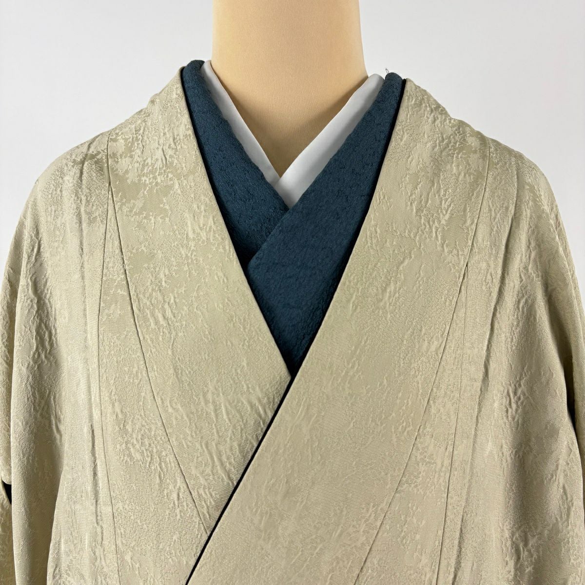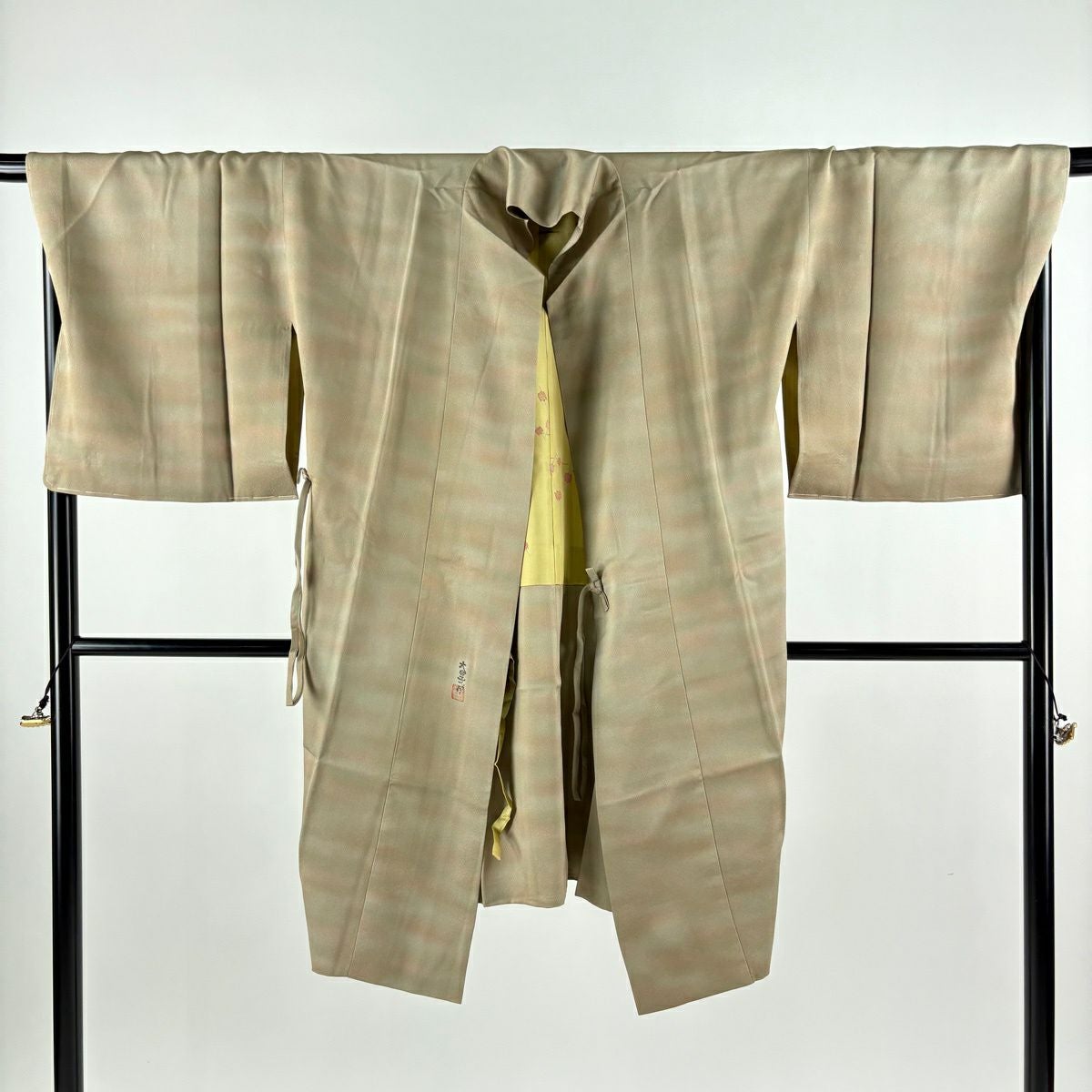 【美品】 道中着 身丈108cm 裄丈68cm L 和装コート 着物衿 リバーシブル 地紋 裾ぼかし ベージュ 正絹 逸品