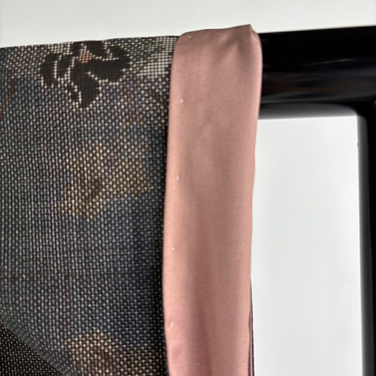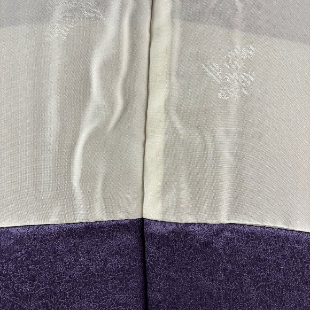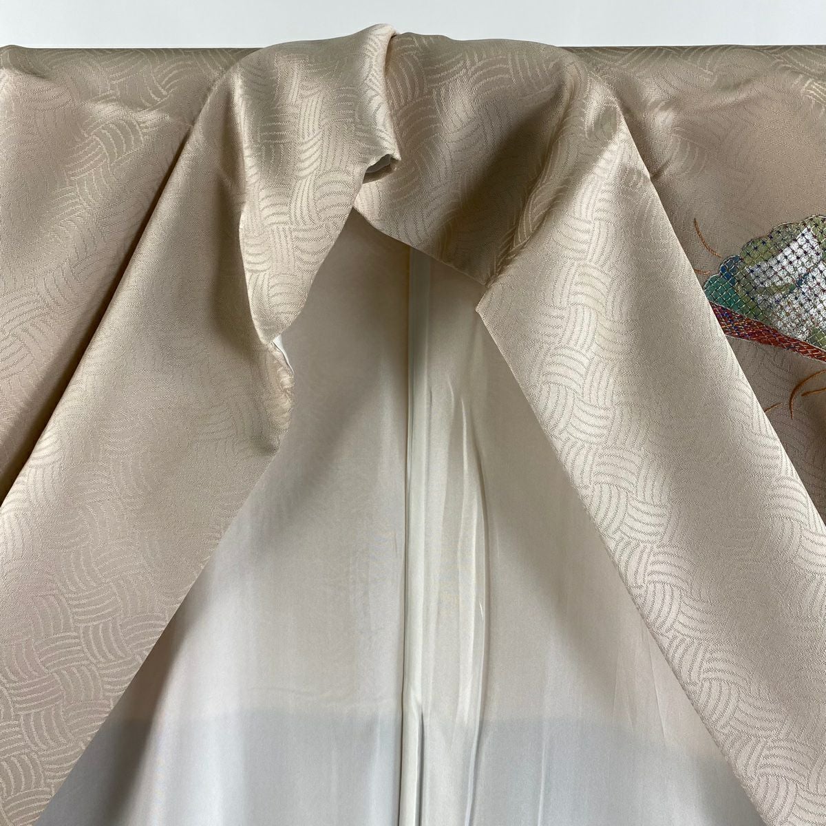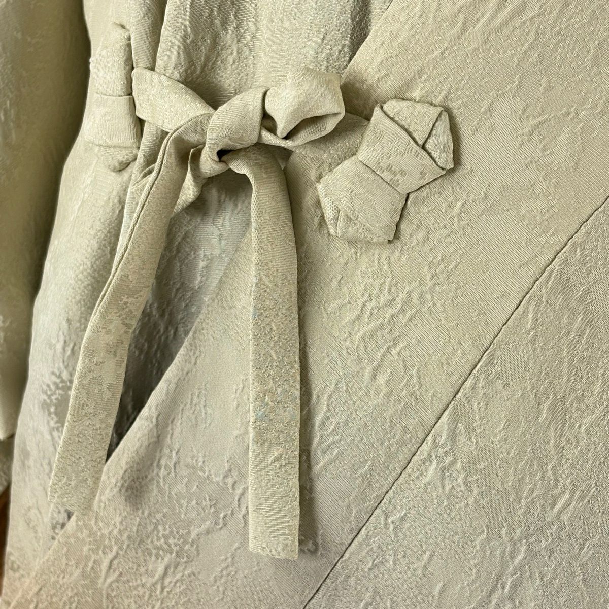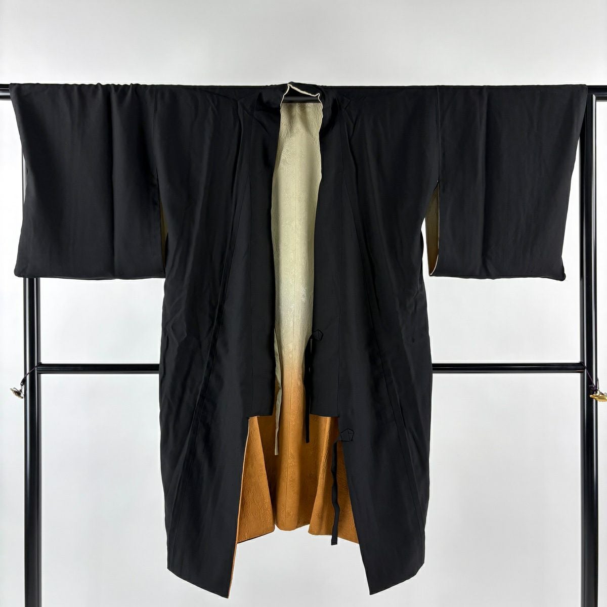 【美品】 道中着 身丈108cm 裄丈68cm L 和装コート 着物衿 リバーシブル 地紋 裾ぼかし ベージュ 正絹 逸品