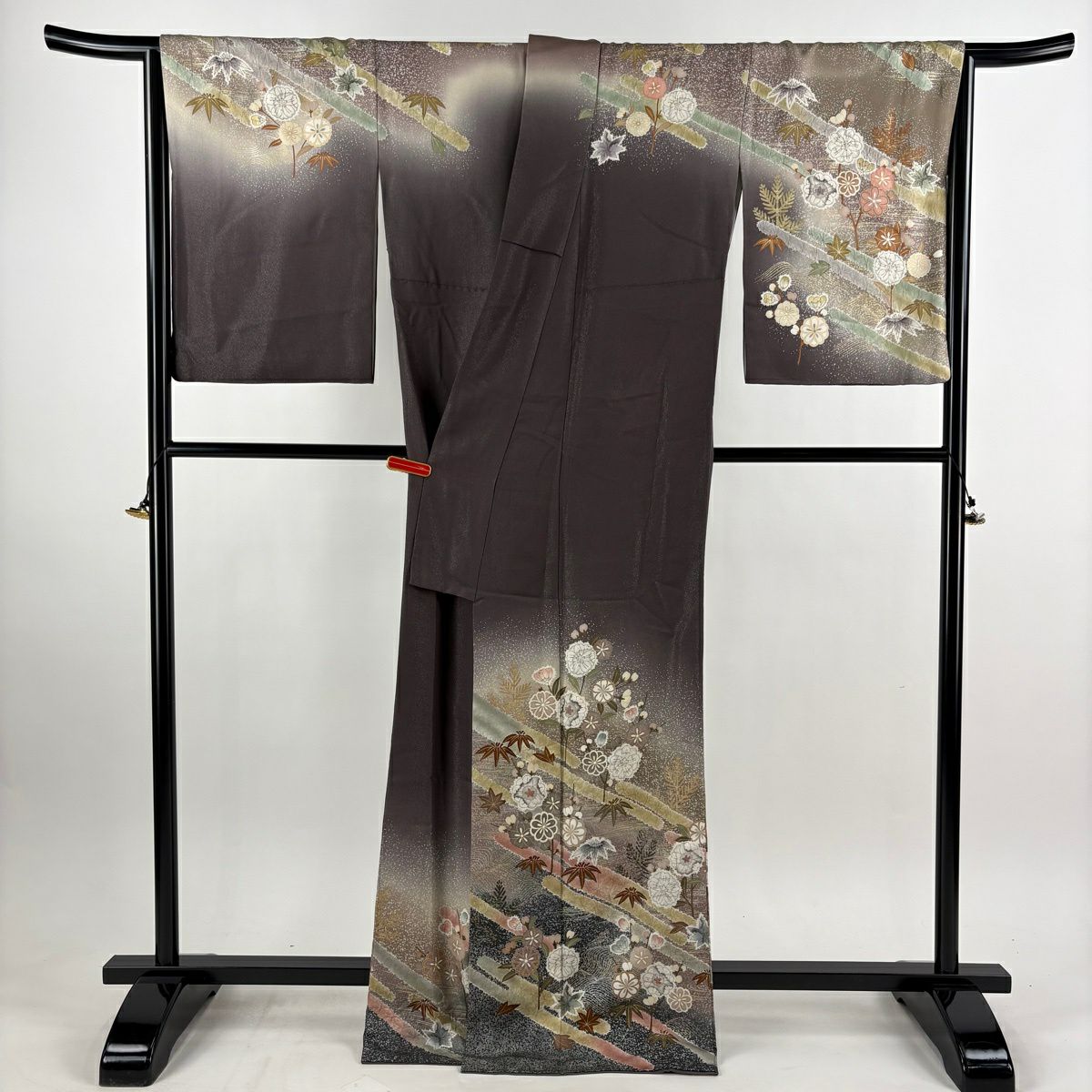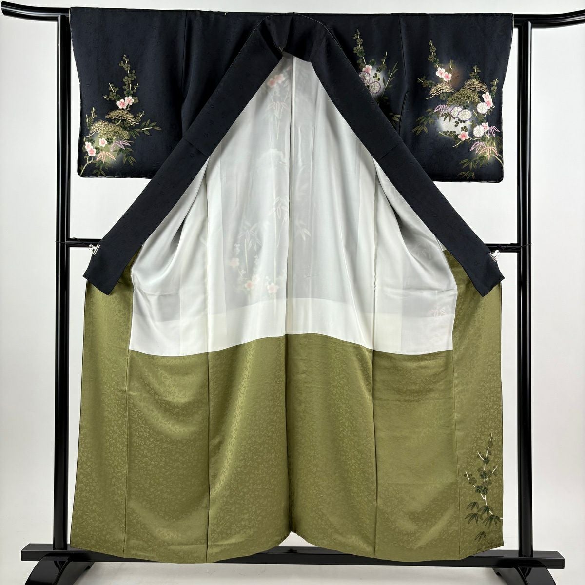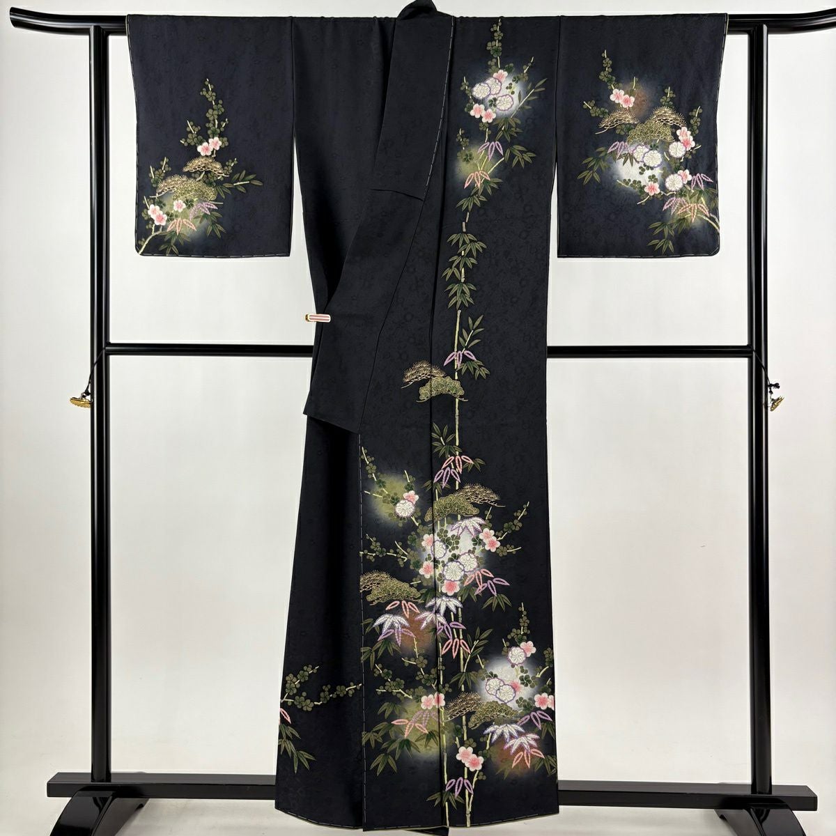 【美品】 訪問着 身丈158.5cm 裄丈61.5cm S 袷 徳永正峯 落款あり 辻が花 松竹梅 金彩 ぼかし 墨色 正絹 逸品