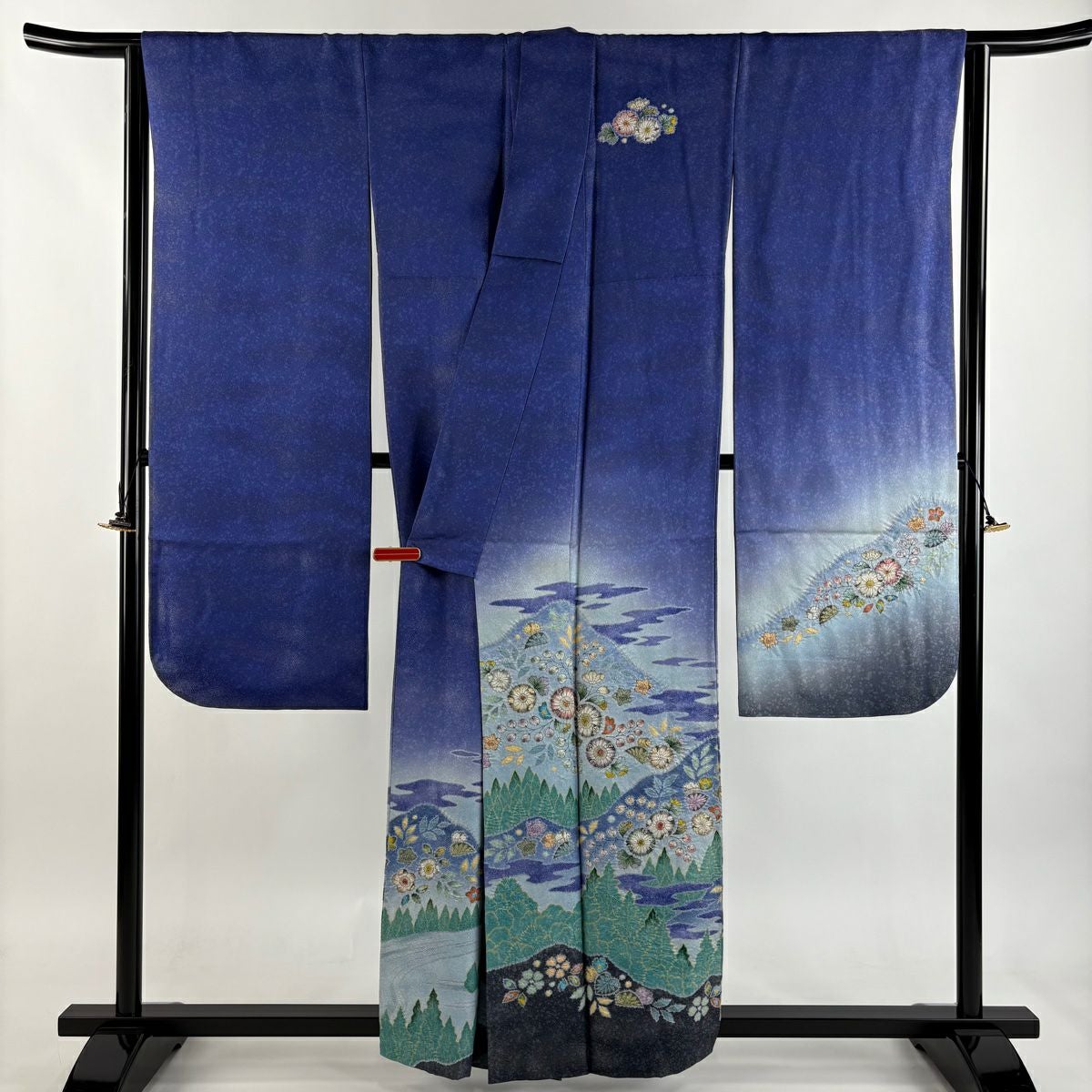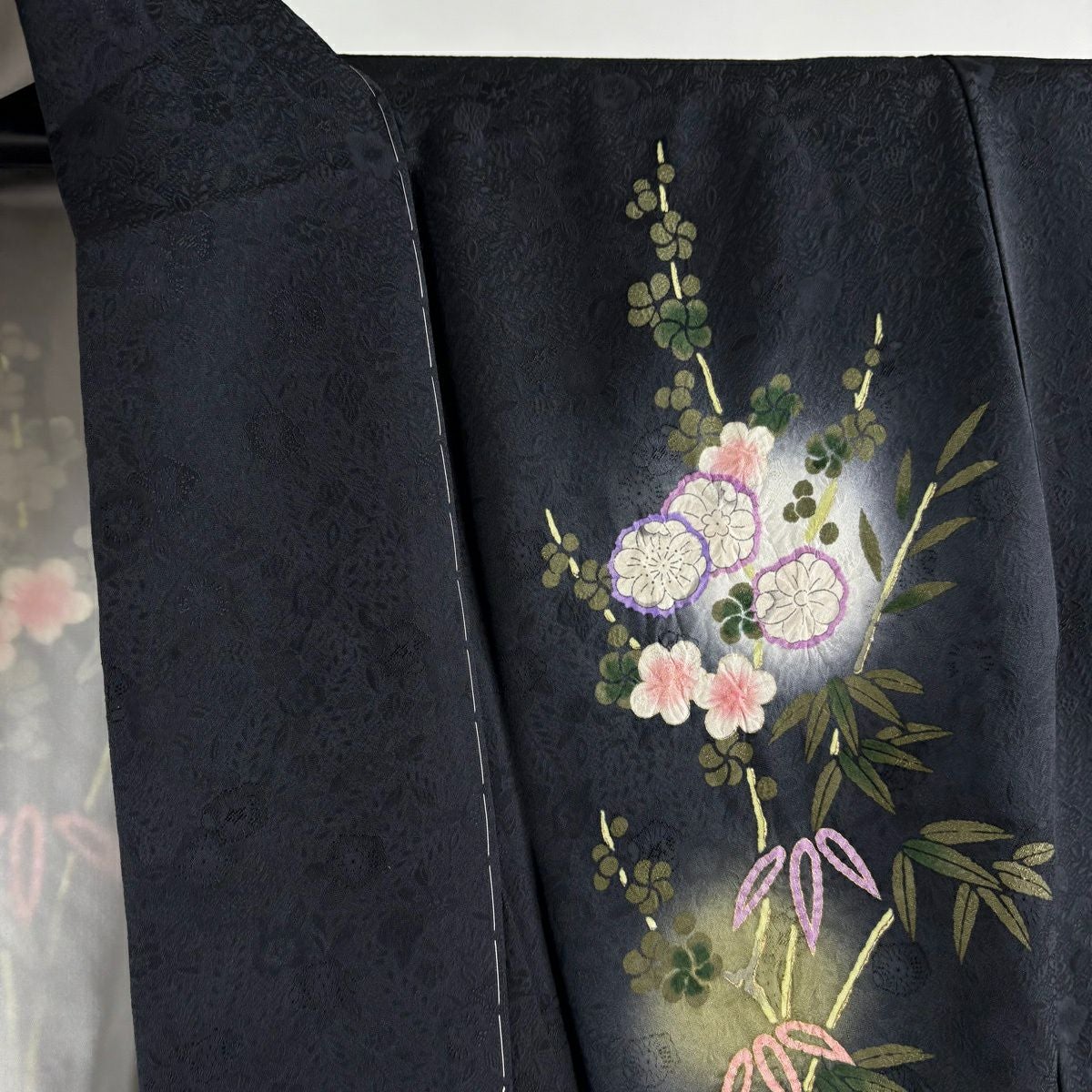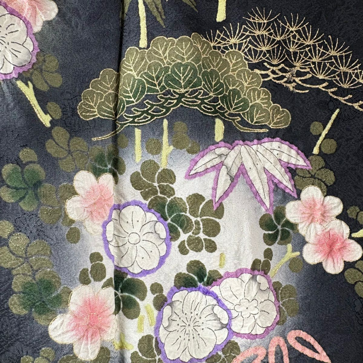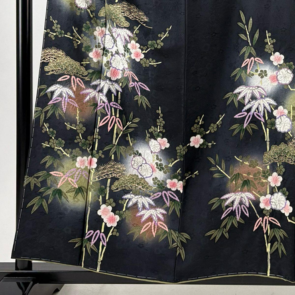 【美品】 訪問着 身丈158.5cm 裄丈61.5cm S 袷 徳永正峯 落款あり 辻が花 松竹梅 金彩 ぼかし 墨色 正絹 逸品