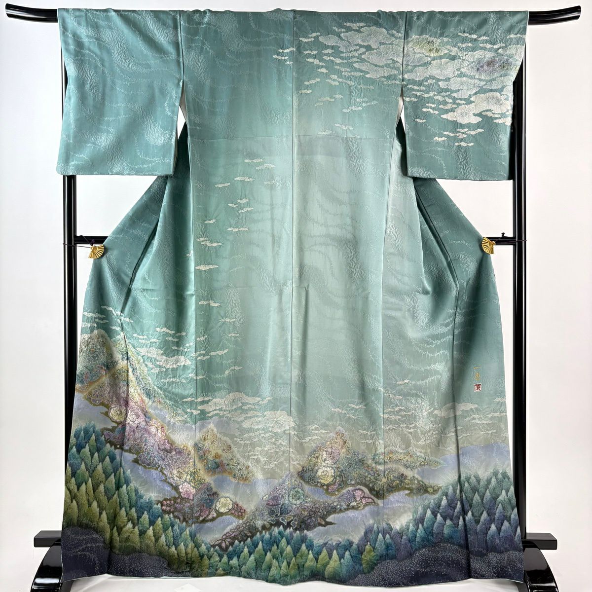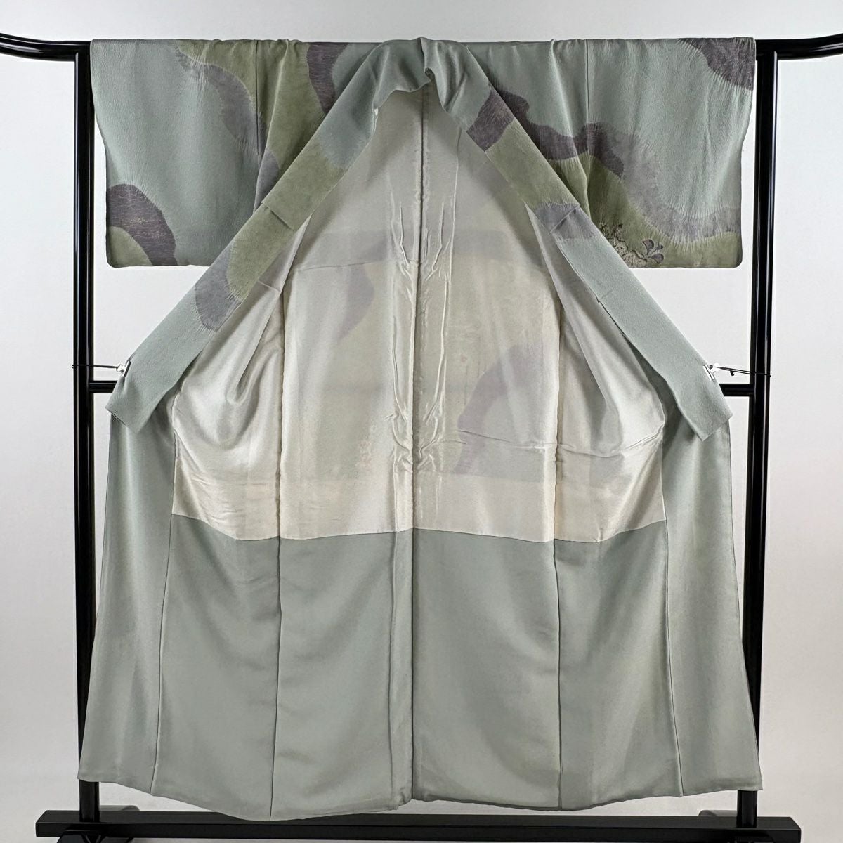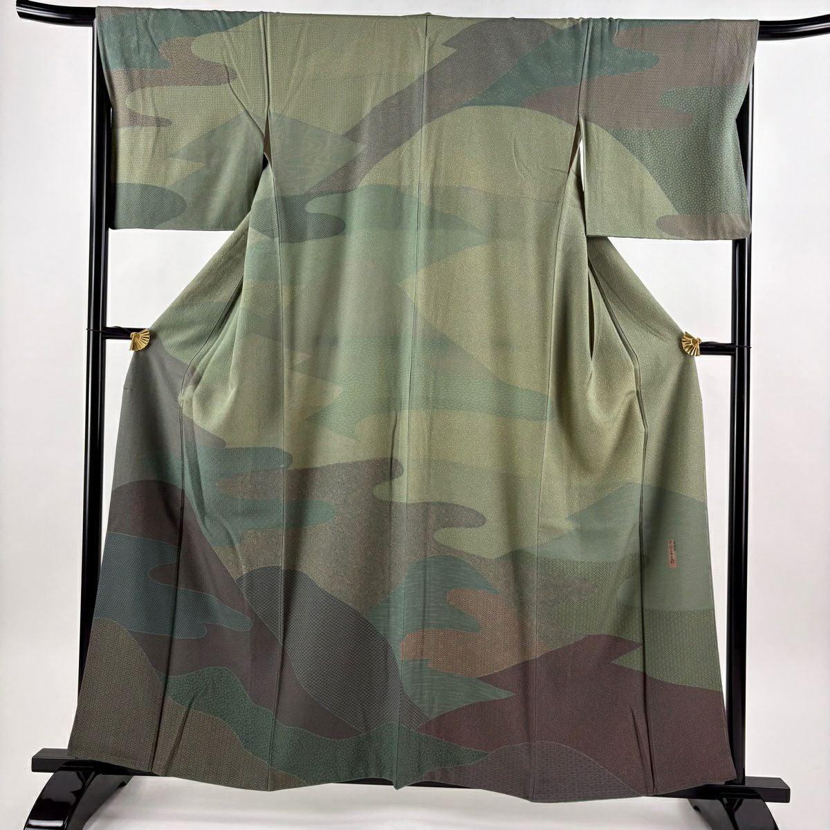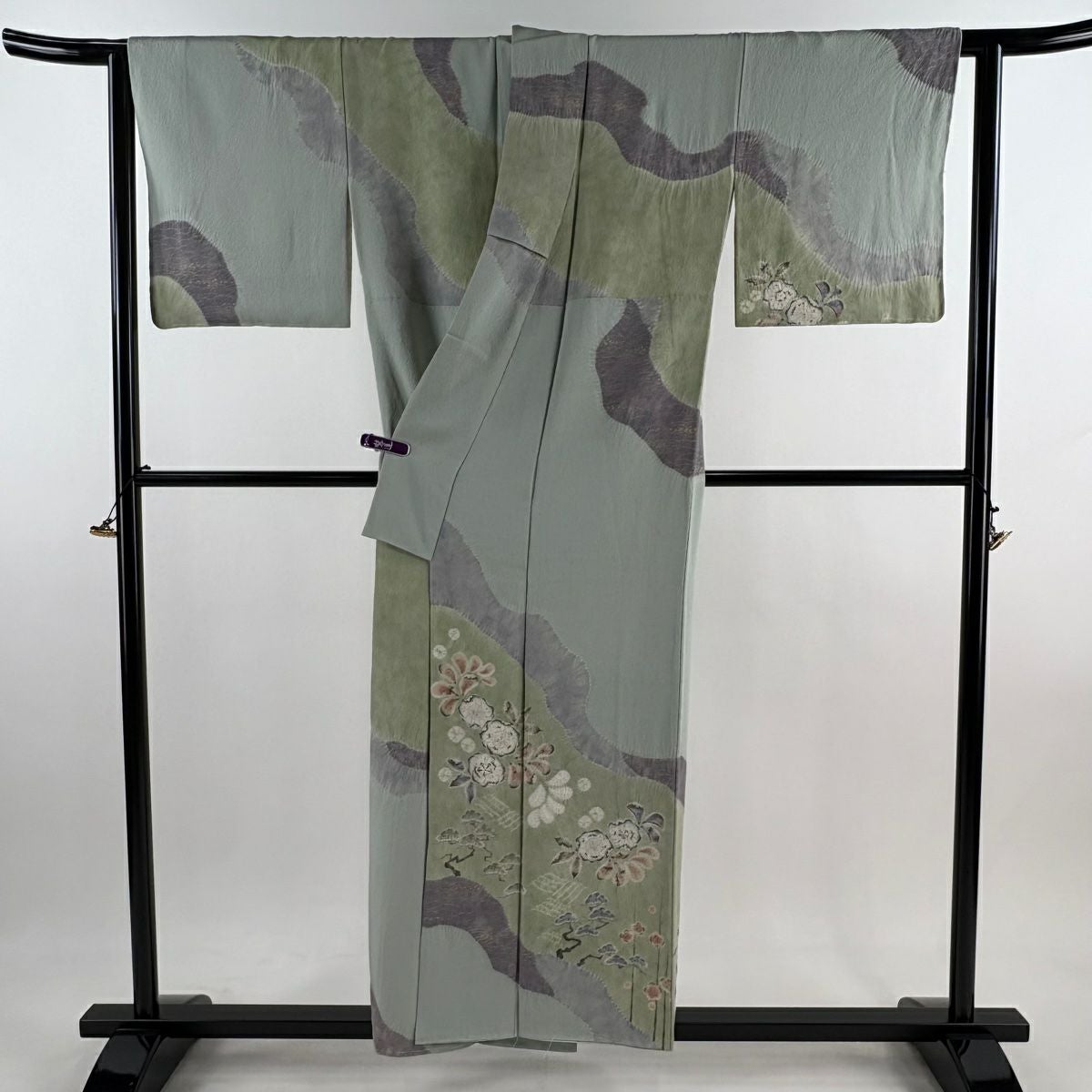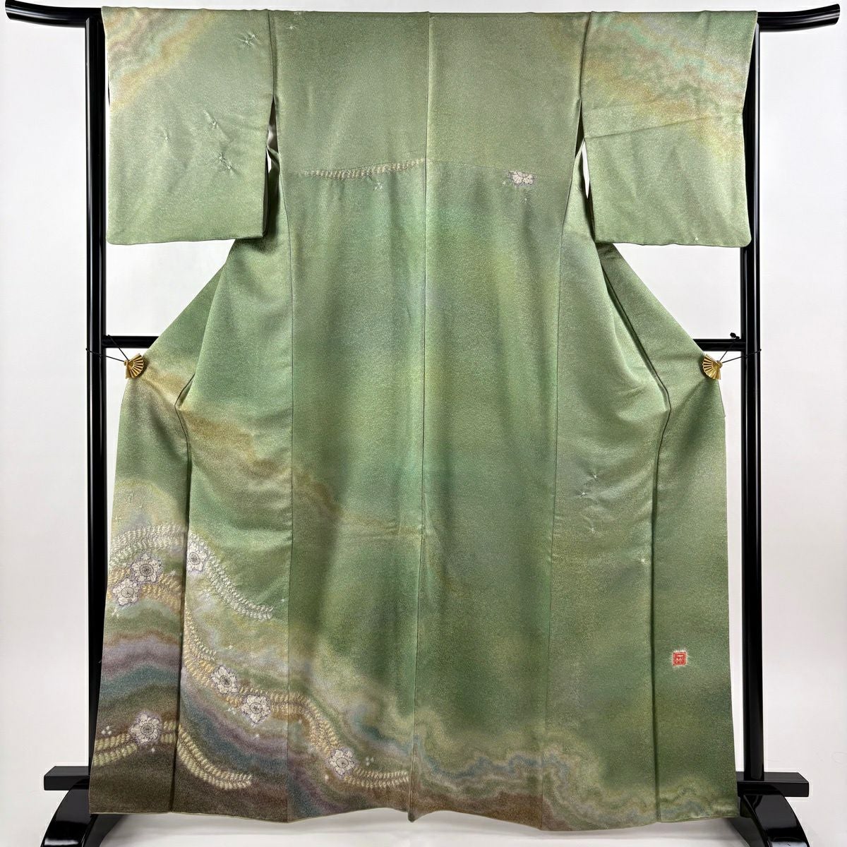 【在庫一掃】 訪問着 身丈156.5cm 裄丈64.5cm M 袷 徳永憲峯 落款あり 辻が花 金通し ぼかし 灰緑 正絹 逸品