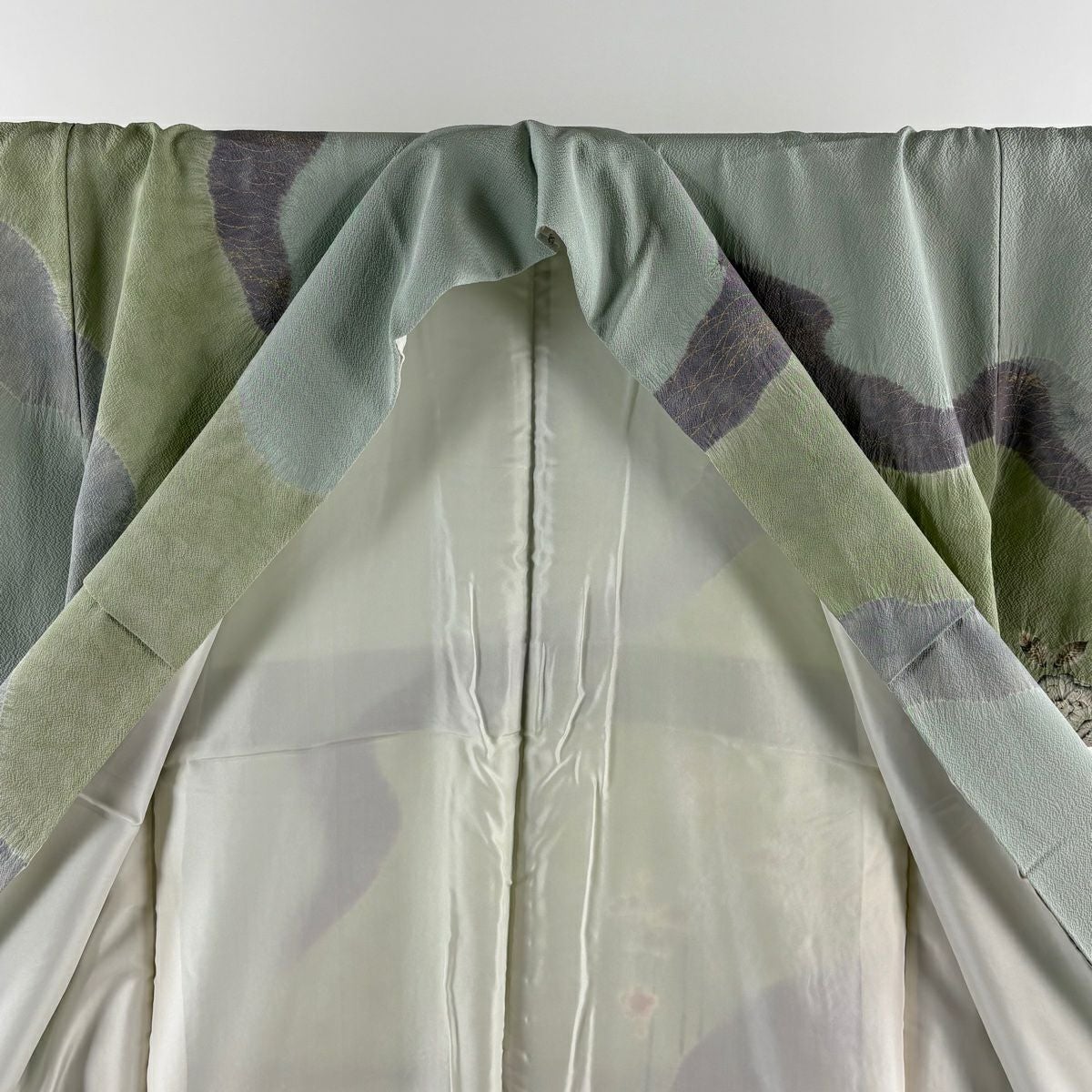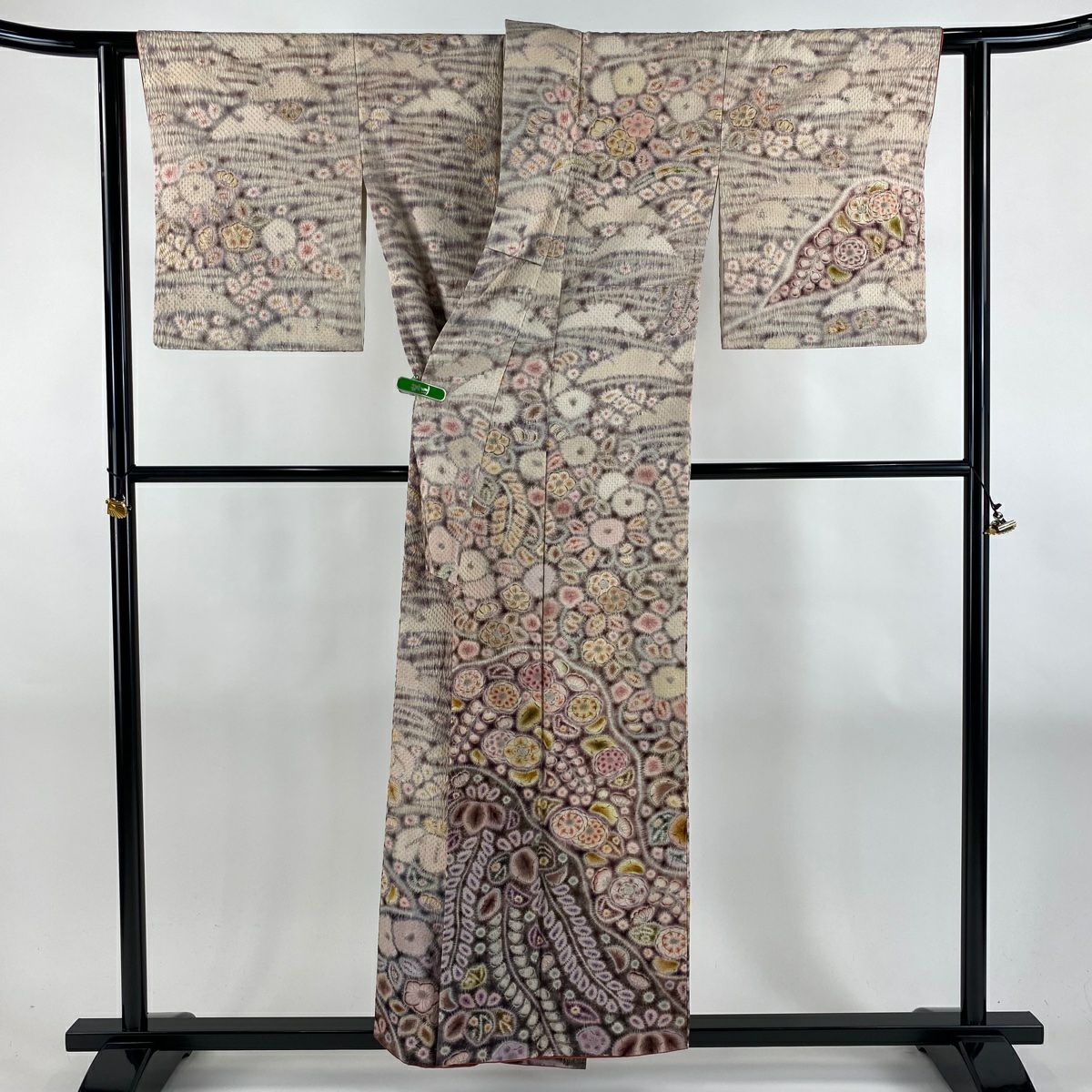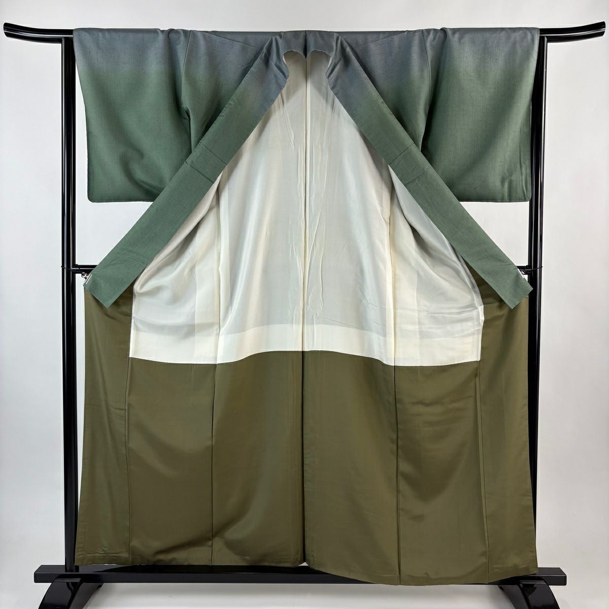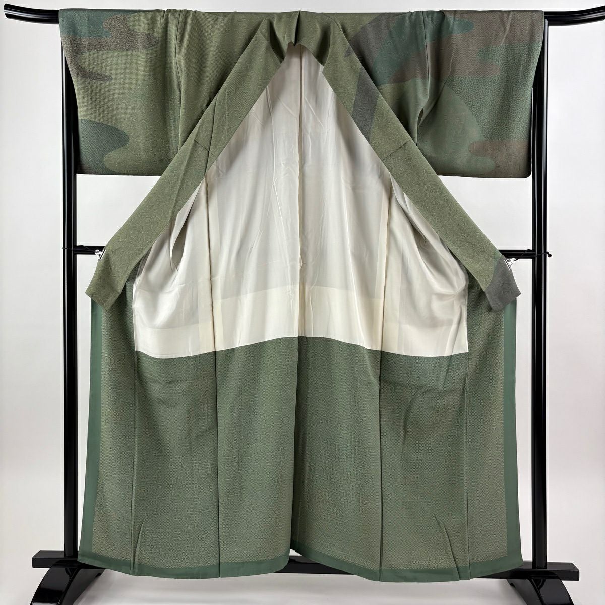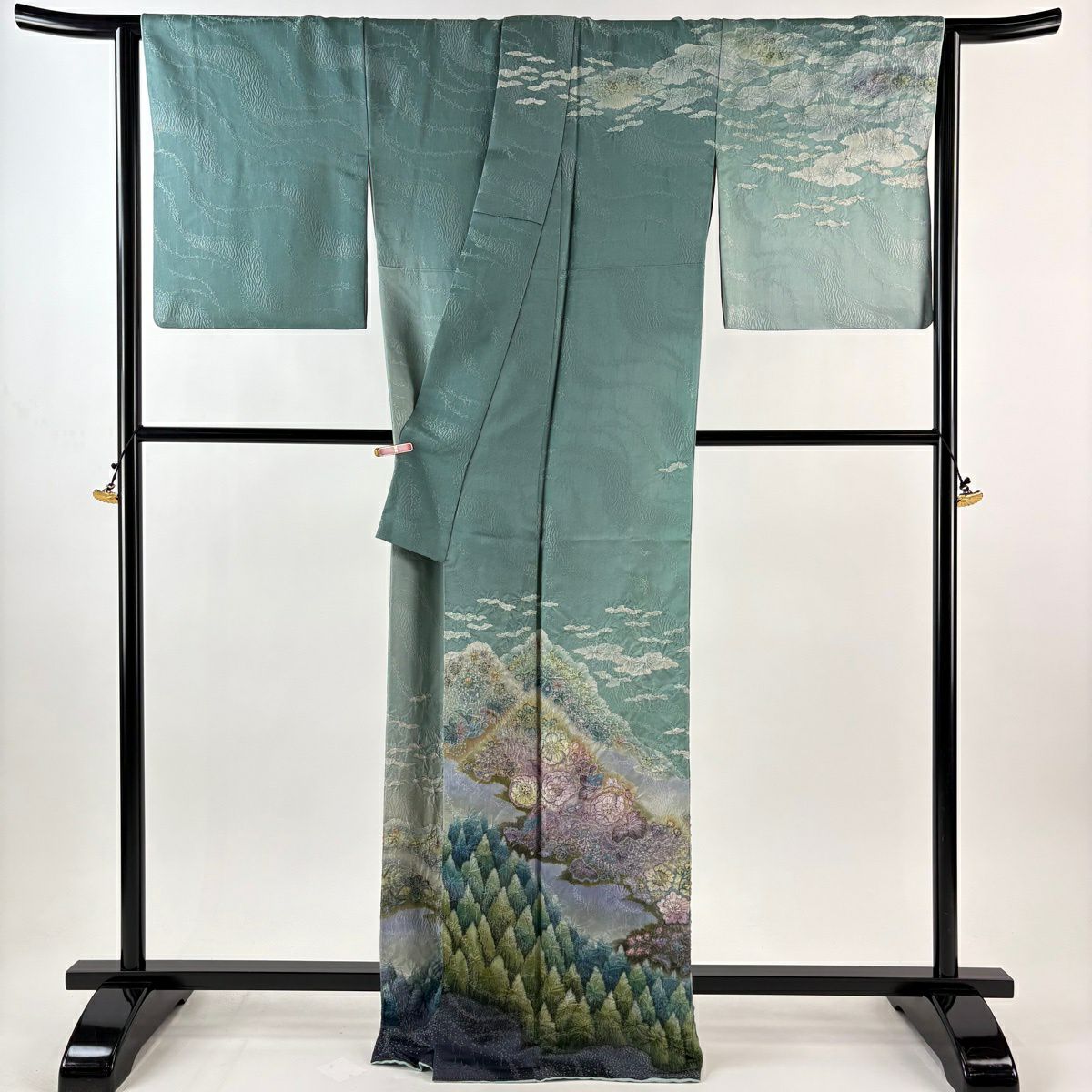 【在庫一掃】 訪問着 身丈156.5cm 裄丈64.5cm M 袷 徳永憲峯 落款あり 辻が花 金通し ぼかし 灰緑 正絹 逸品