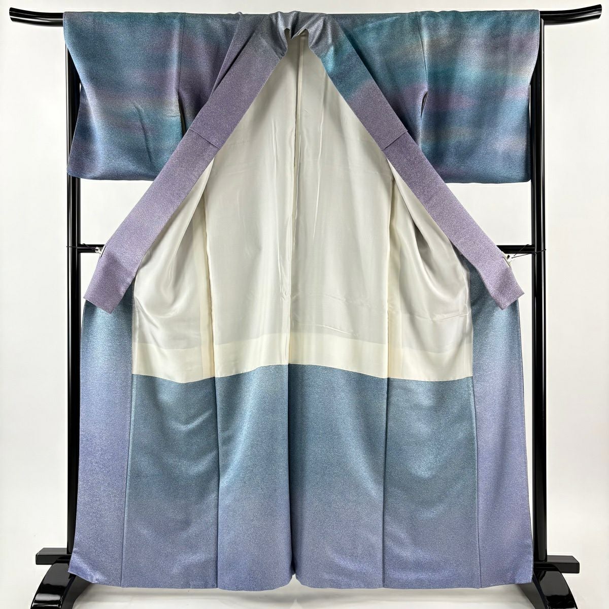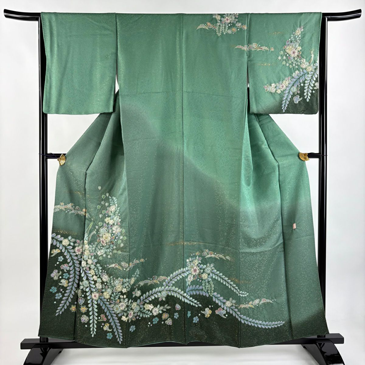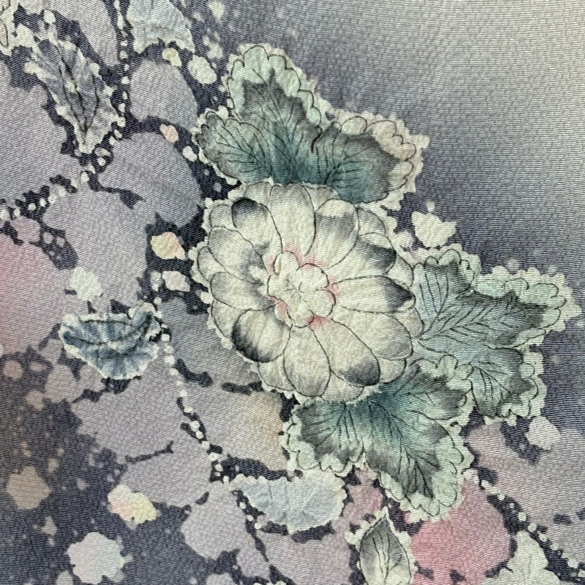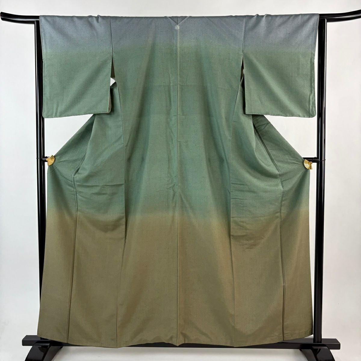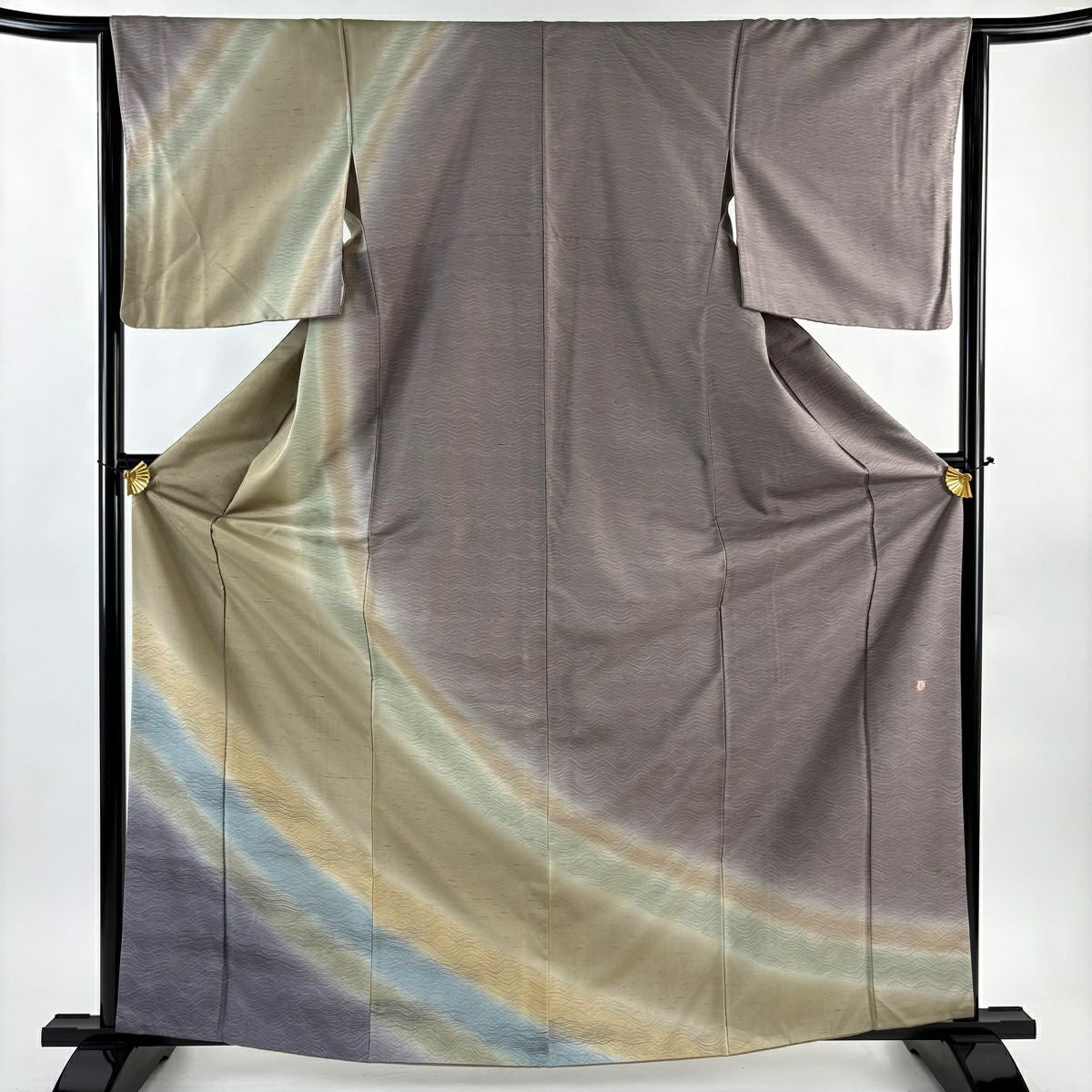 【在庫一掃】 訪問着 身丈156.5cm 裄丈64.5cm M 袷 徳永憲峯 落款あり 辻が花 金通し ぼかし 灰緑 正絹 逸品