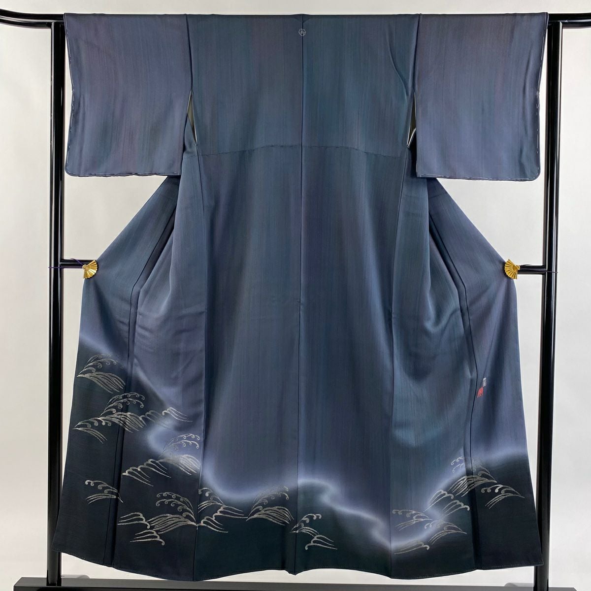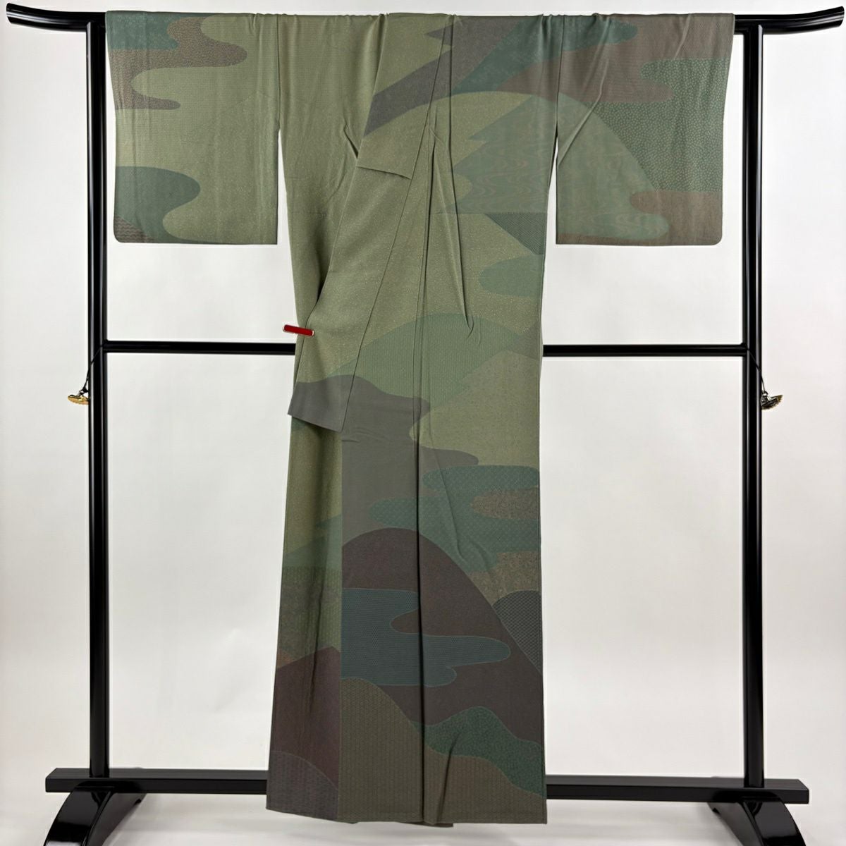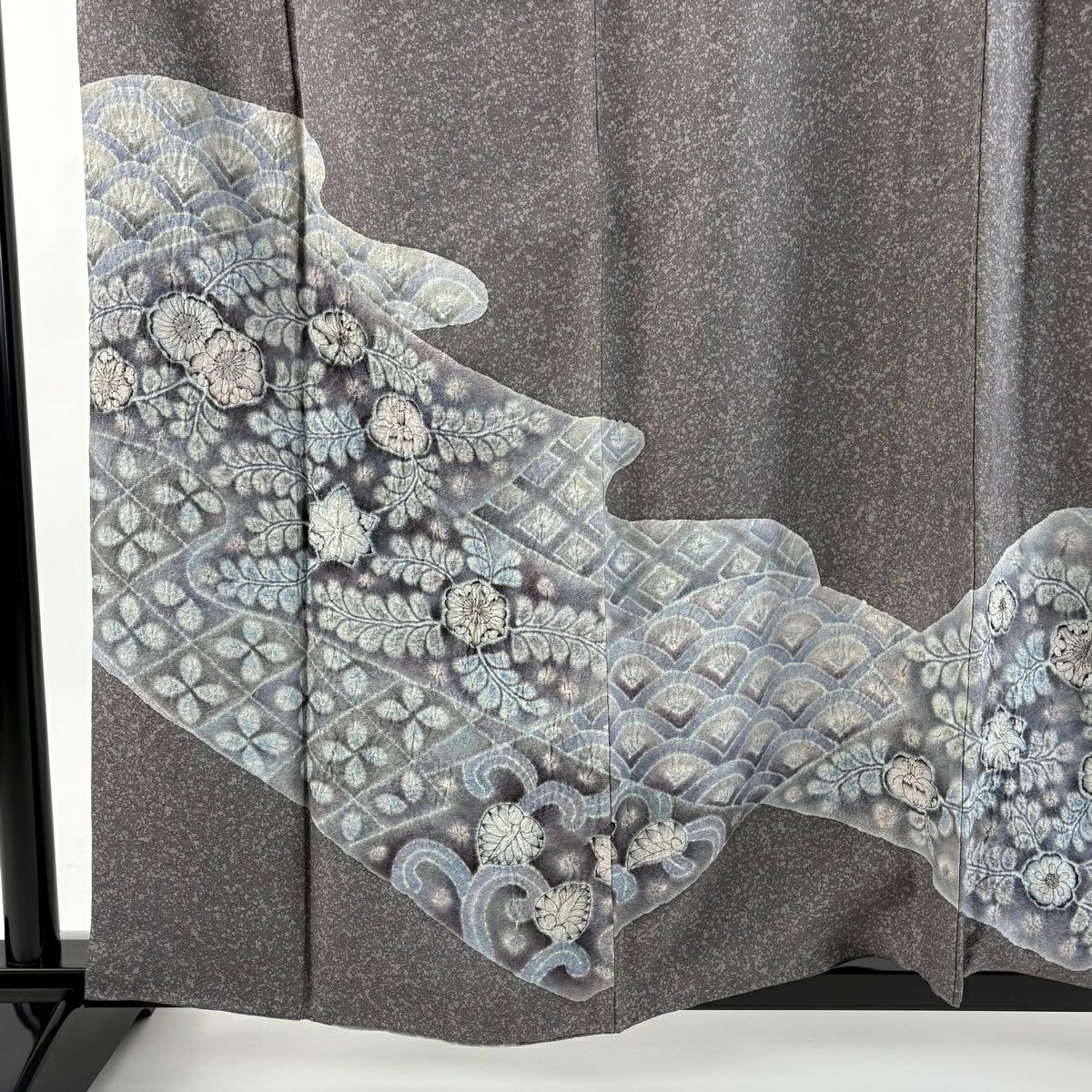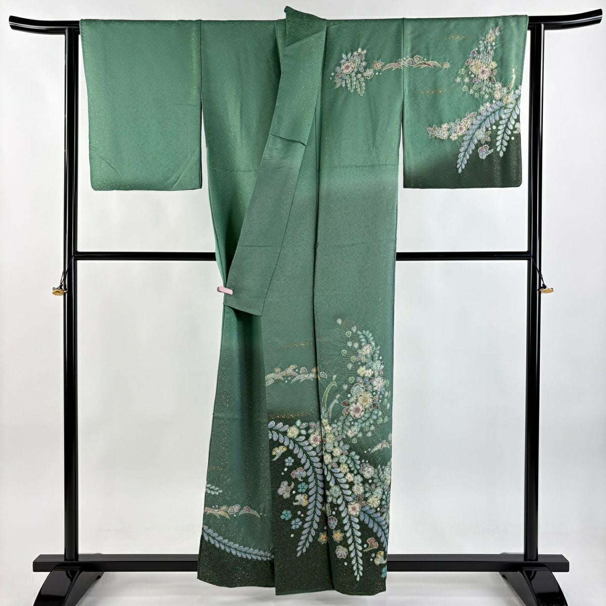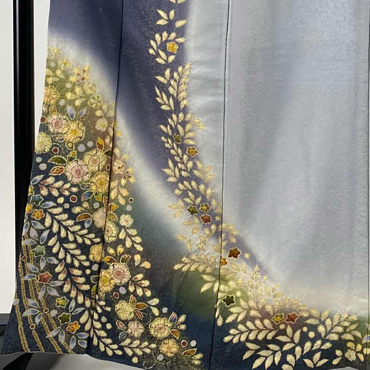 【在庫一掃】 訪問着 身丈156.5cm 裄丈64.5cm M 袷 徳永憲峯 落款あり 辻が花 金通し ぼかし 灰緑 正絹 逸品
