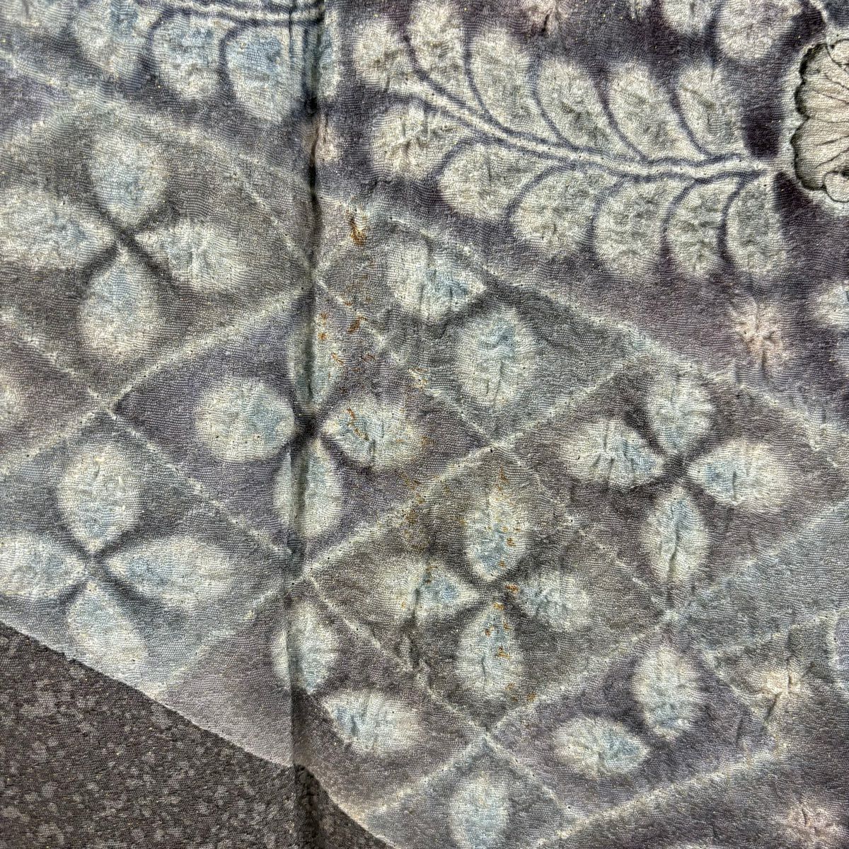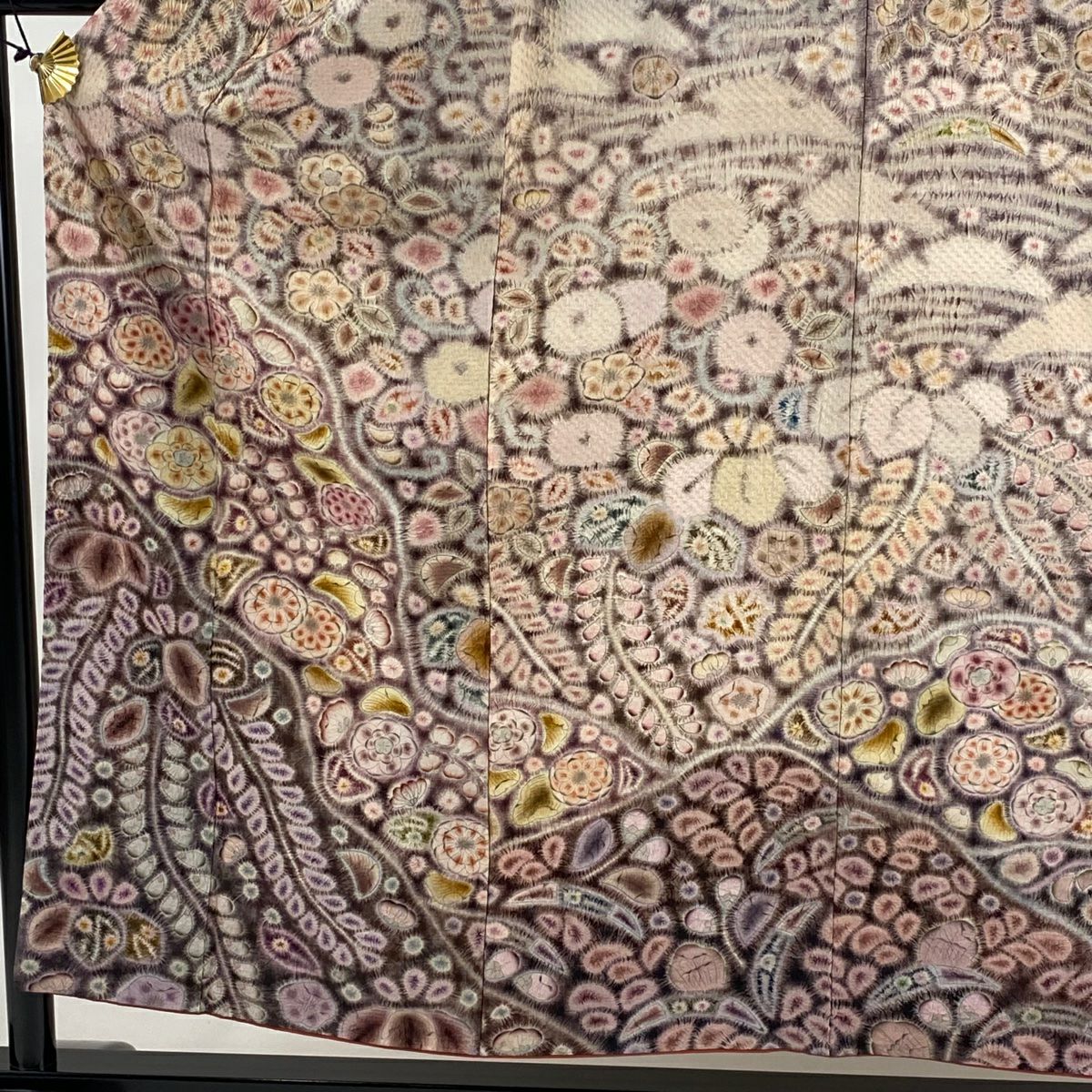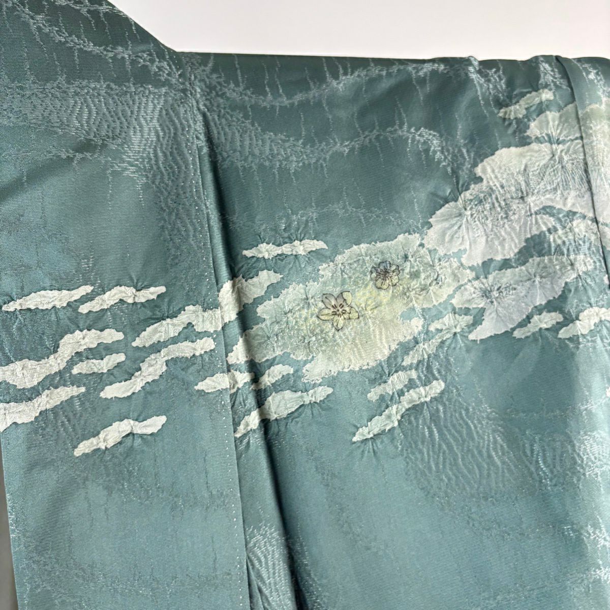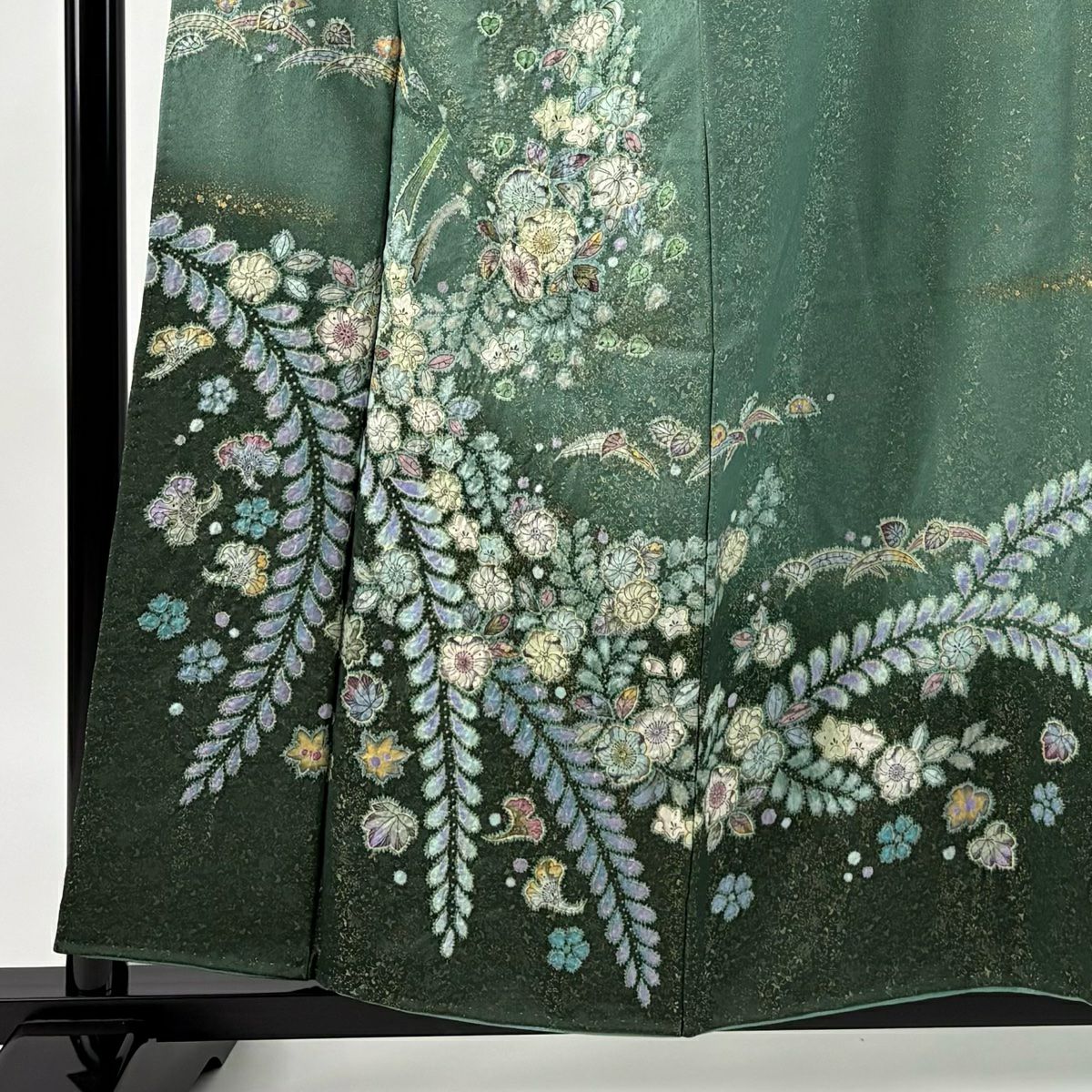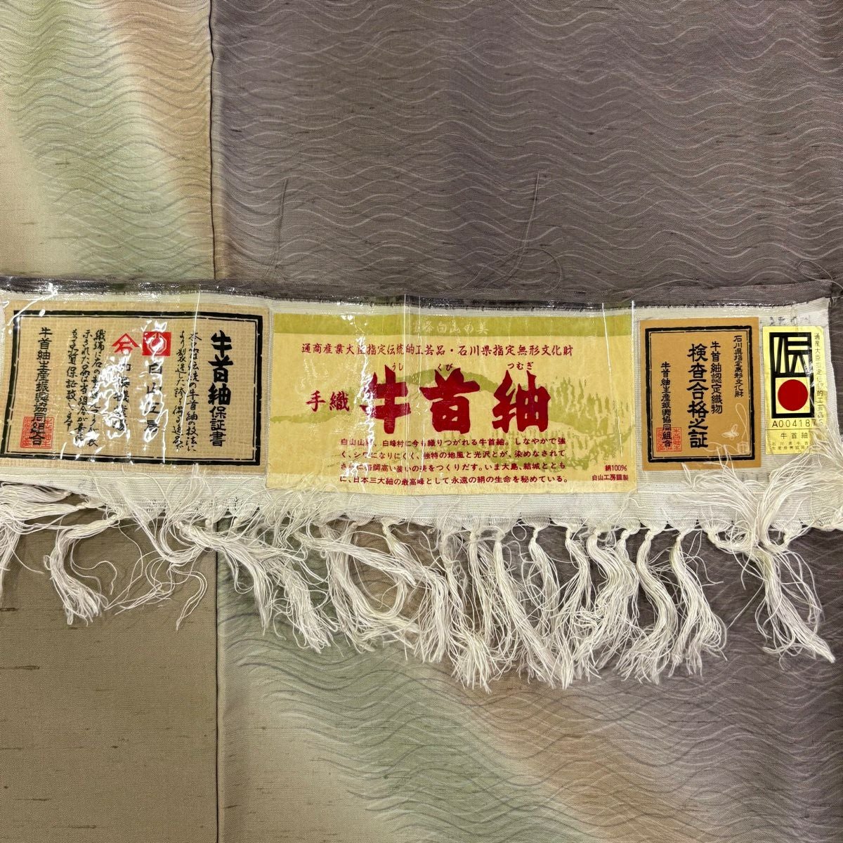 【在庫一掃】 訪問着 身丈156.5cm 裄丈64.5cm M 袷 徳永憲峯 落款あり 辻が花 金通し ぼかし 灰緑 正絹 逸品