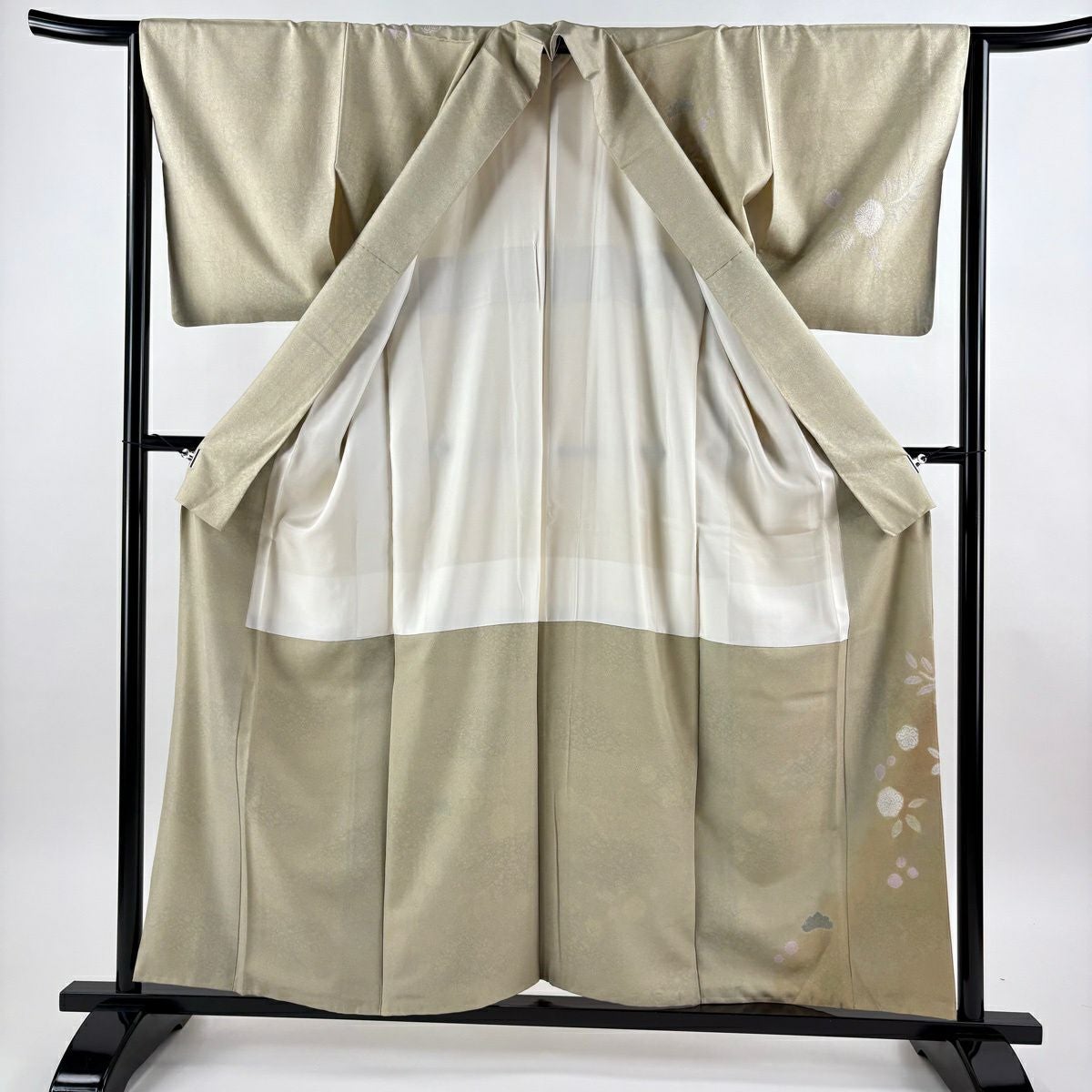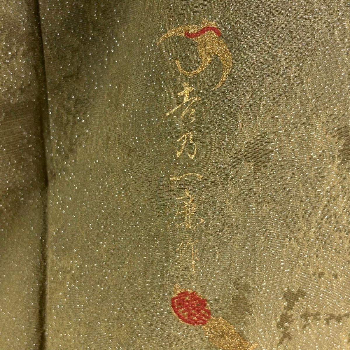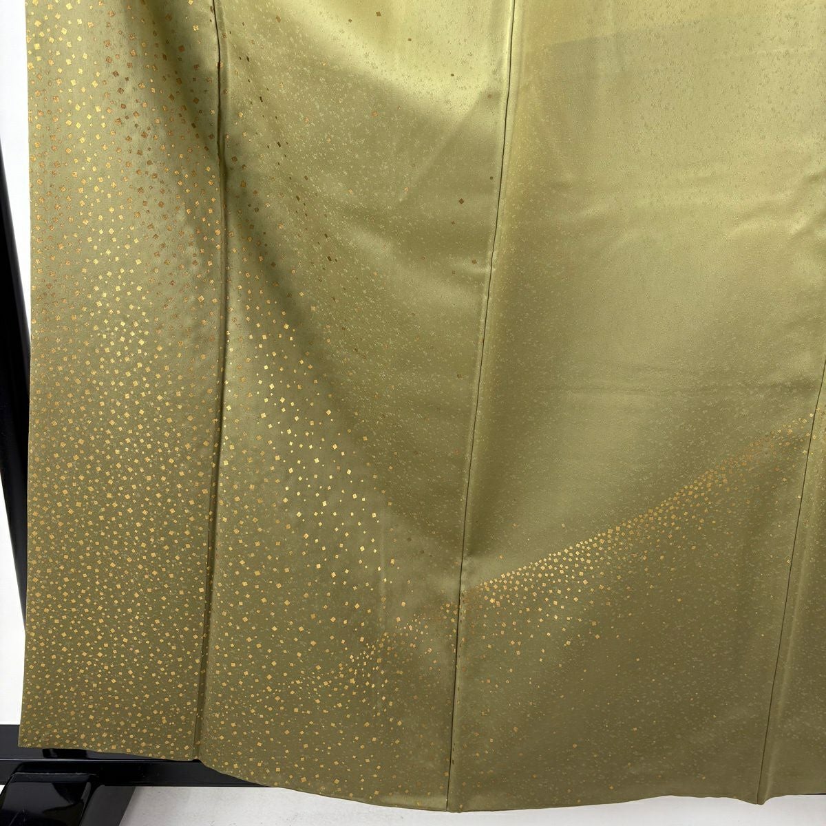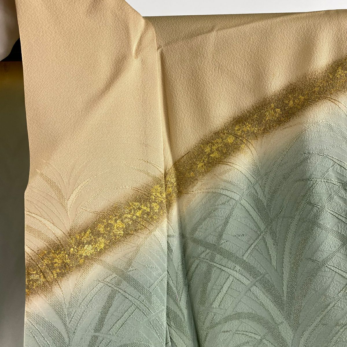 付下げ 身丈160cm 裄丈63cm S 袷 人間国宝 福田喜重 落款あり 箔散らし 金彩 ぼかし 抹茶色 正絹 逸品 一つ紋