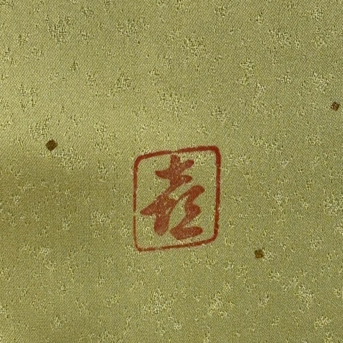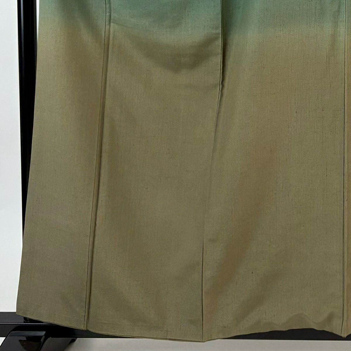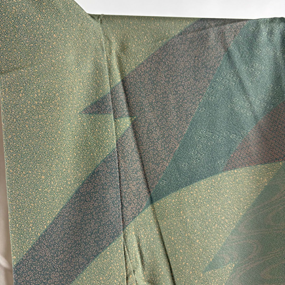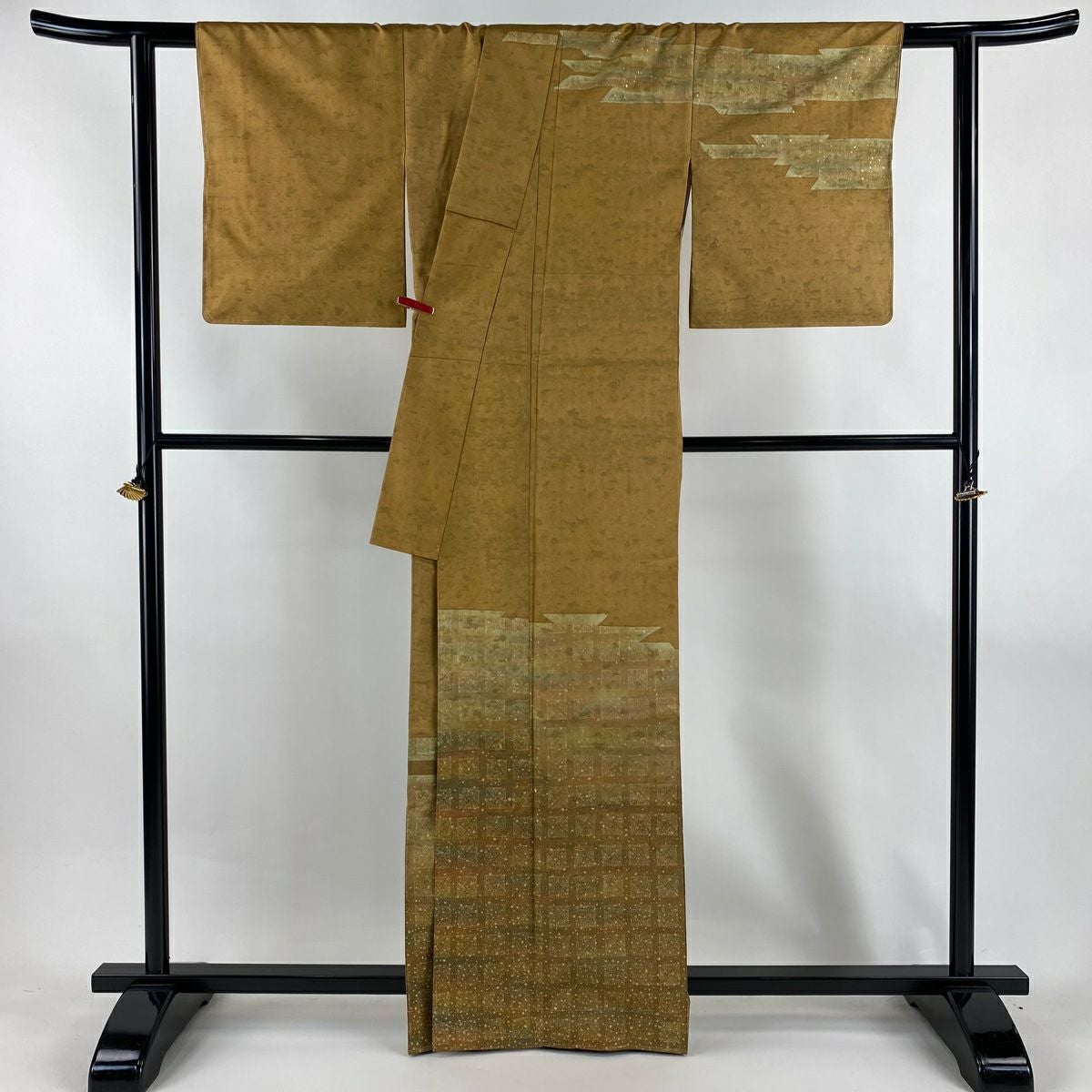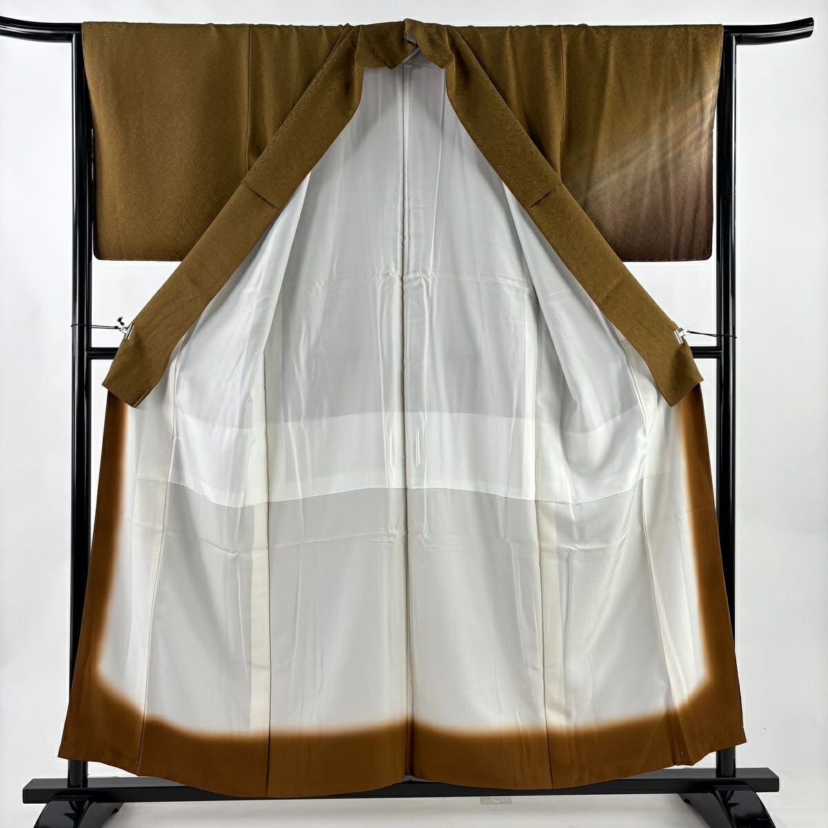 付下げ 身丈160cm 裄丈63cm S 袷 人間国宝 福田喜重 落款あり 箔散らし 金彩 ぼかし 抹茶色 正絹 逸品 一つ紋