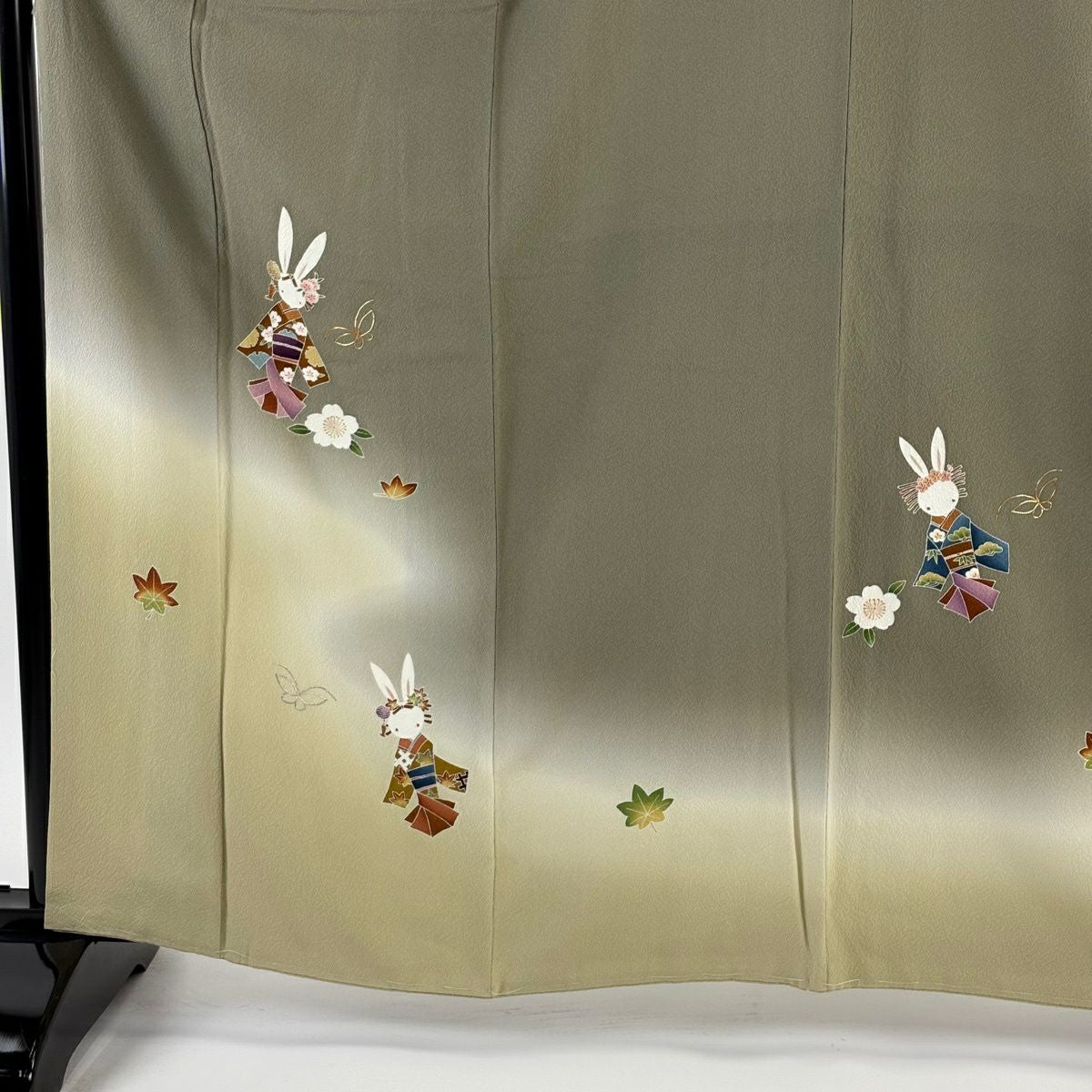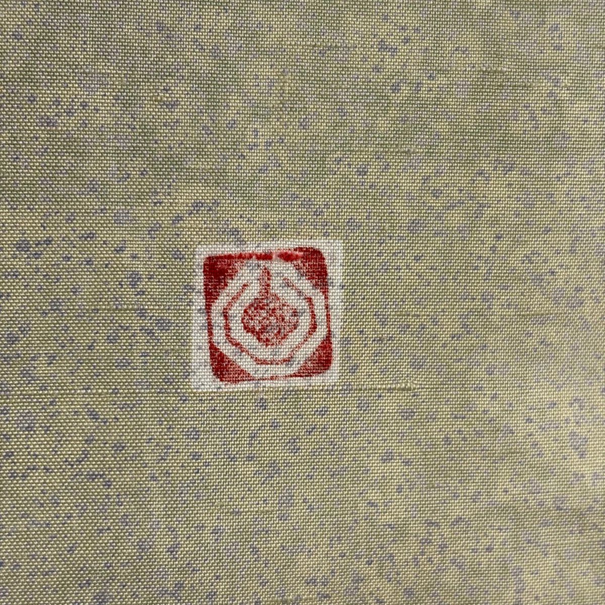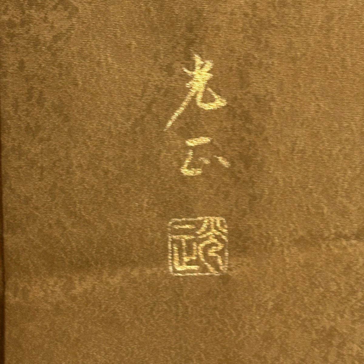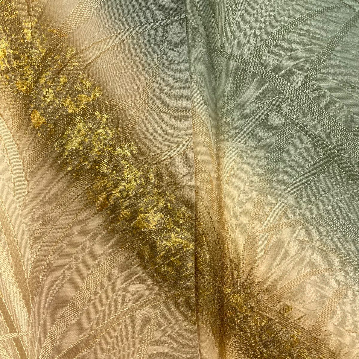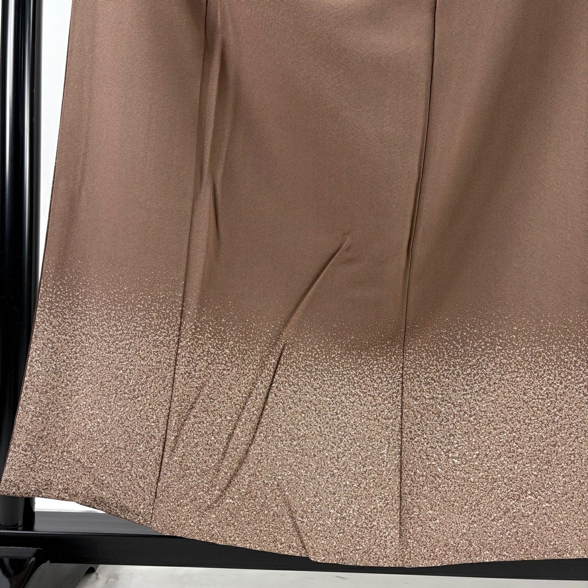 付下げ 身丈160cm 裄丈63cm S 袷 人間国宝 福田喜重 落款あり 箔散らし 金彩 ぼかし 抹茶色 正絹 逸品 一つ紋
