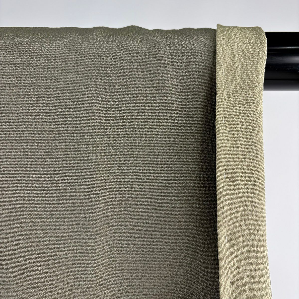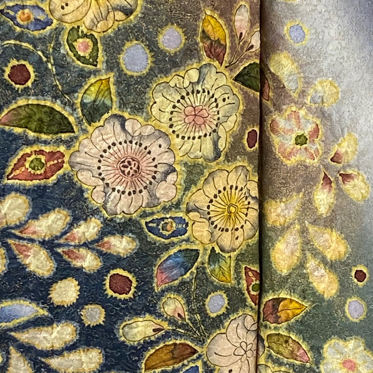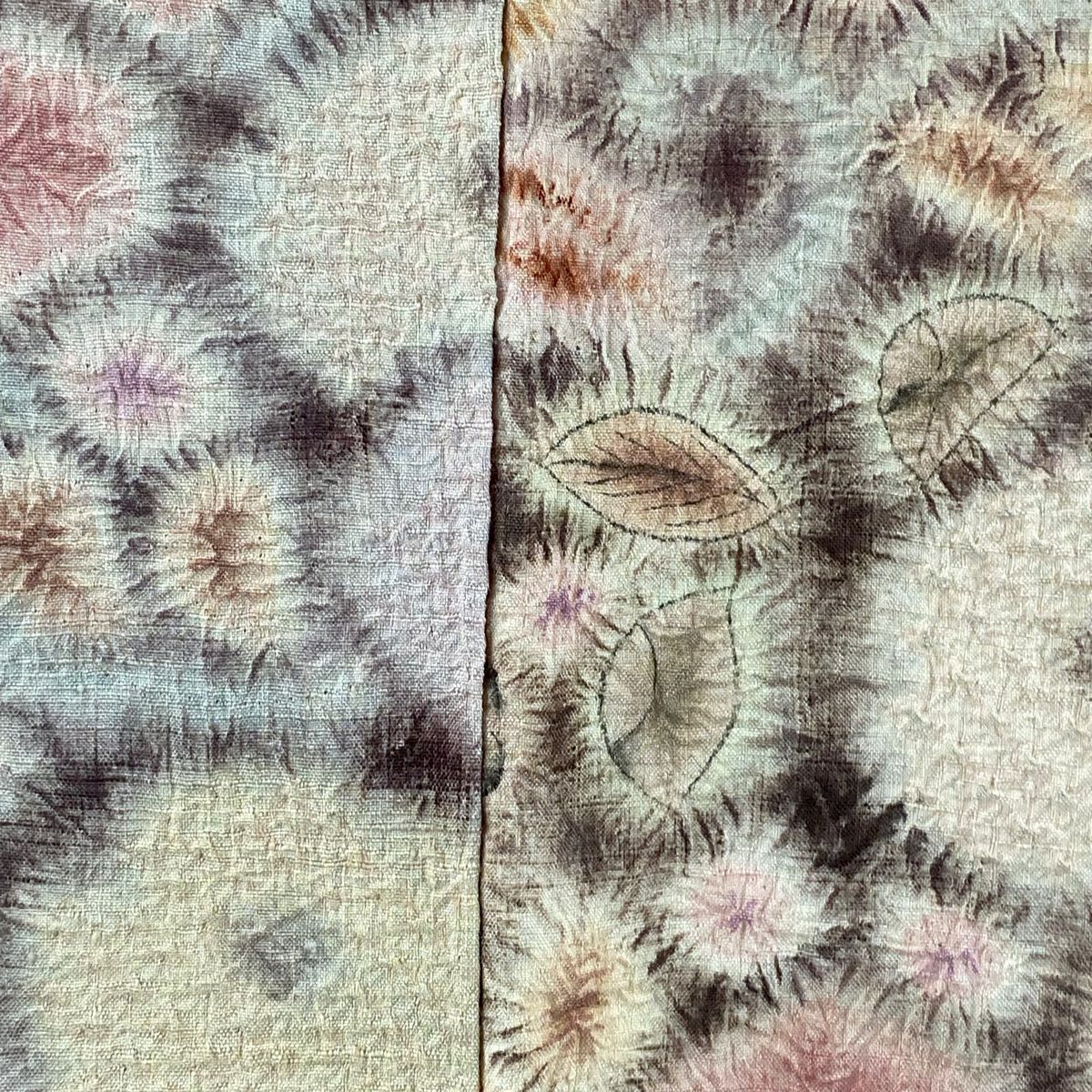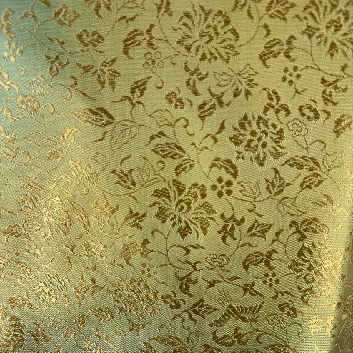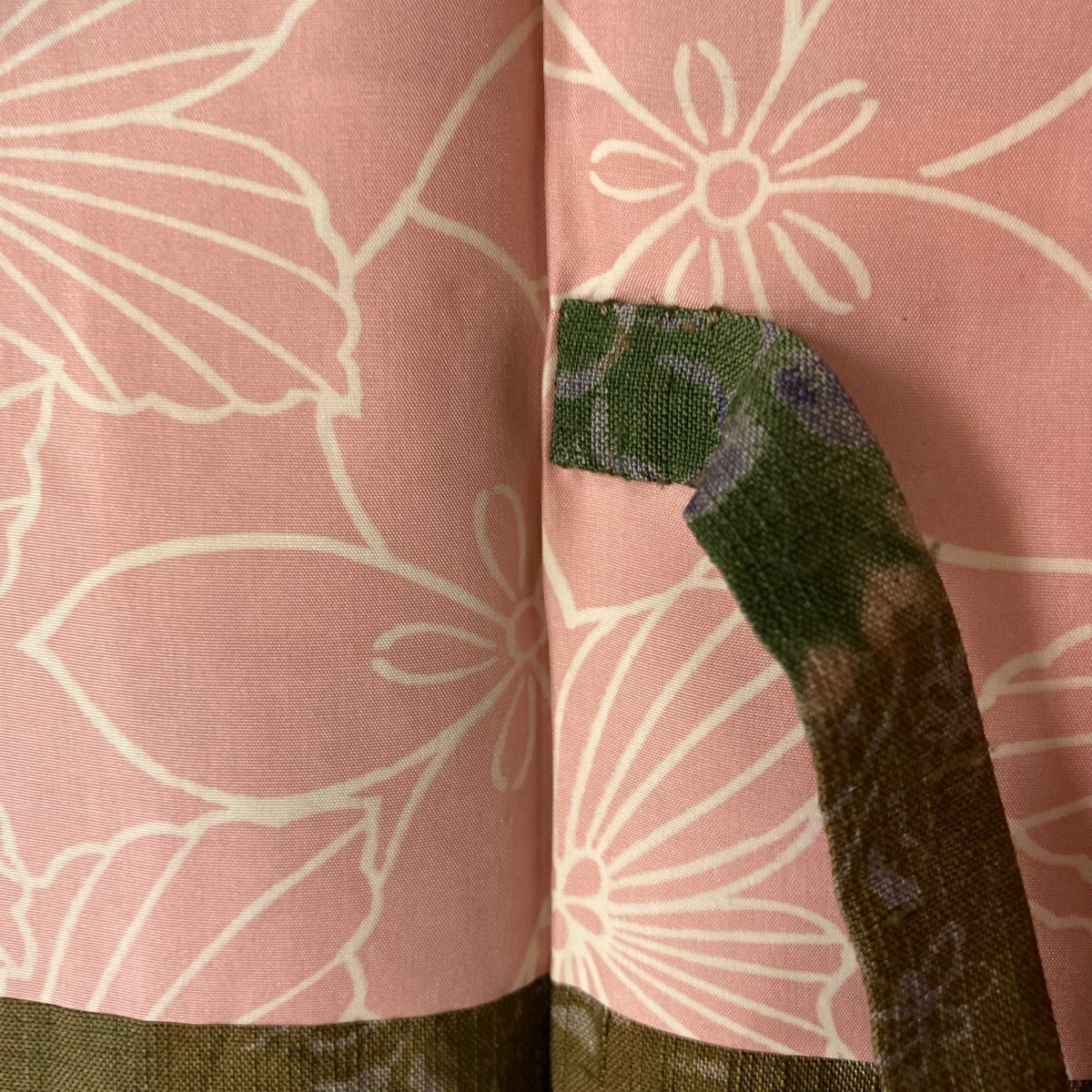 【在庫一掃】 道中着 身丈111cm 裄丈66cm M 和装コート 着物衿 紬地 秋草 流水 絞り 金彩 茶緑色 正絹 逸品