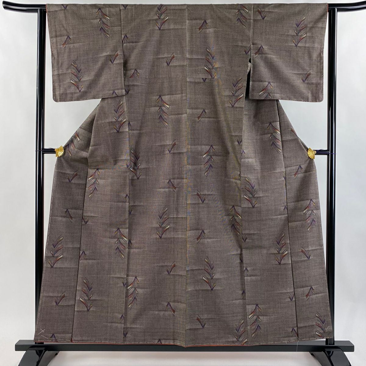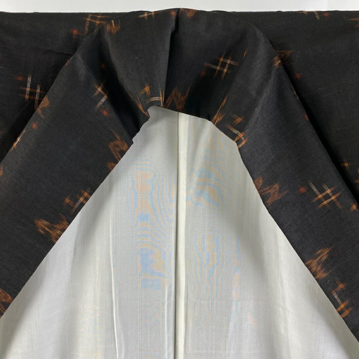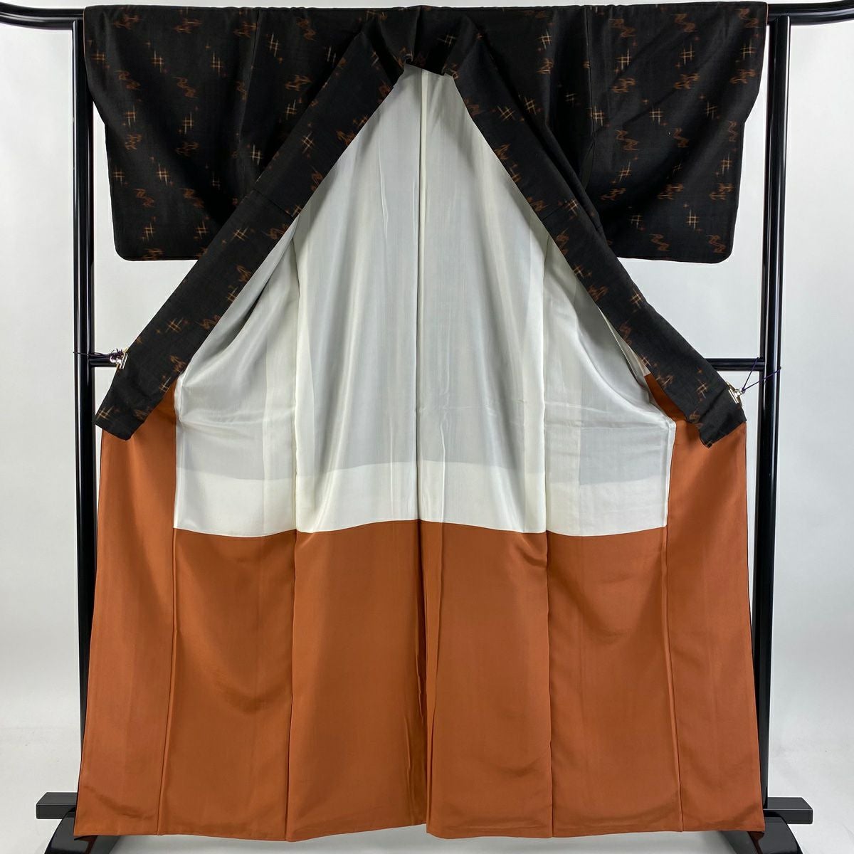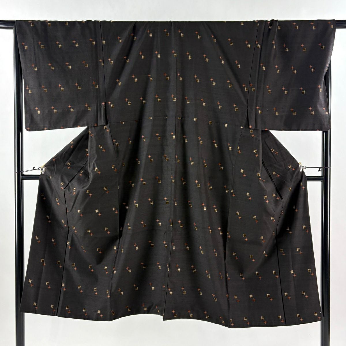 【在庫一掃】 紬 身丈163.5cm 裄丈63cm S 袷 本場久米島紬 草木染 証紙あり 流水 井桁絣 焦茶色 正絹 逸品