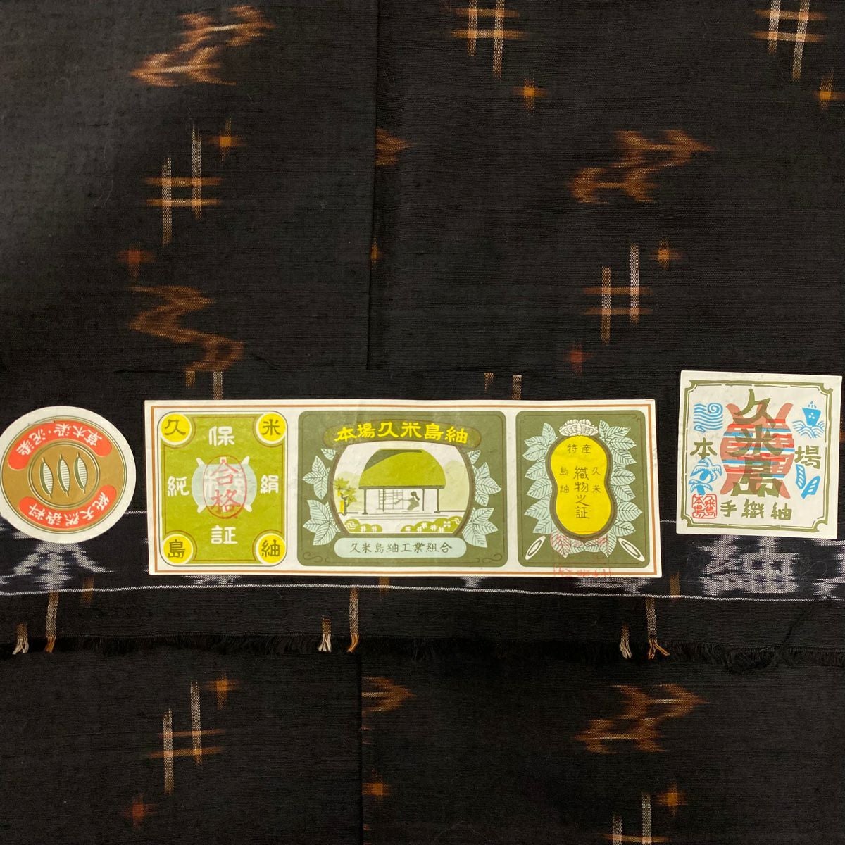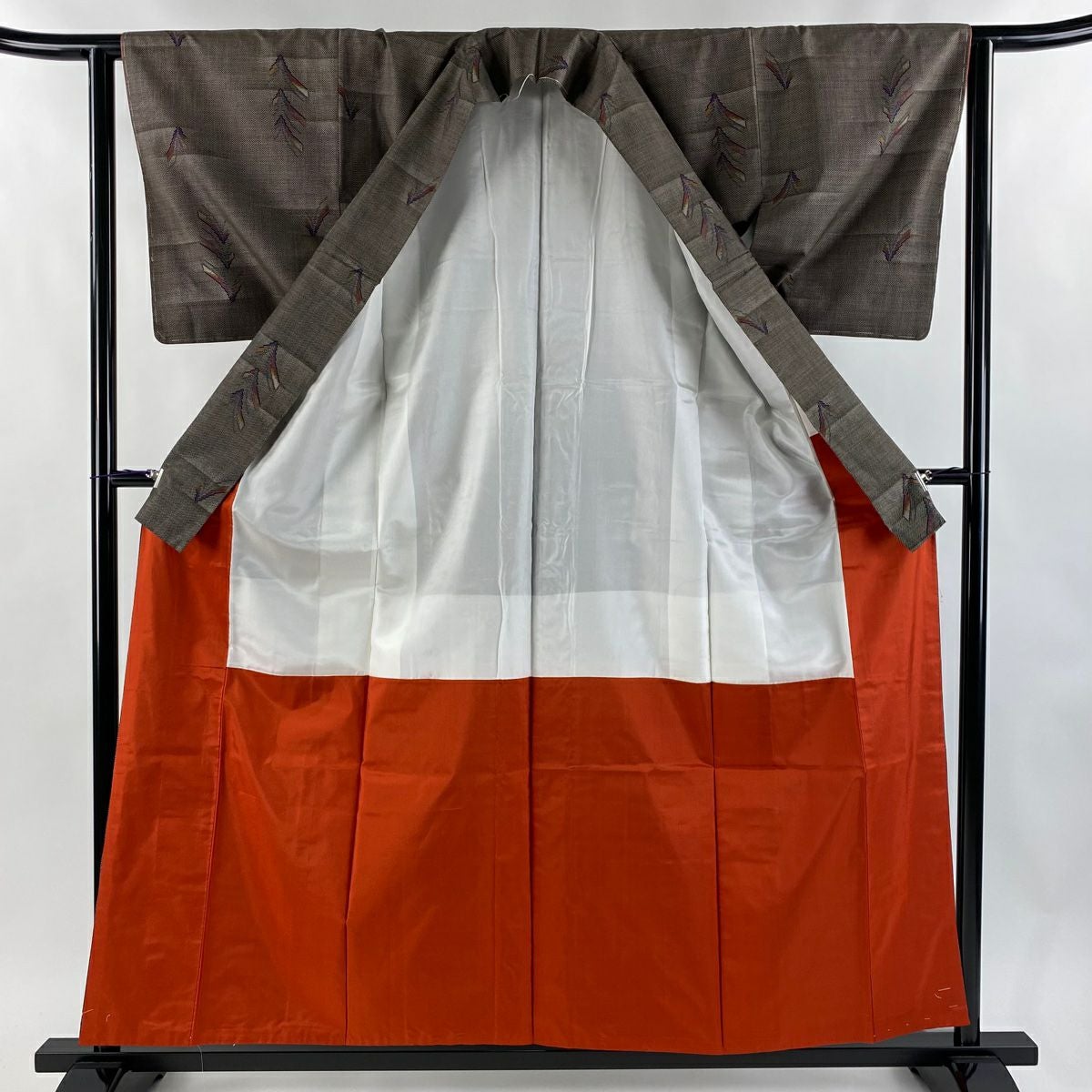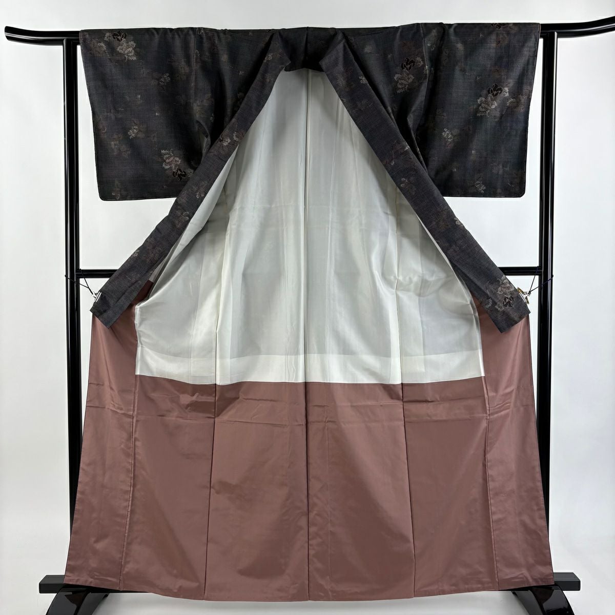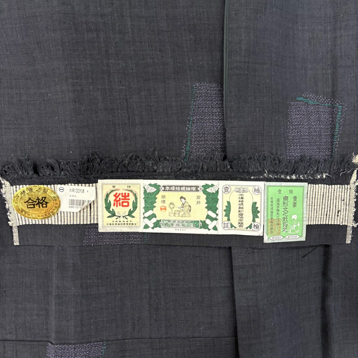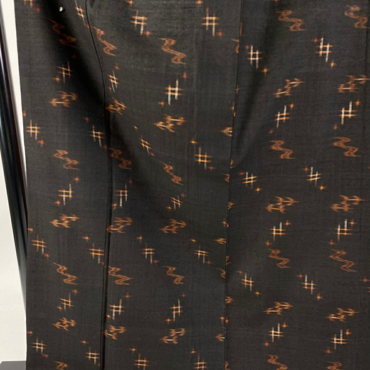 【在庫一掃】 紬 身丈163.5cm 裄丈63cm S 袷 本場久米島紬 草木染 証紙あり 流水 井桁絣 焦茶色 正絹 逸品