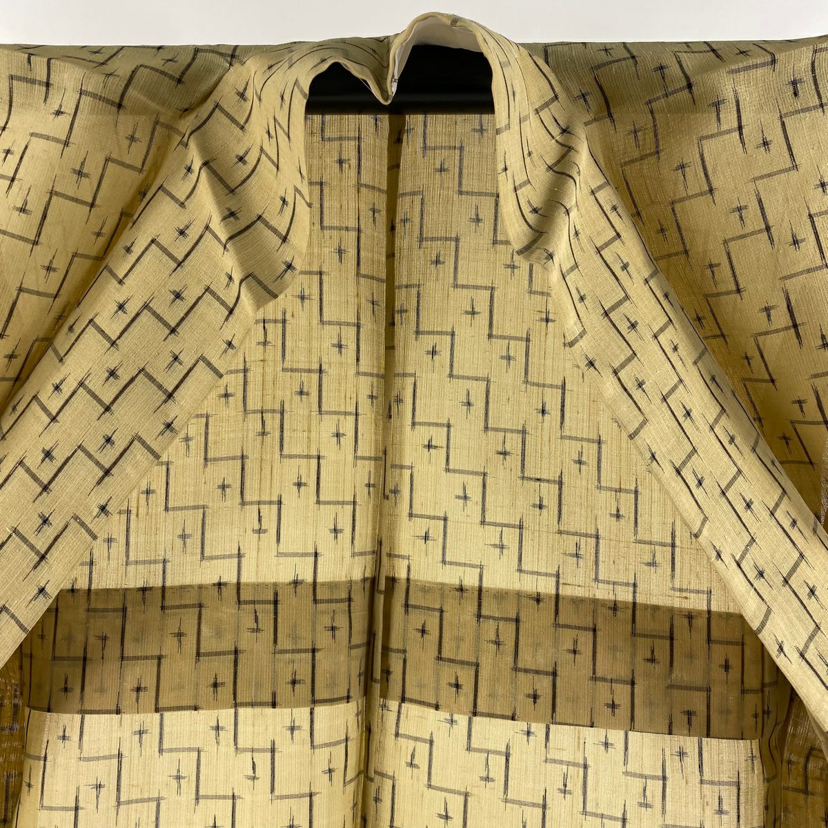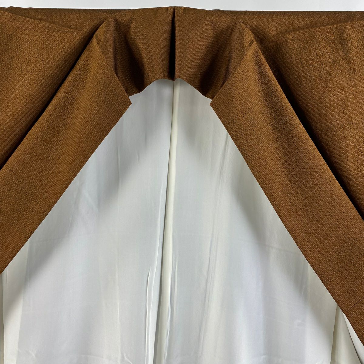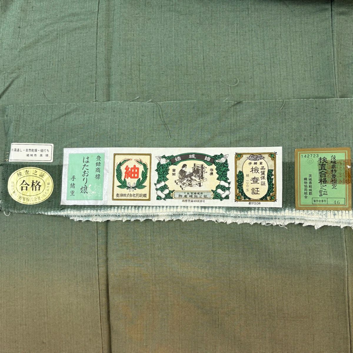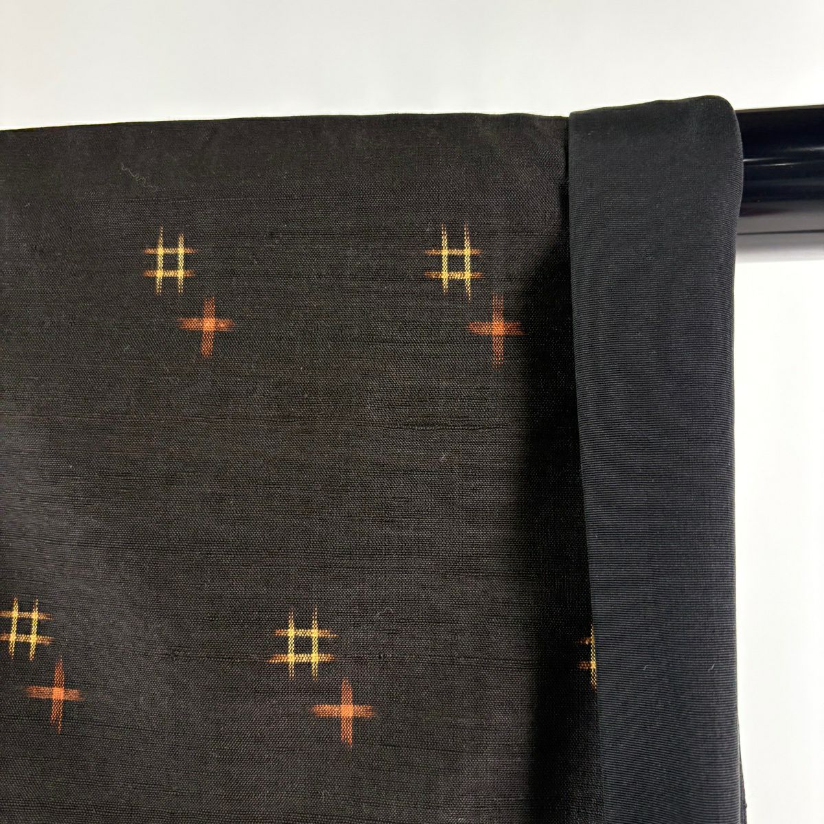 【在庫一掃】 紬 身丈163.5cm 裄丈63cm S 袷 本場久米島紬 草木染 証紙あり 流水 井桁絣 焦茶色 正絹 逸品