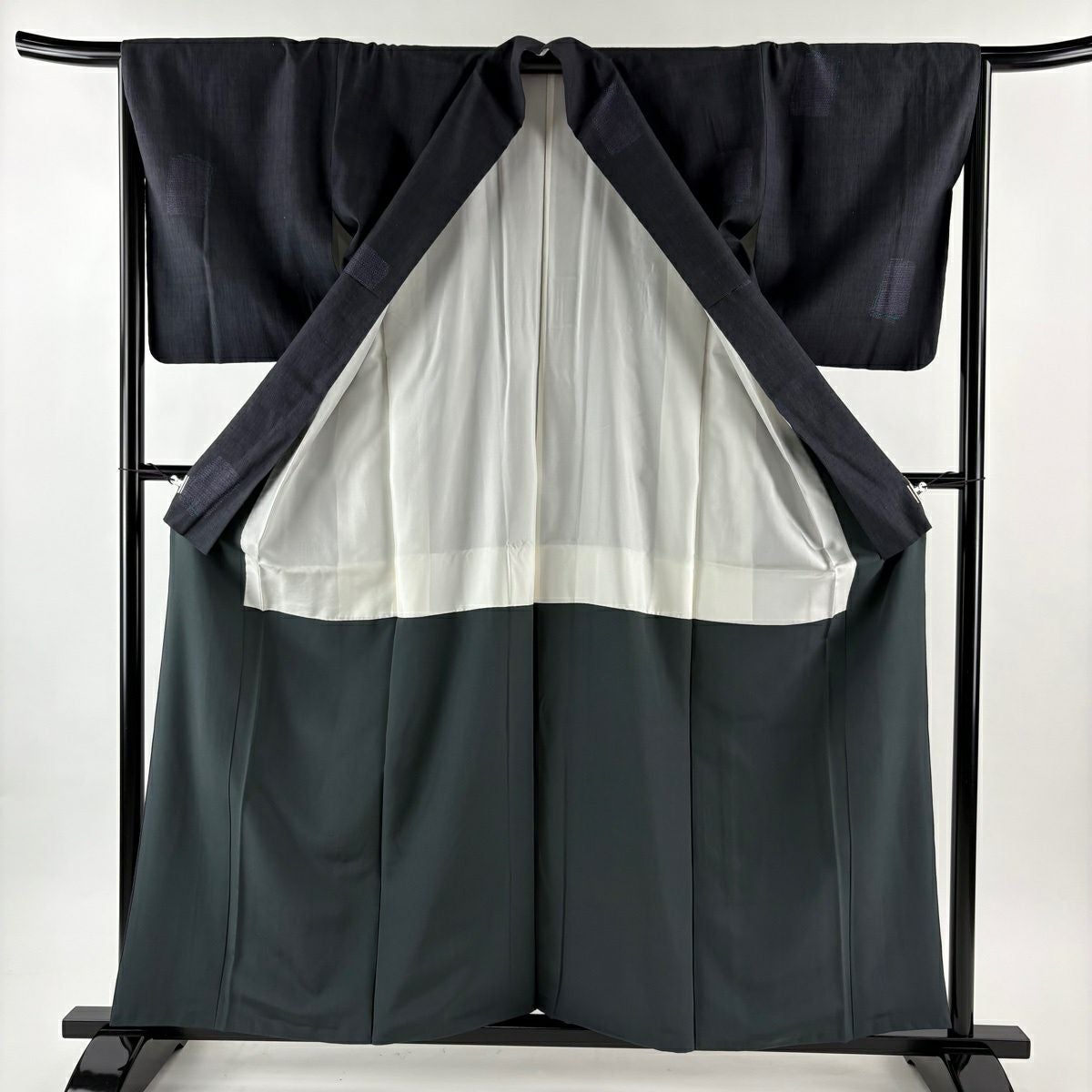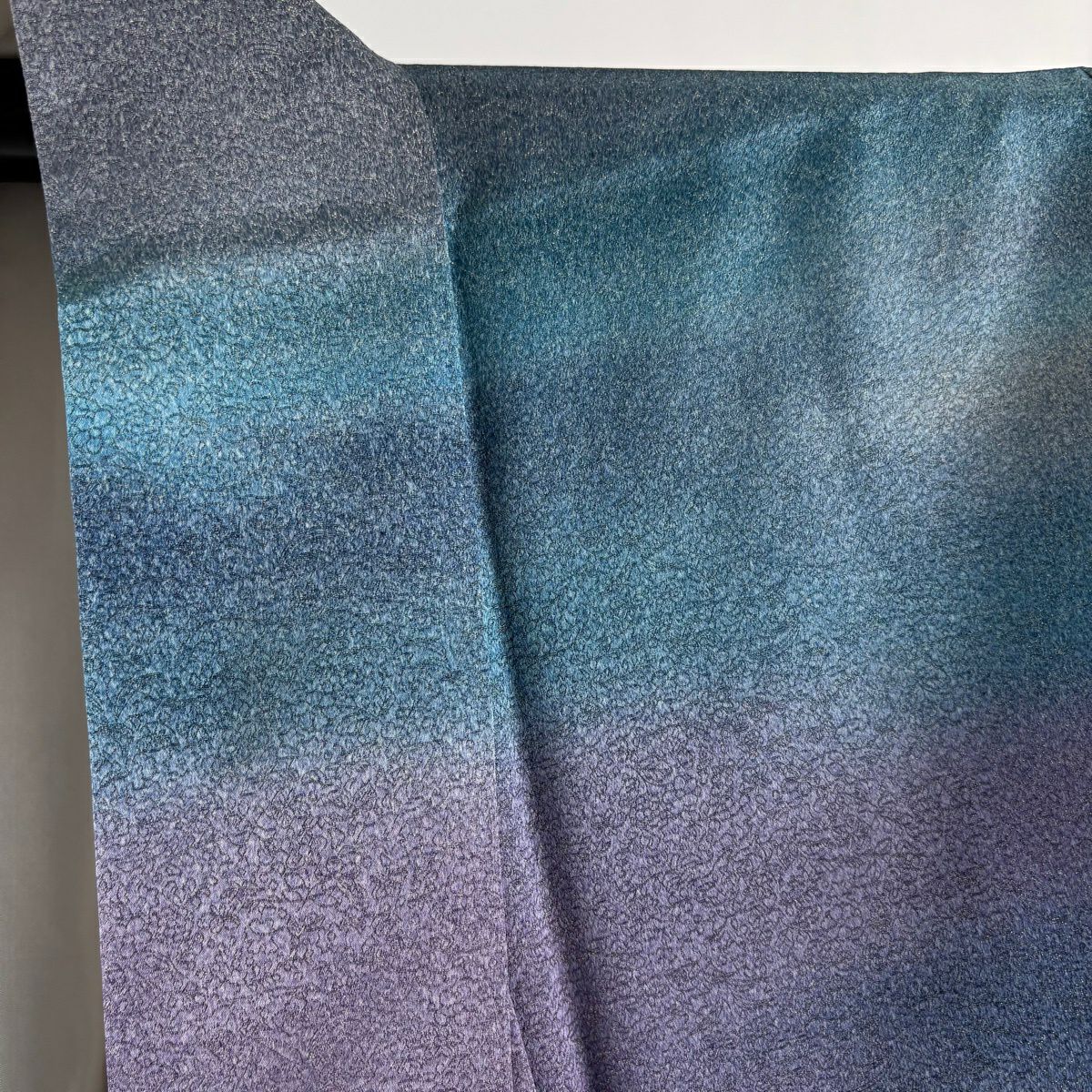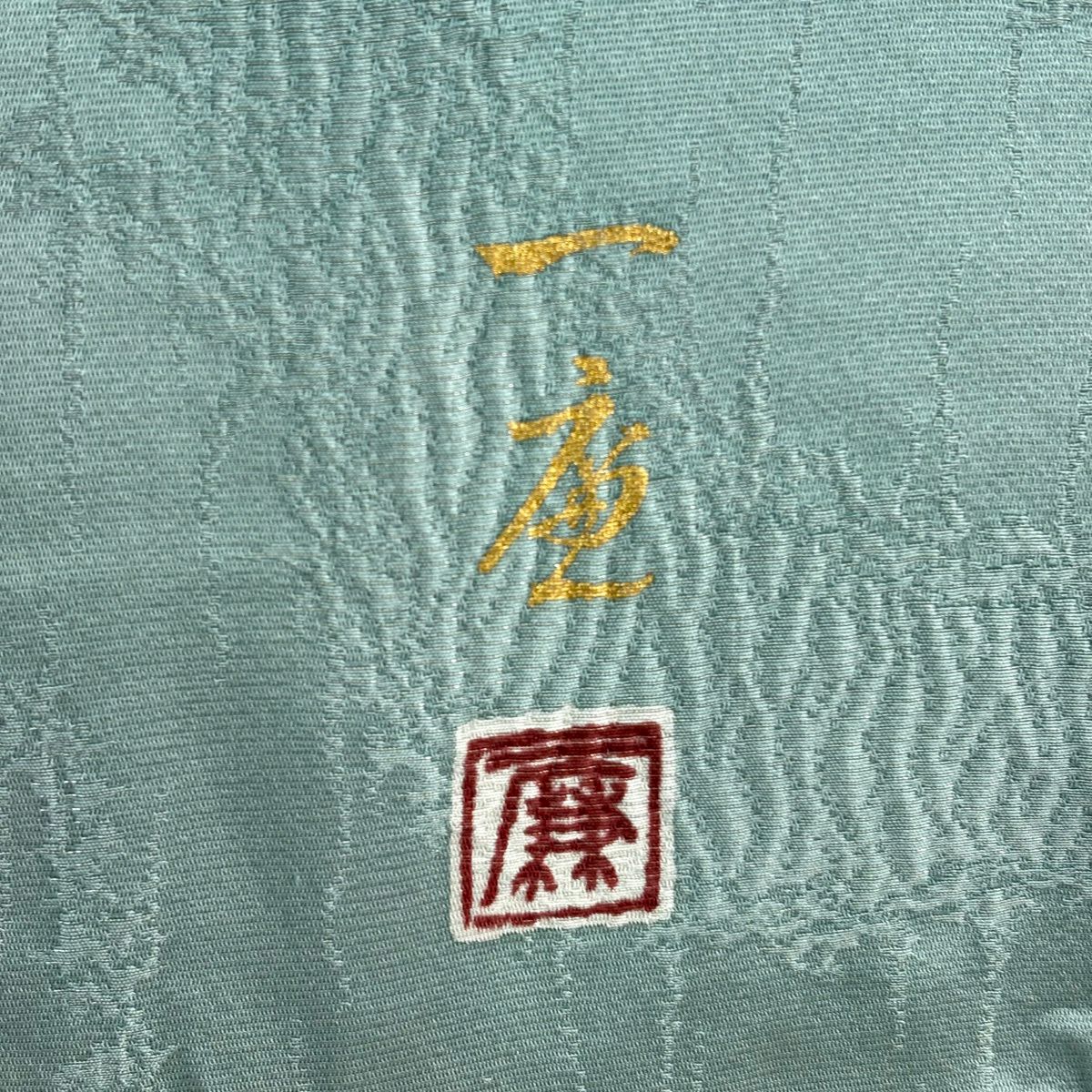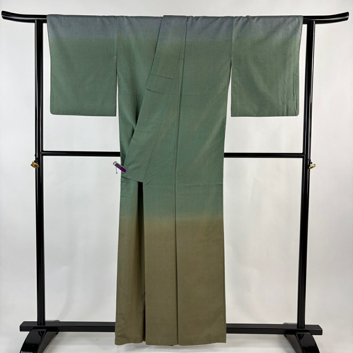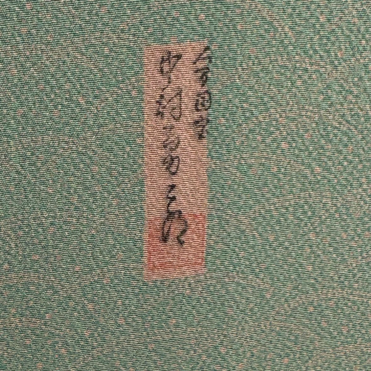 【在庫一掃】 【美品】 小紋 身丈154cm 裄丈62.5cm S 袷 前田仁仙 やまと 落款あり ぼかし柄 青緑 正絹 逸品