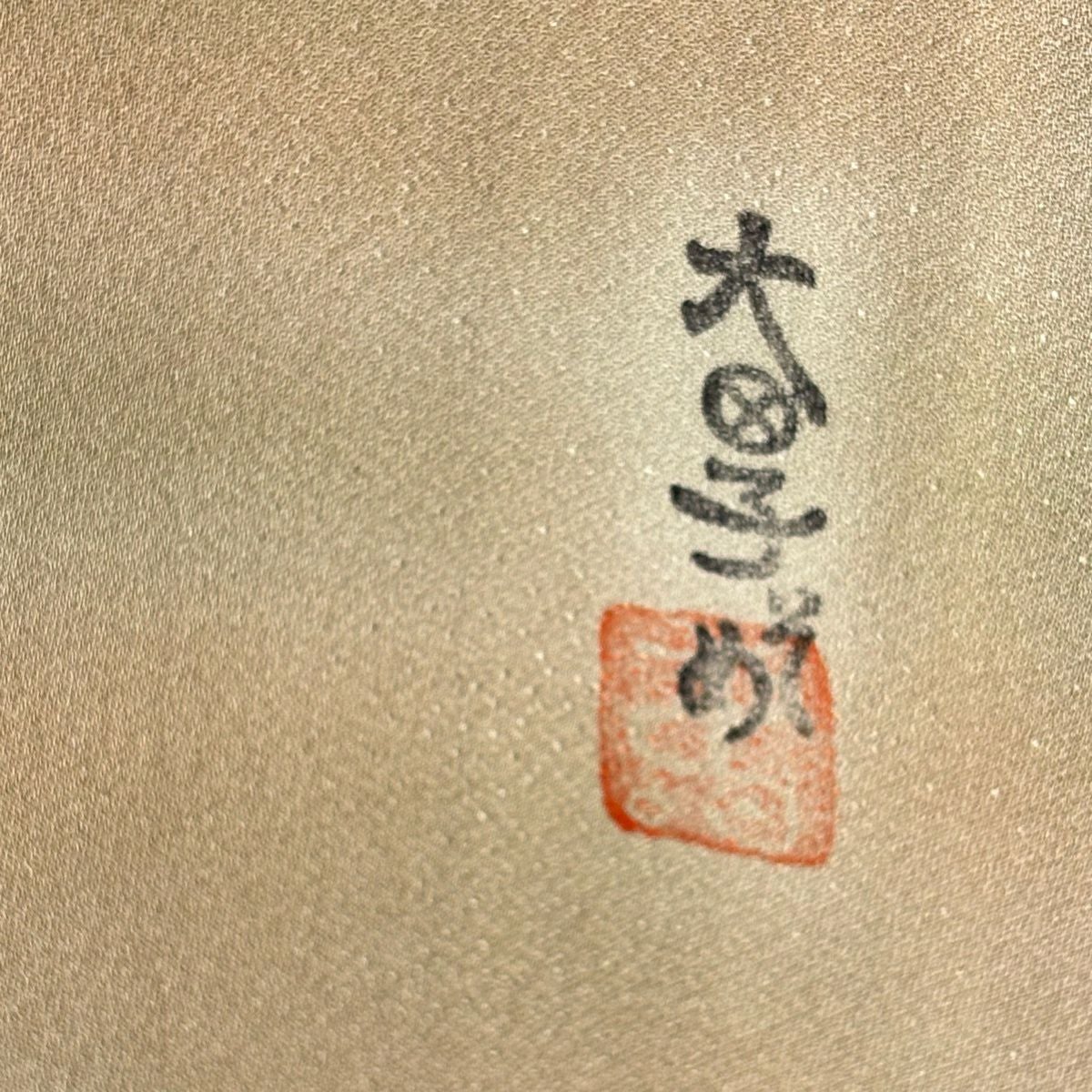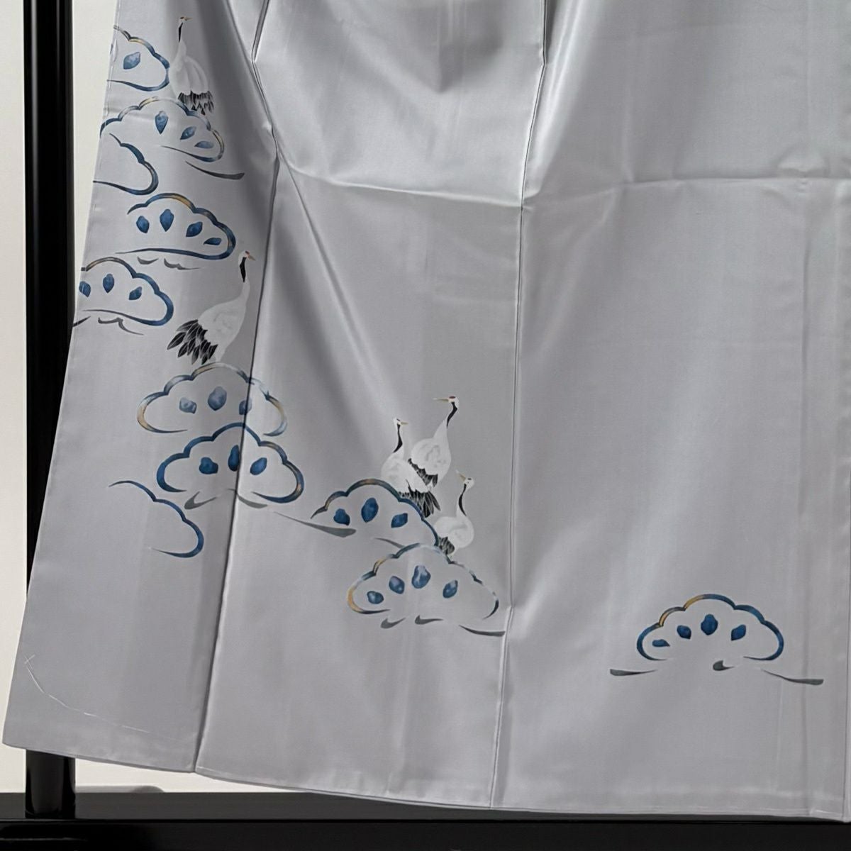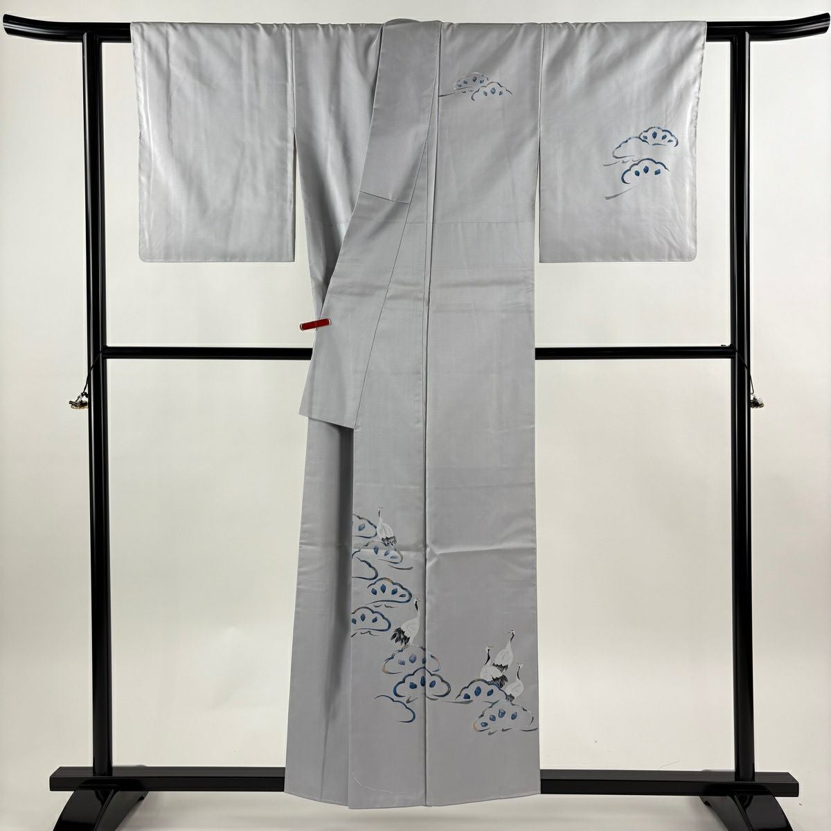 付下げ 身丈155.5cm 裄丈62.5cm S 袷 上野為二 大島紬地 鈴乃屋 落款あり 証紙あり 鶴 松 金彩 灰色 正絹 逸品