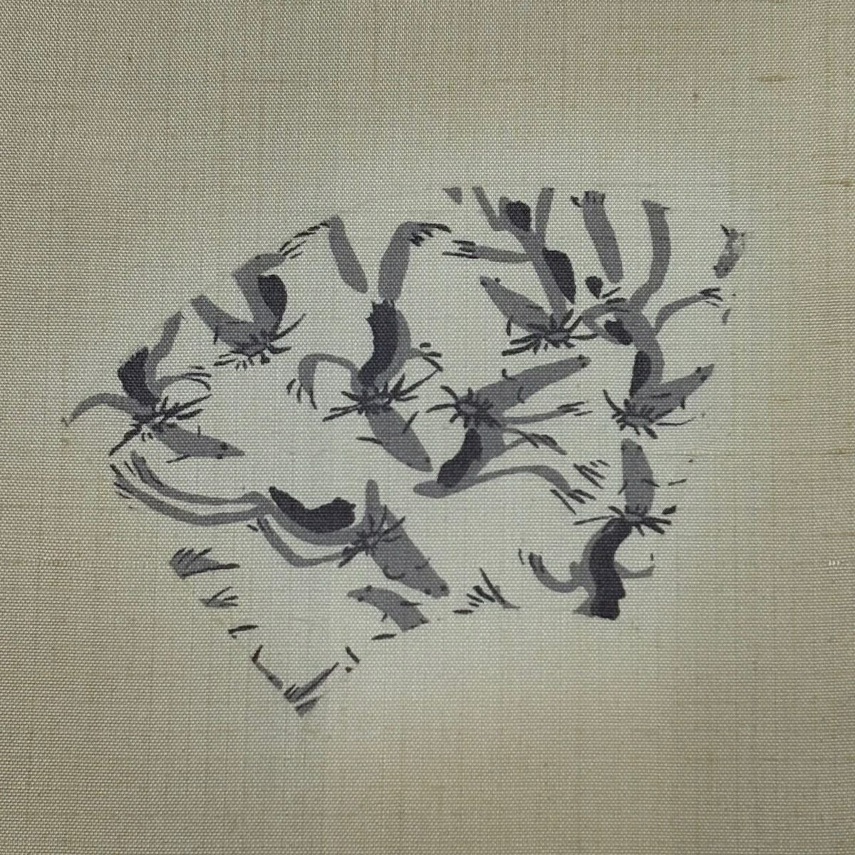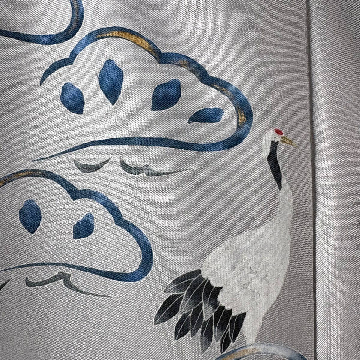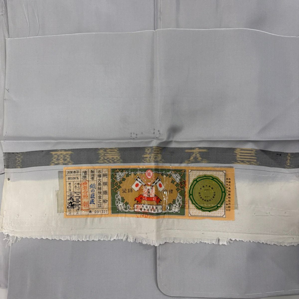 付下げ 身丈155.5cm 裄丈62.5cm S 袷 上野為二 大島紬地 鈴乃屋 落款あり 証紙あり 鶴 松 金彩 灰色 正絹 逸品