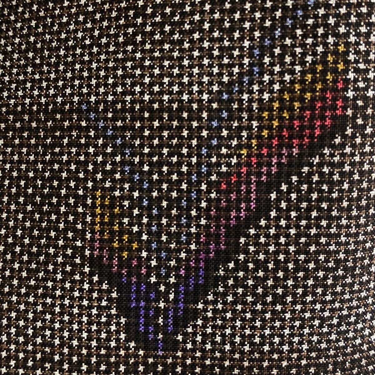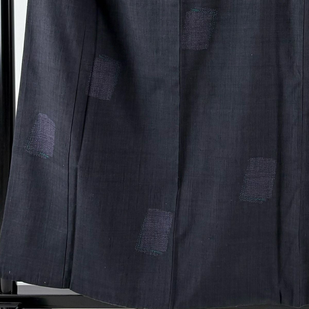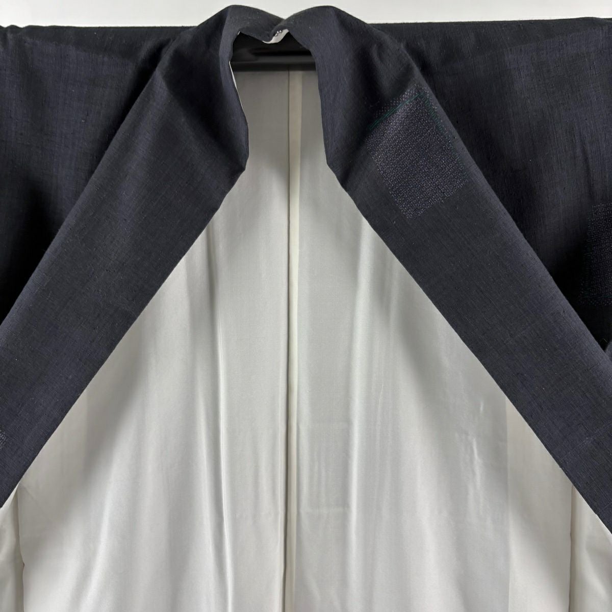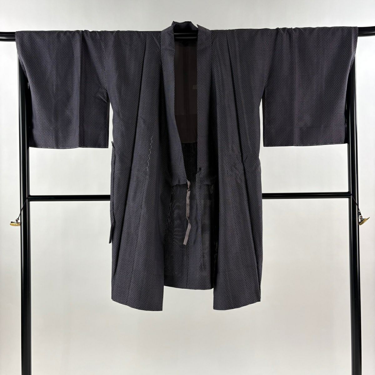 【美品】 男着物 身丈133.5cm 裄丈69cm S 袷 本場久米島紬 草木染 証紙あり 井桁絣 十字絣 焦茶色 正絹 逸品