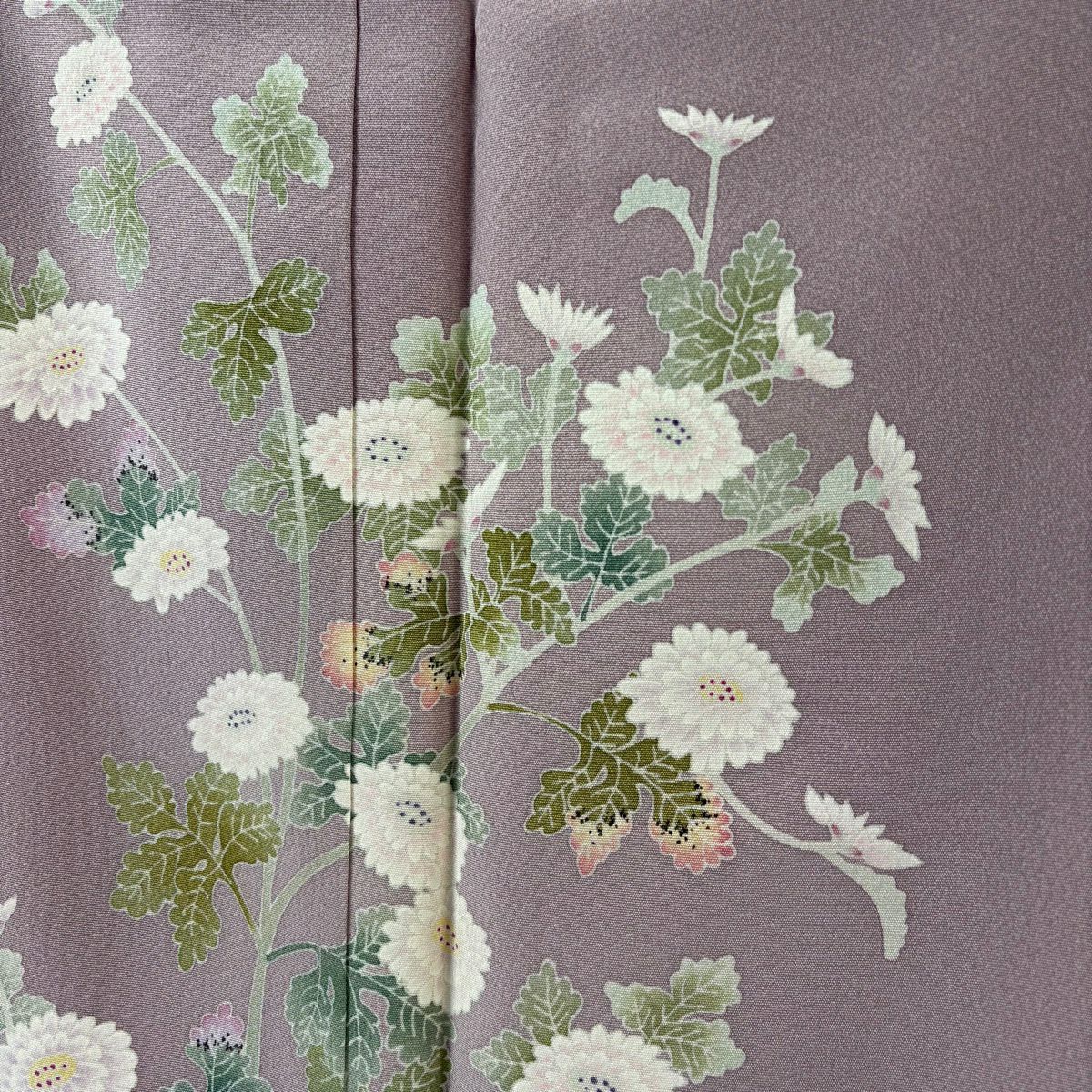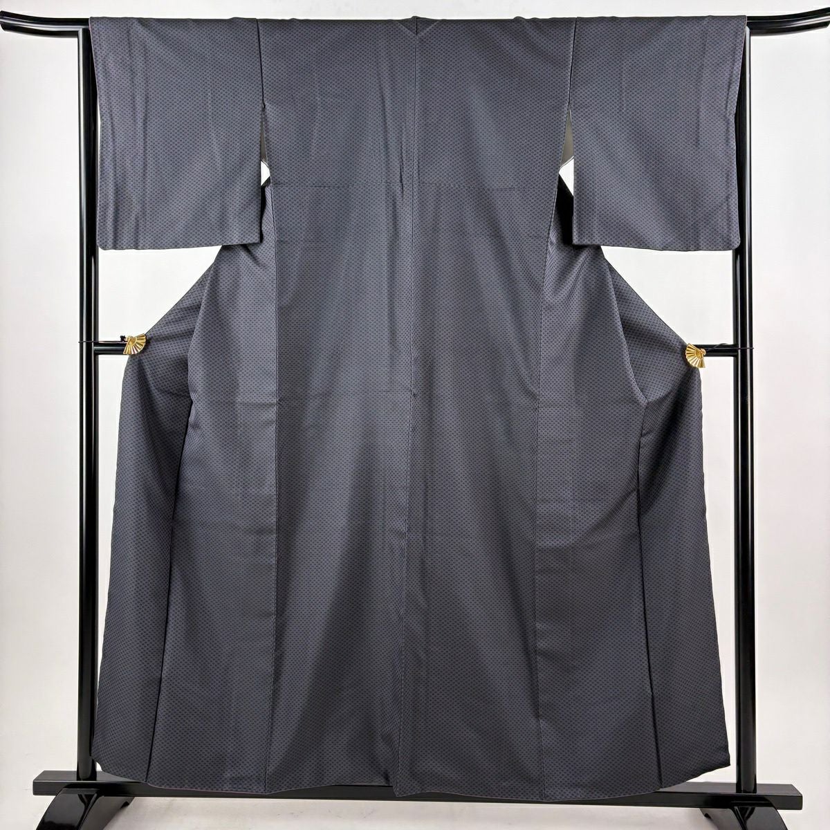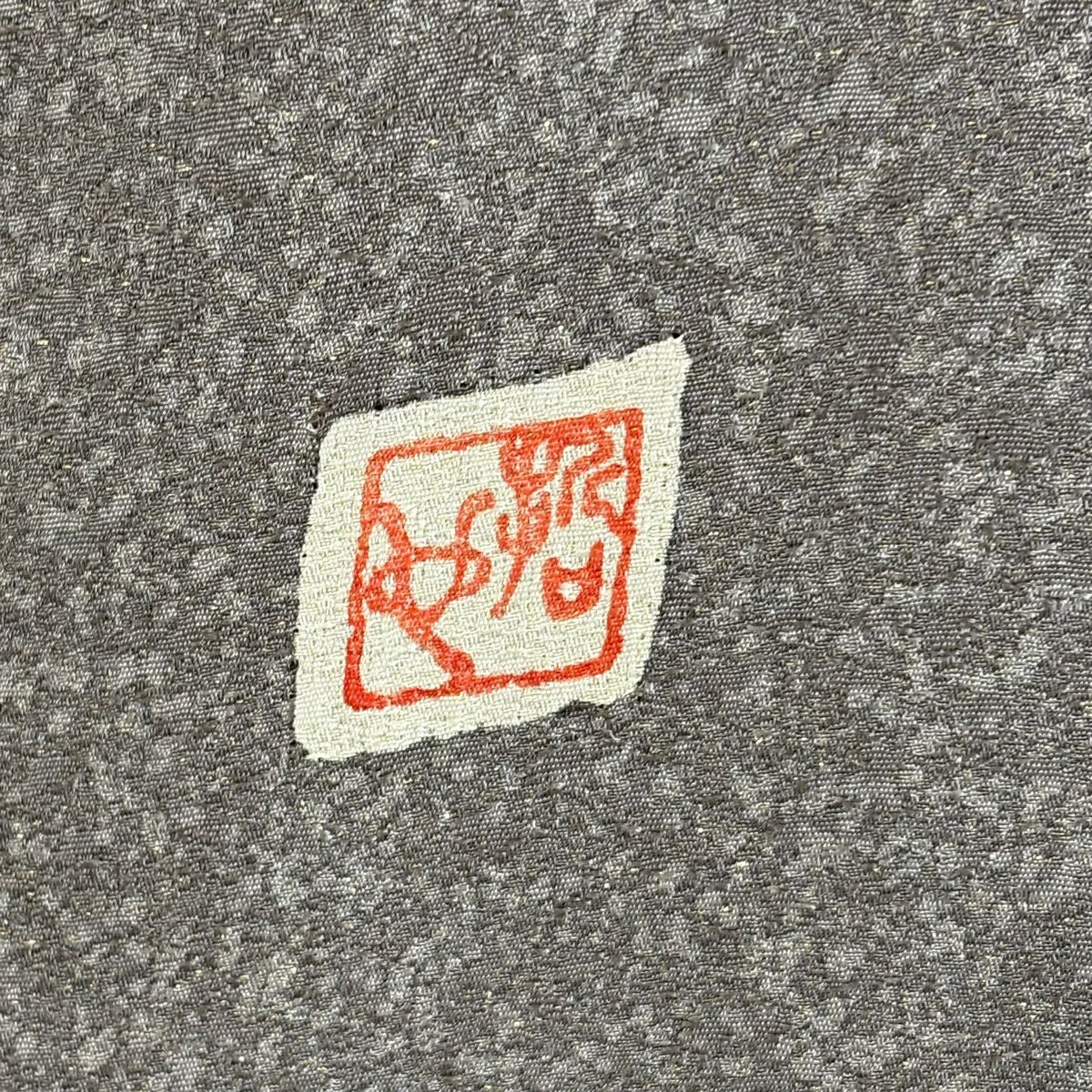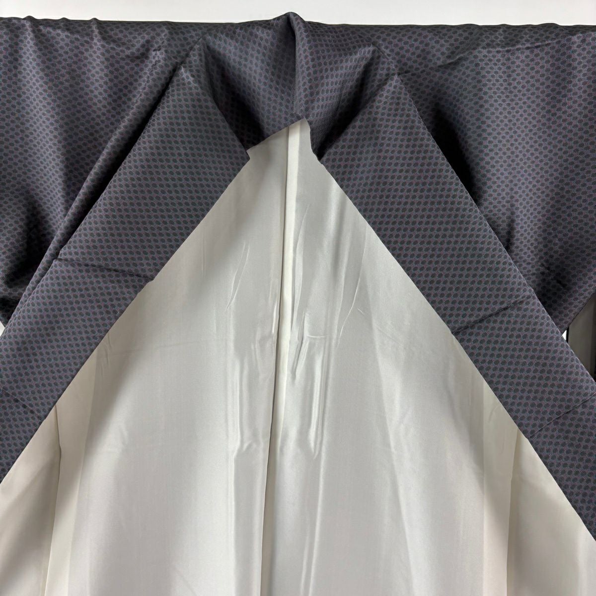【美品】 小紋 身丈167cm 裄丈66cm M 単衣 吉澤与市 紬地 落款あり 証紙あり 菊唐草 短冊 絞り 灰色 正絹 逸品
