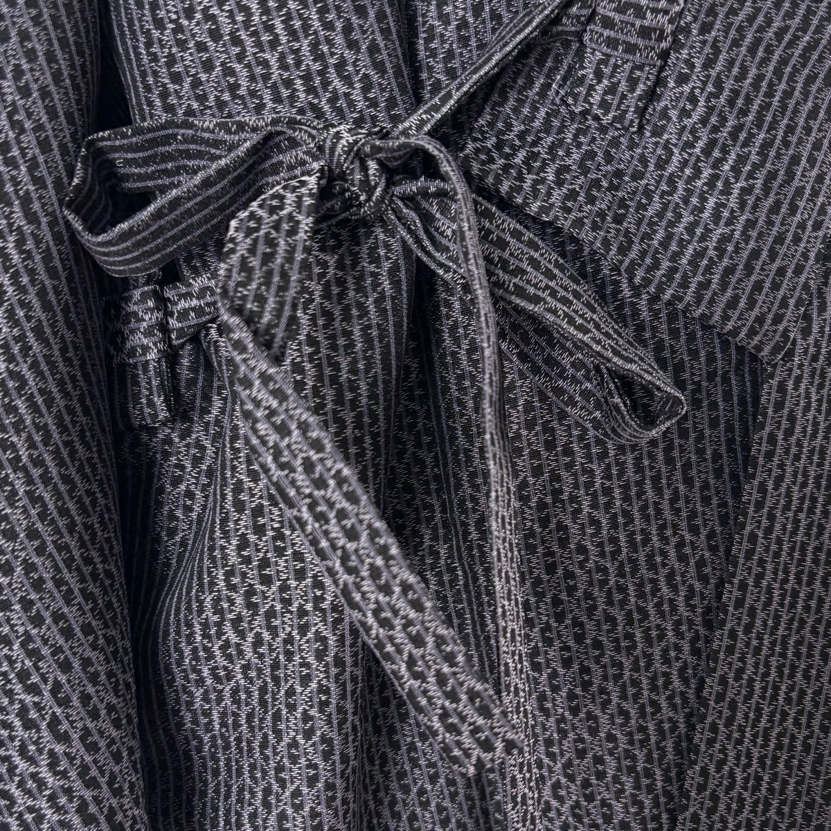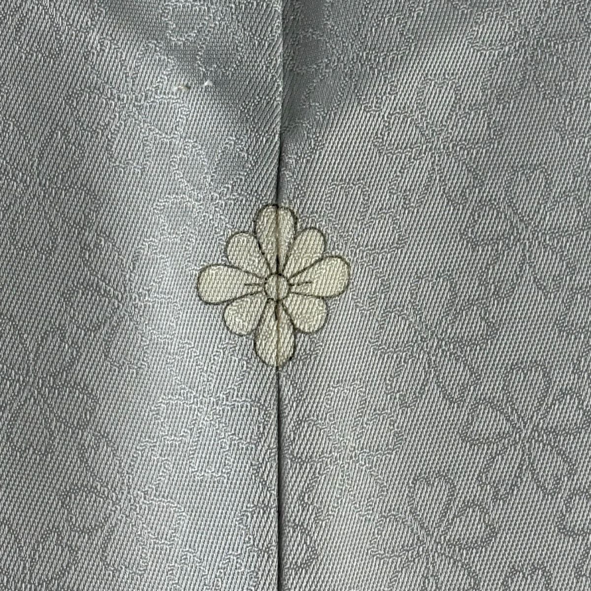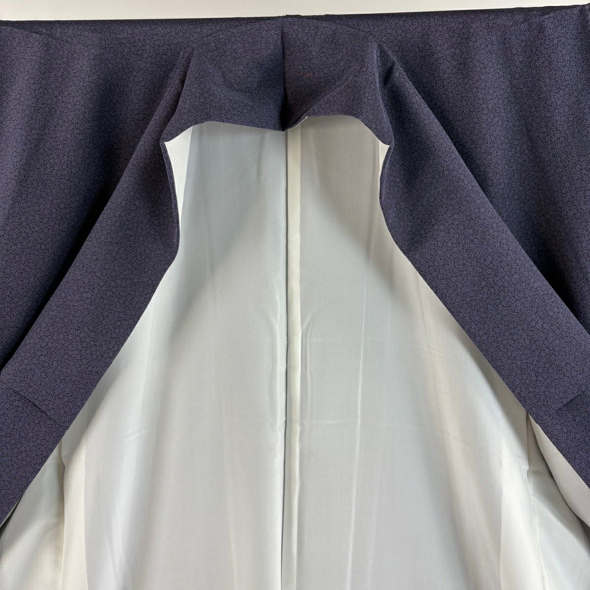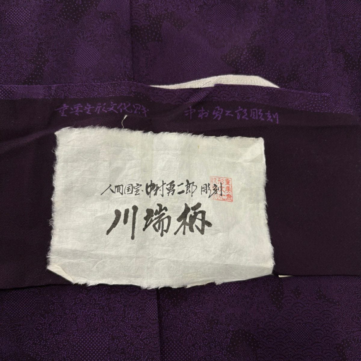 【美品】 小紋 身丈167cm 裄丈66cm M 単衣 吉澤与市 紬地 落款あり 証紙あり 菊唐草 短冊 絞り 灰色 正絹 逸品
