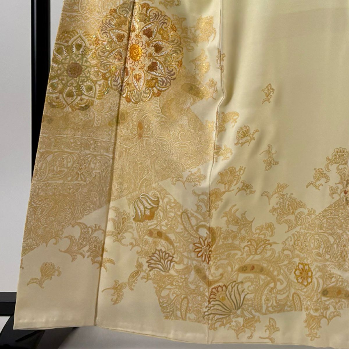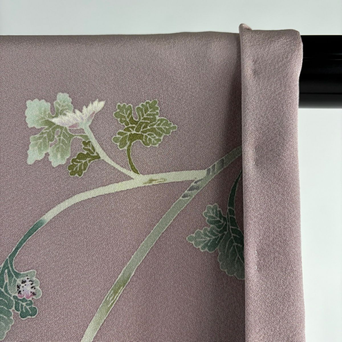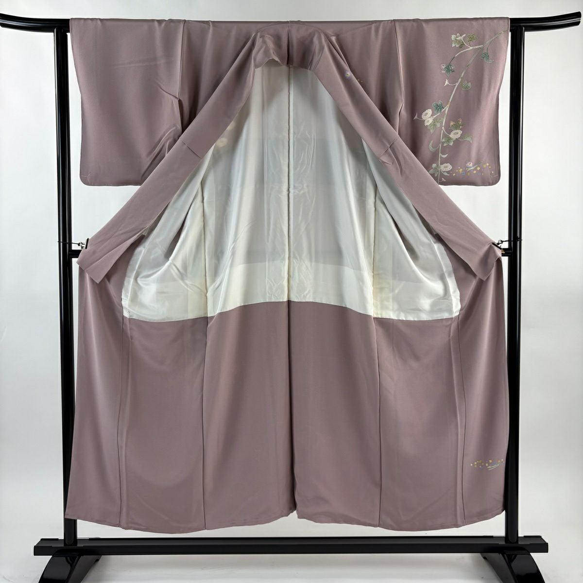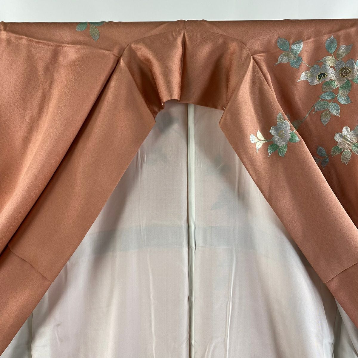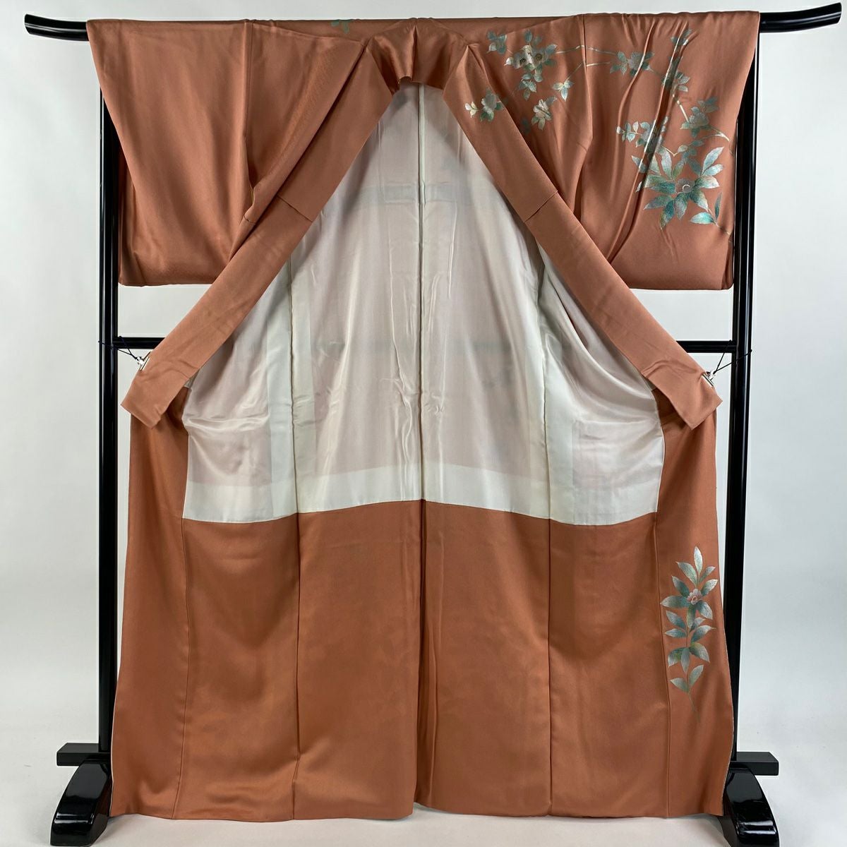 【在庫一掃】 訪問着 身丈170cm 裄丈68cm L 袷 藤本隆士 落款あり 草花 螺鈿 金銀彩 薄オレンジ 正絹 逸品