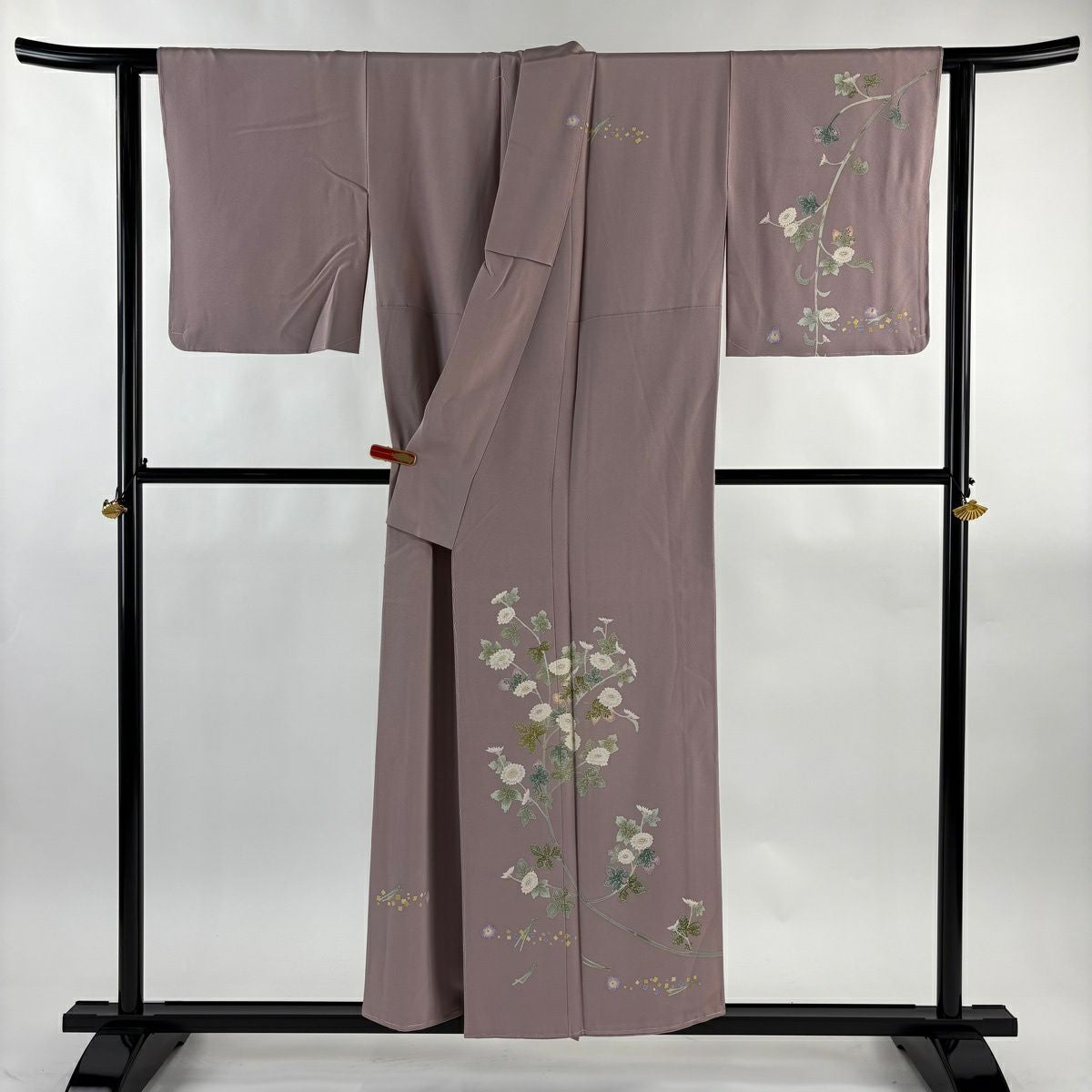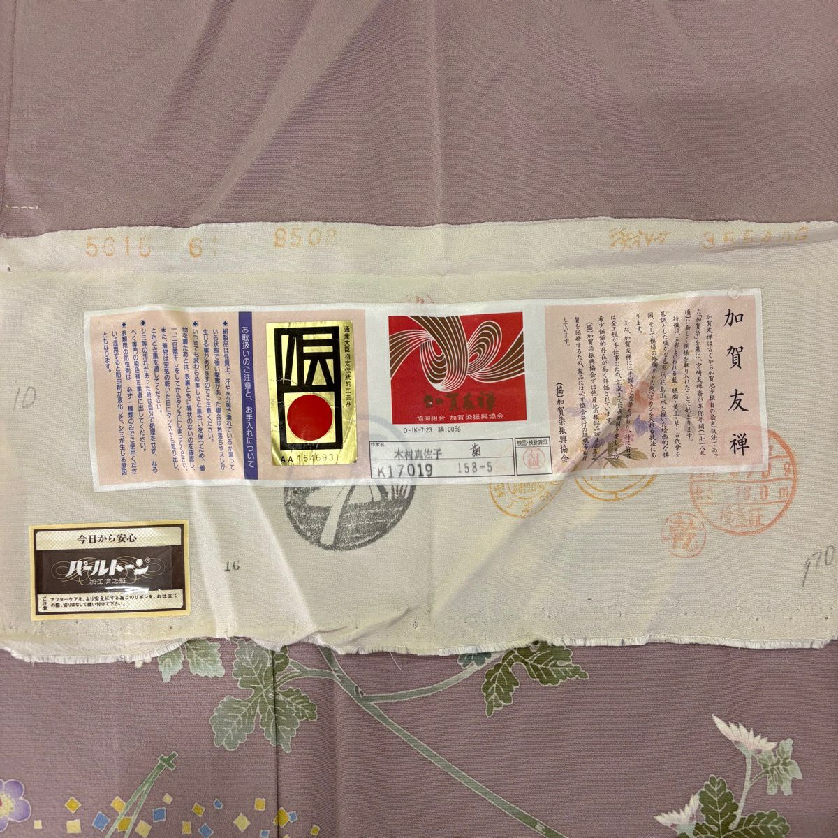 【美品】 訪問着 身丈167cm 裄丈68cm L 袷 吉乃一廉 落款あり 辻が花柄 松竹梅 銀通し 金銀彩 茶紫 正絹 逸品