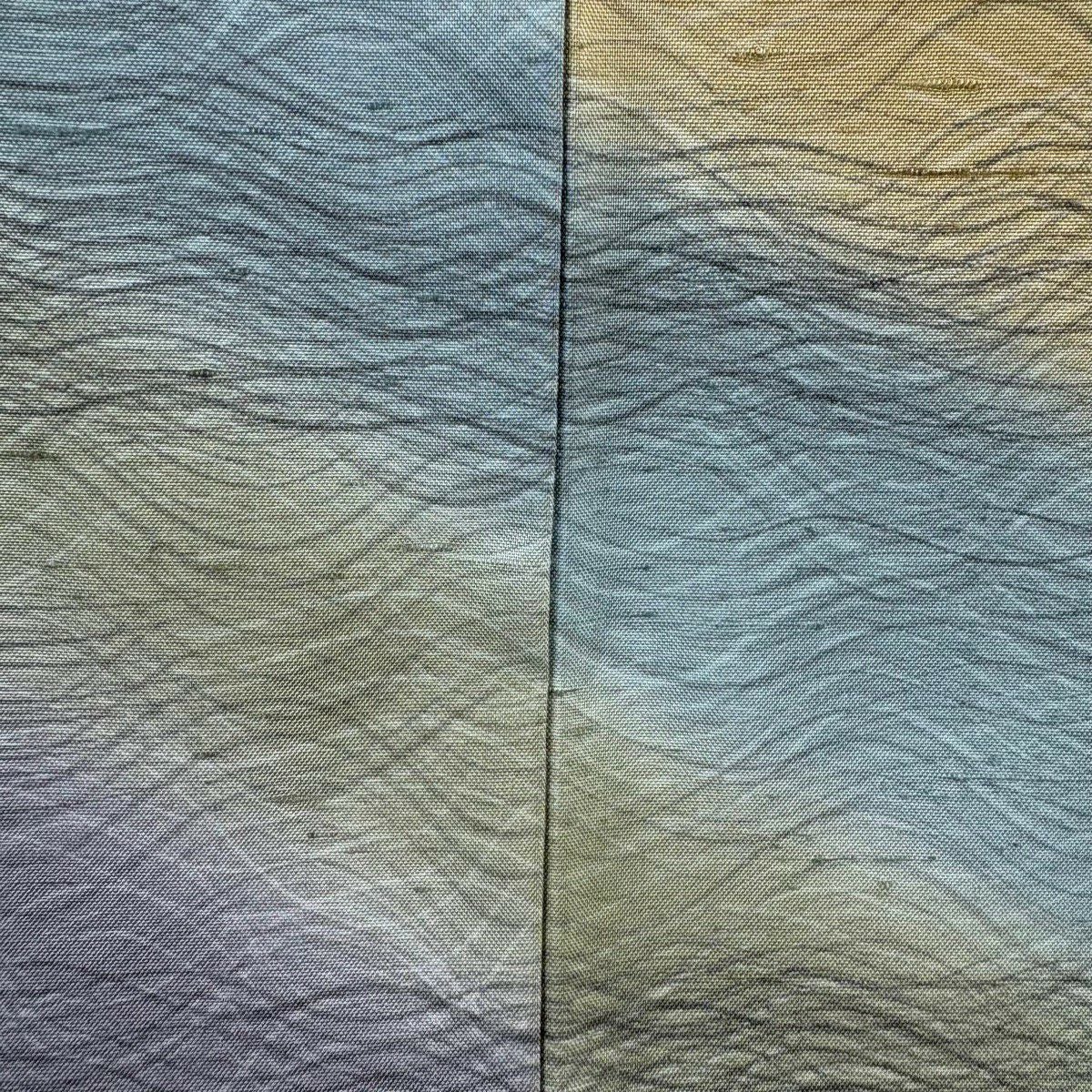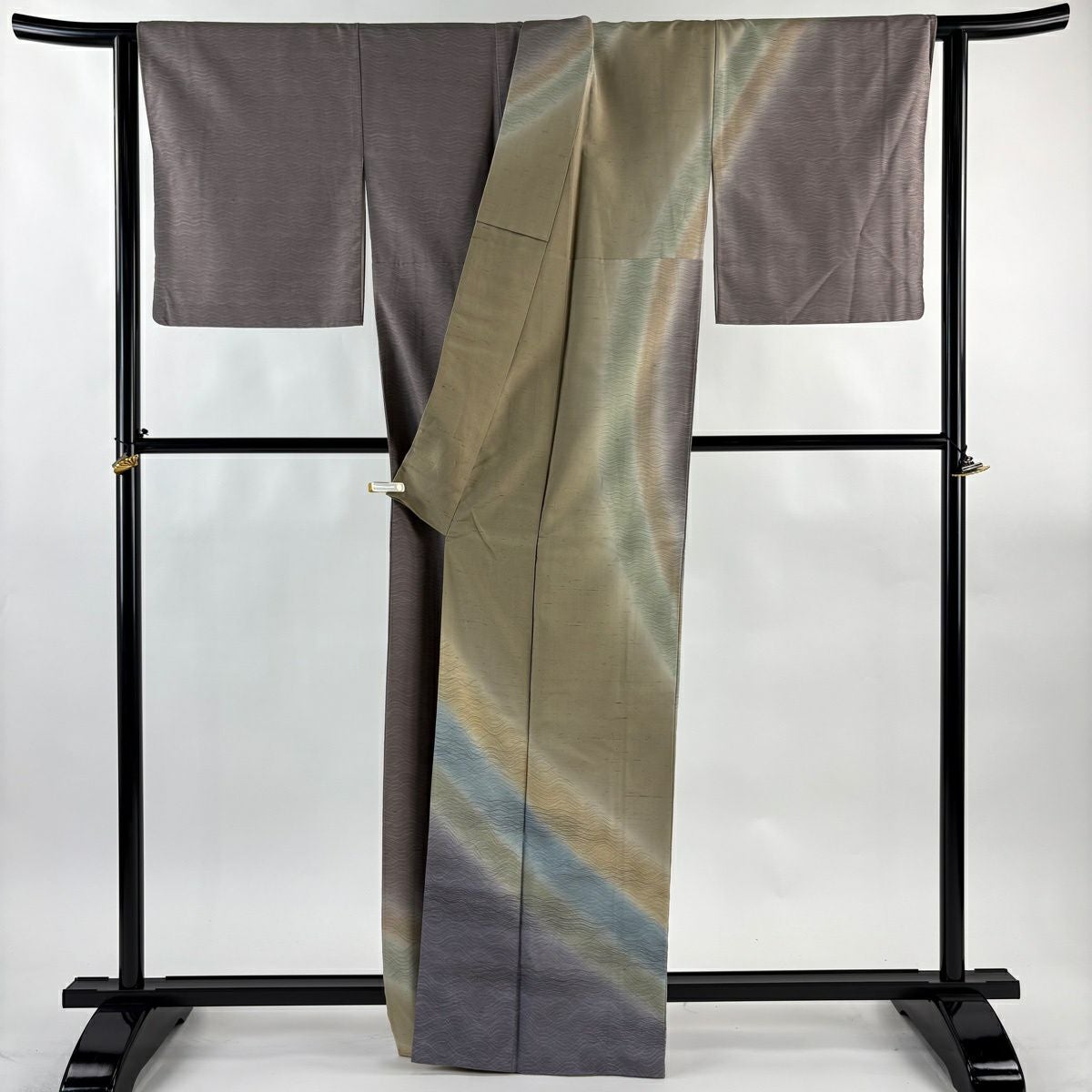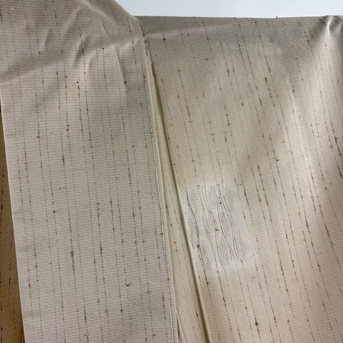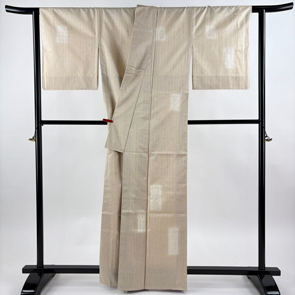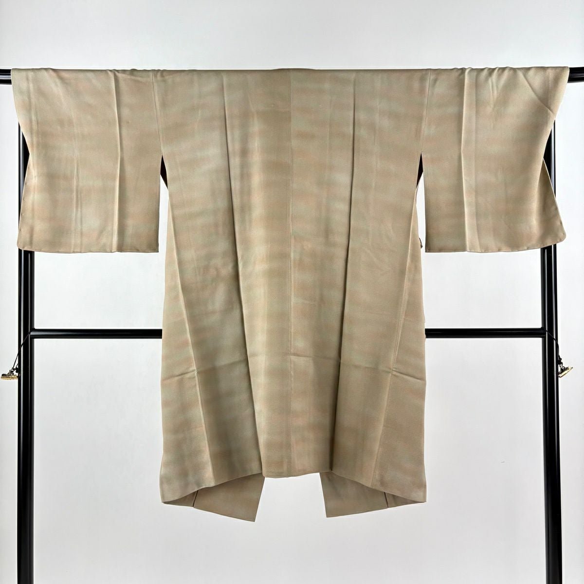【美品】 付下げ 身丈163.5cm 裄丈64cm M 袷 やまと 紬地 胴抜き 短冊 縦縞 ぼかし ベージュ 正絹 逸品