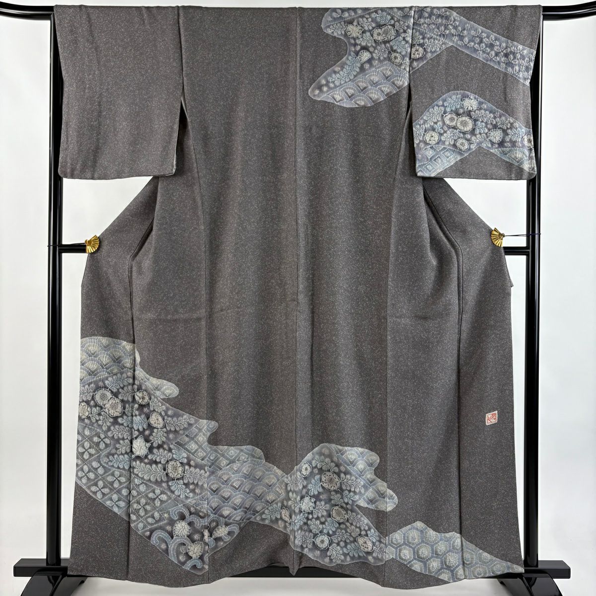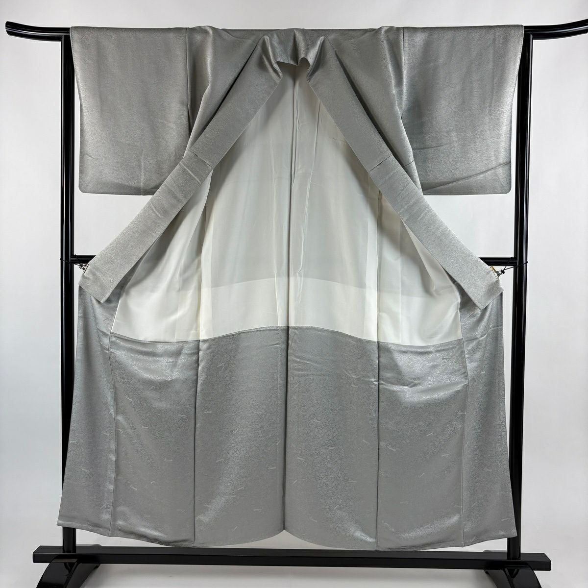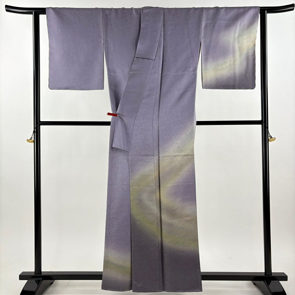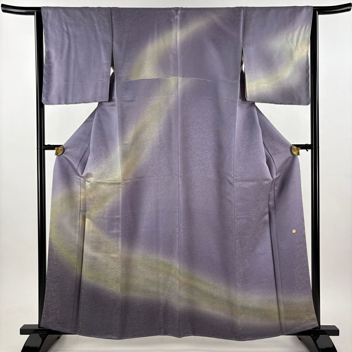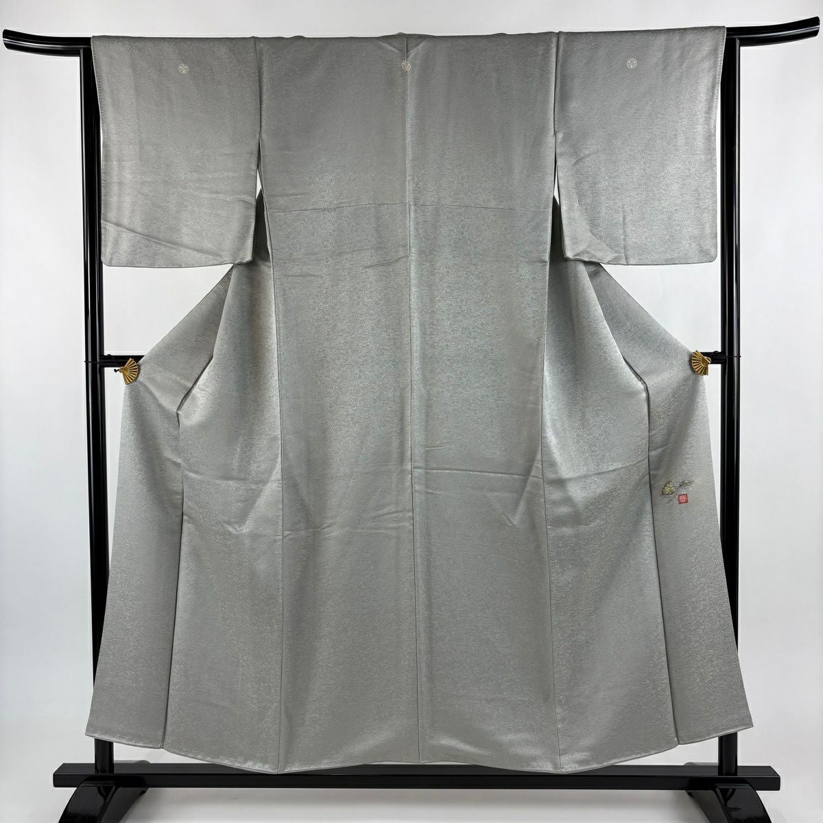 【在庫一掃】 【美品】 付下げ 身丈152cm 裄丈61.5cm S 袷 落款あり フクロウ 金銀彩 ぼかし 灰色 正絹 逸品