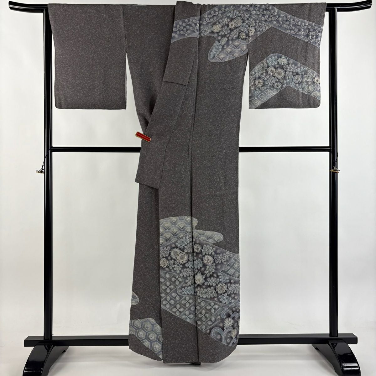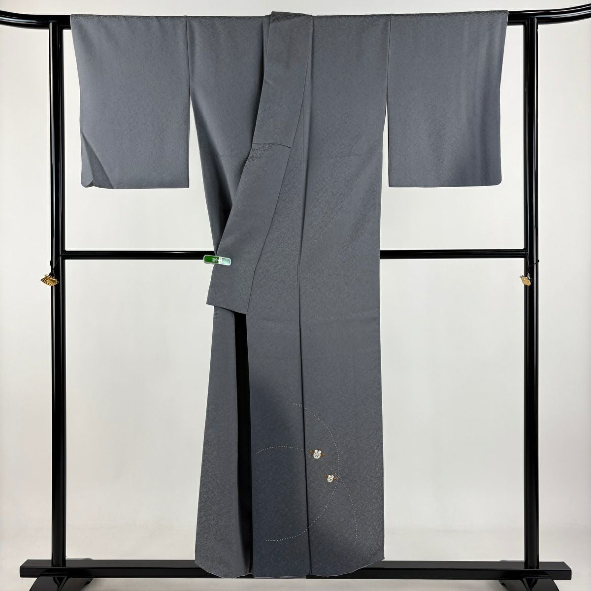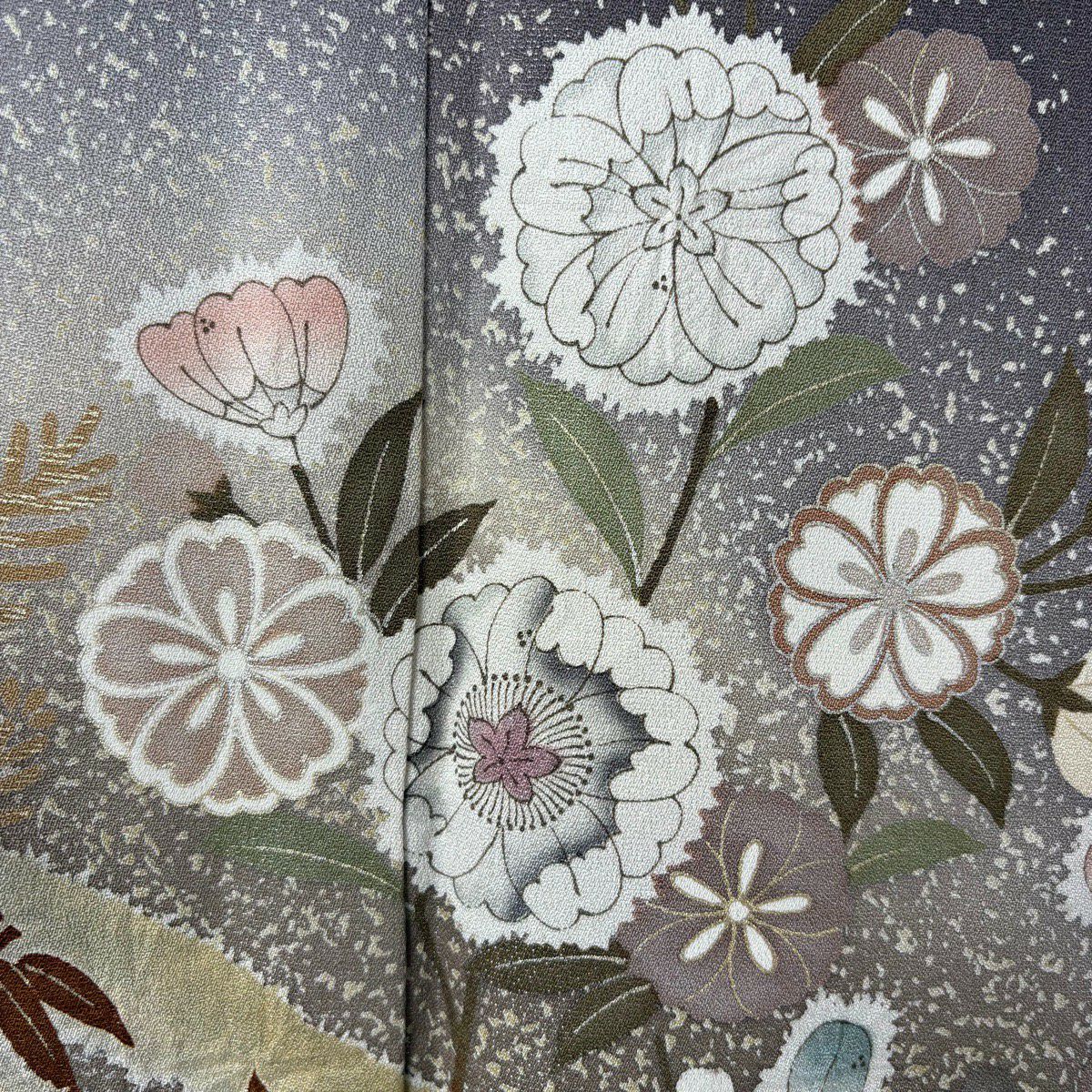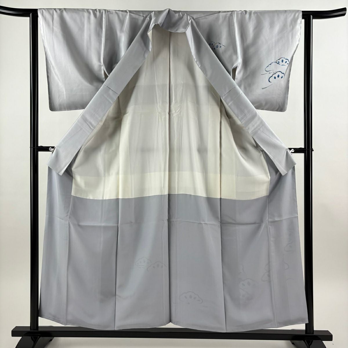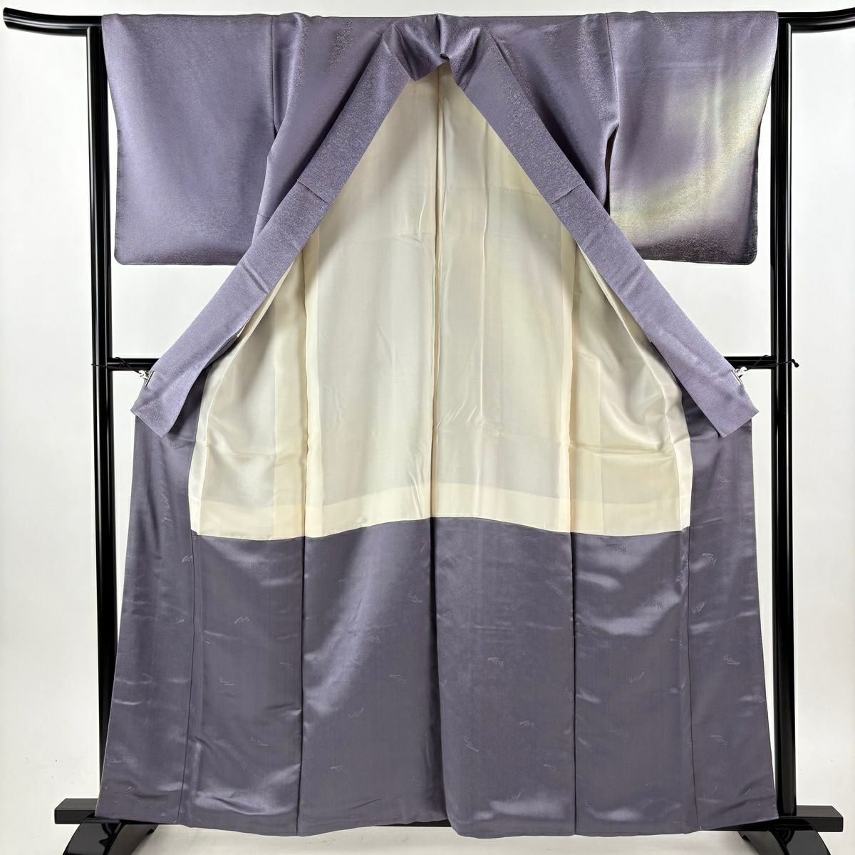 【在庫一掃】 【美品】 付下げ 身丈152cm 裄丈61.5cm S 袷 落款あり フクロウ 金銀彩 ぼかし 灰色 正絹 逸品