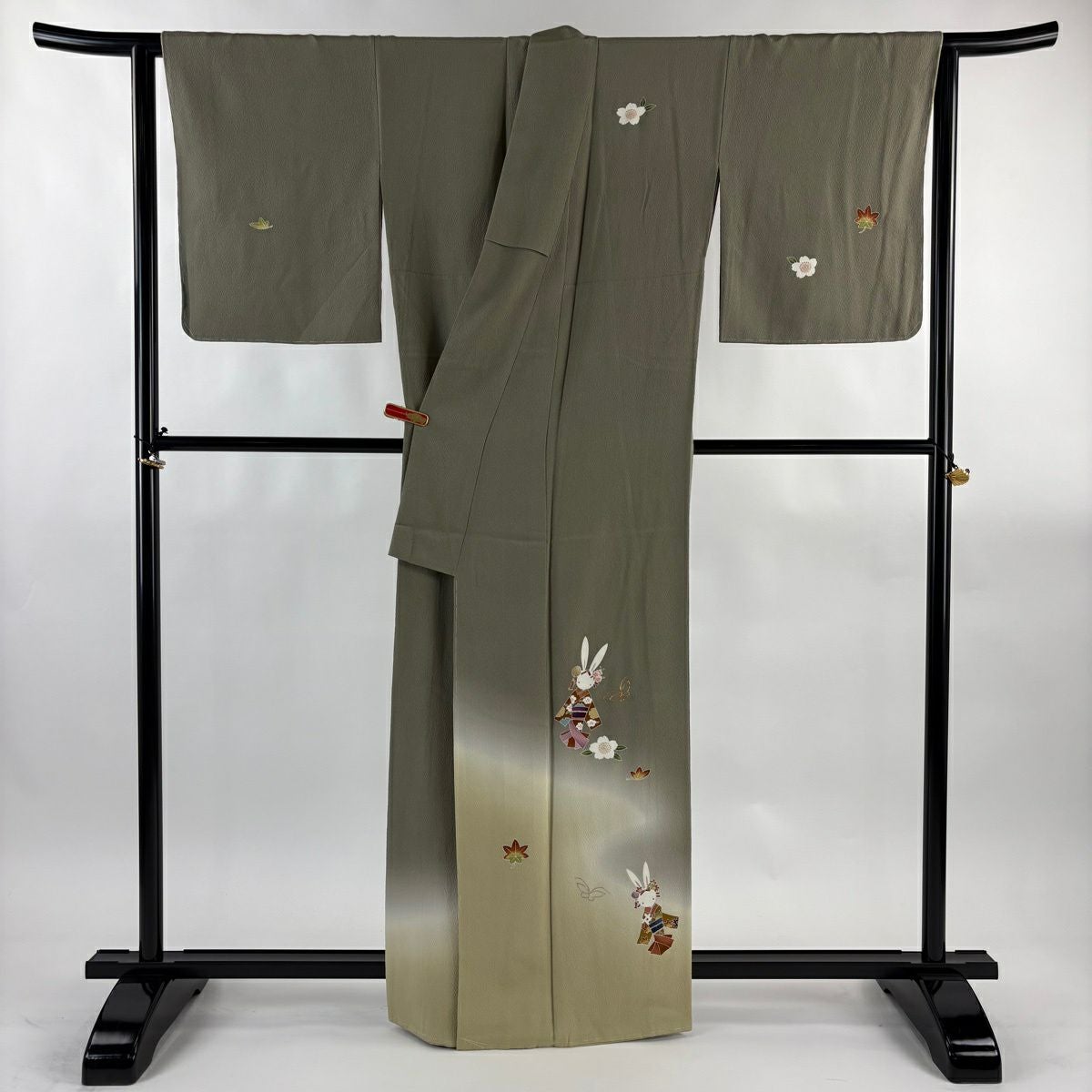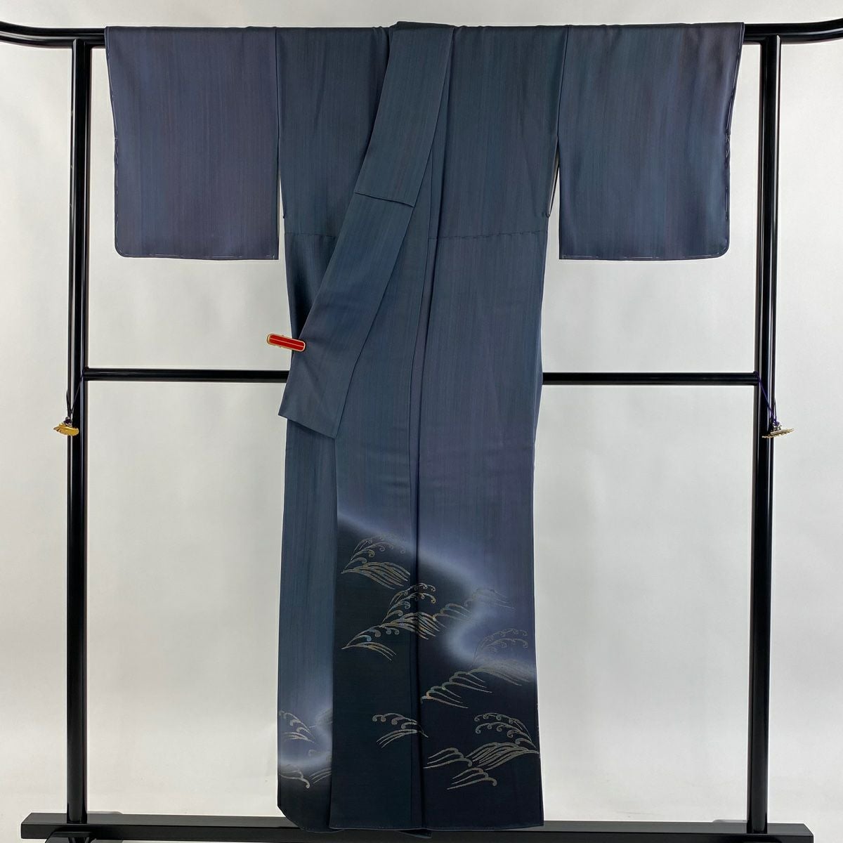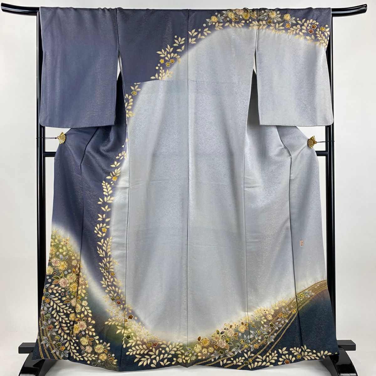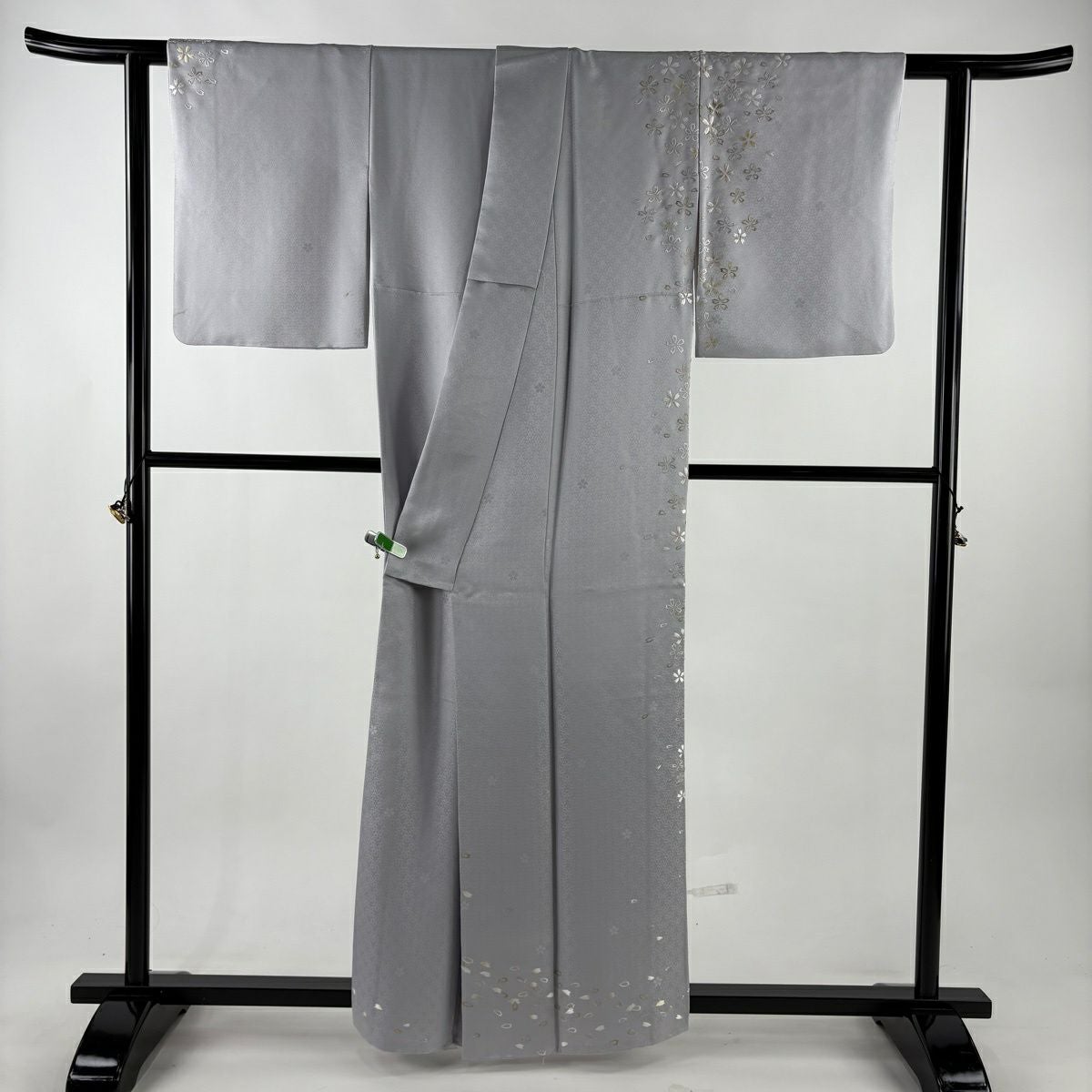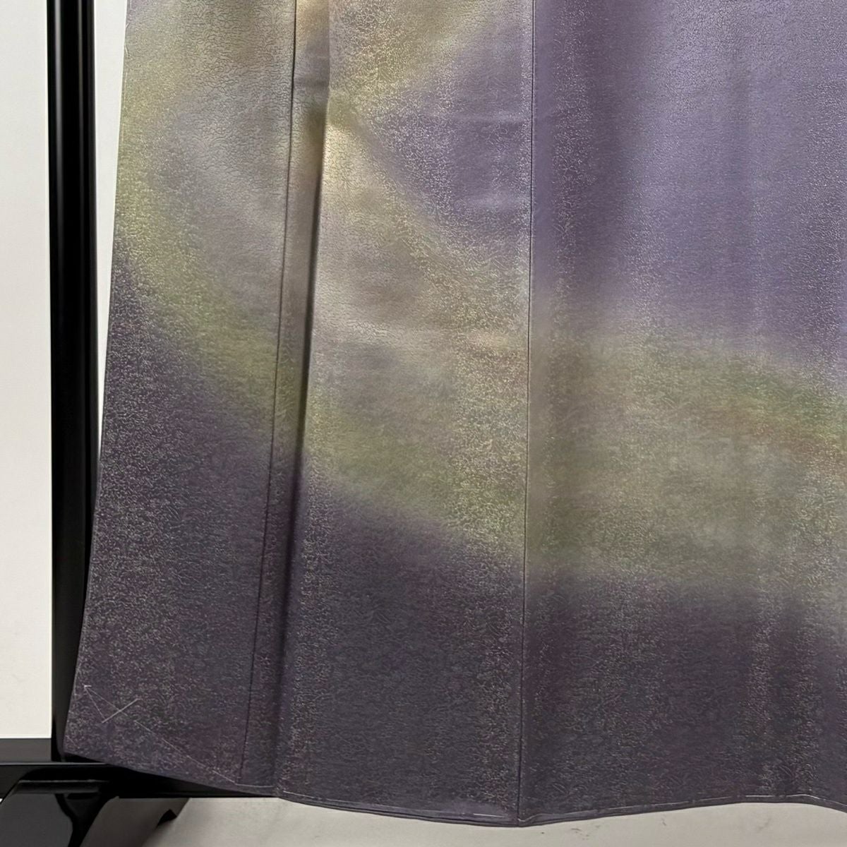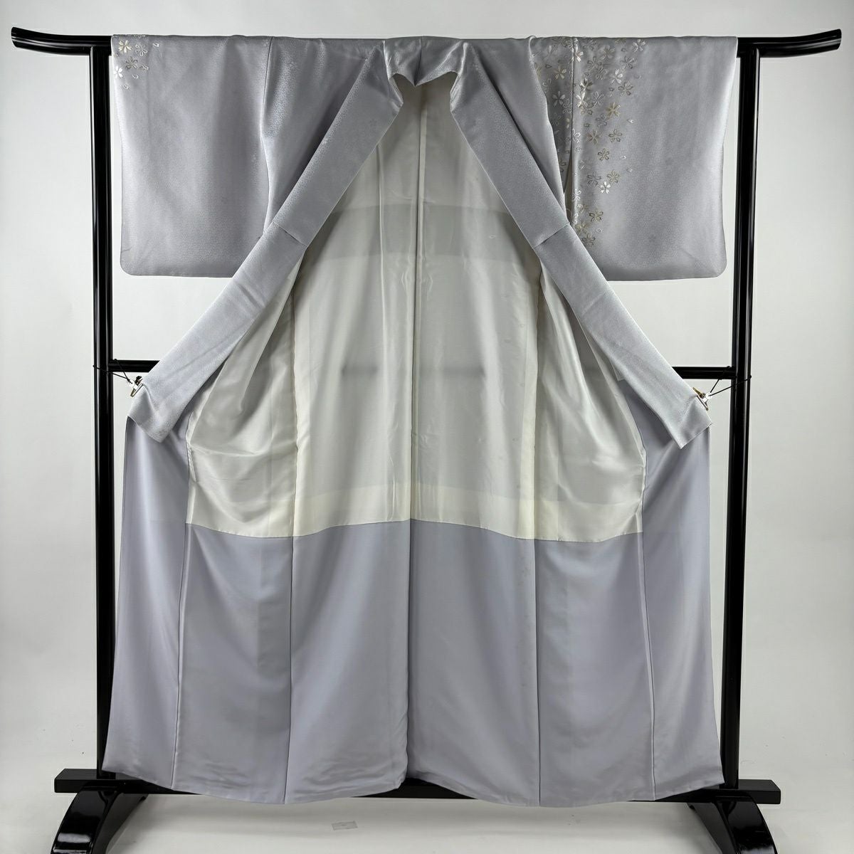 【在庫一掃】 【美品】 付下げ 身丈152cm 裄丈61.5cm S 袷 落款あり フクロウ 金銀彩 ぼかし 灰色 正絹 逸品