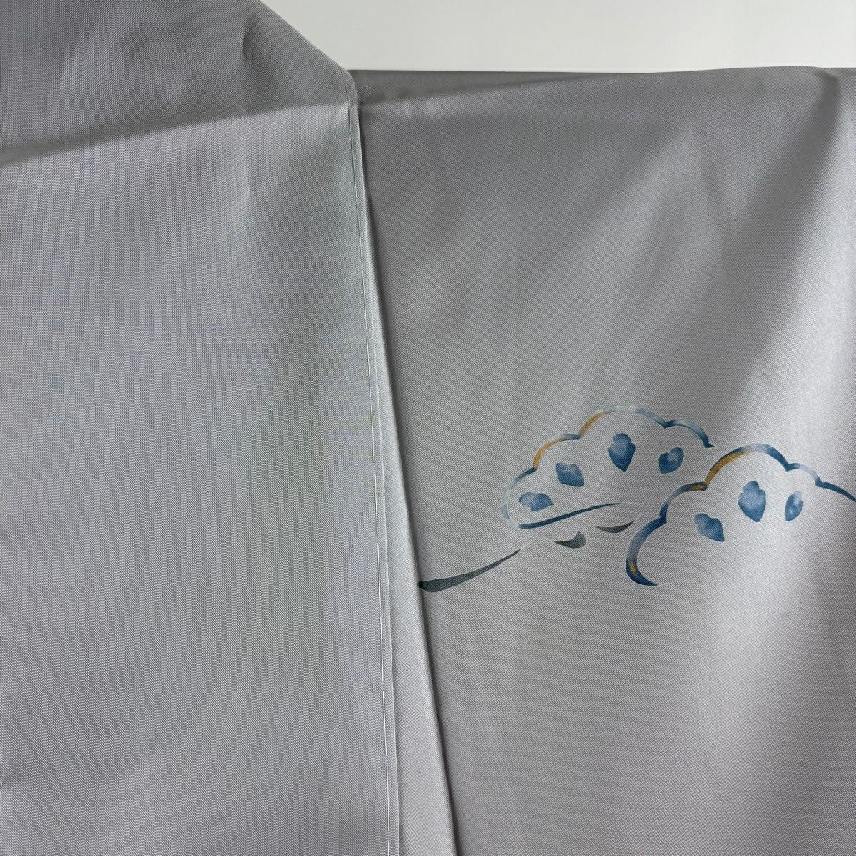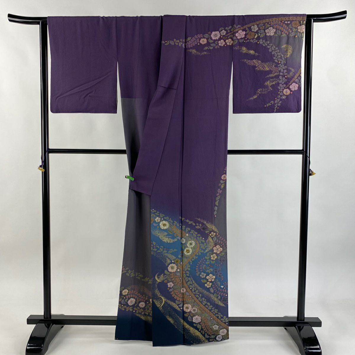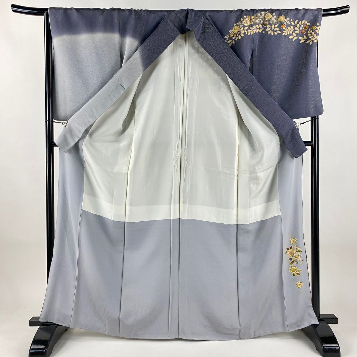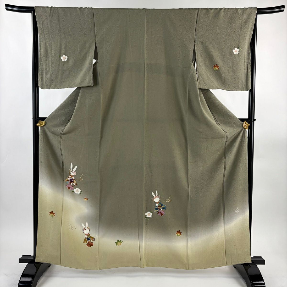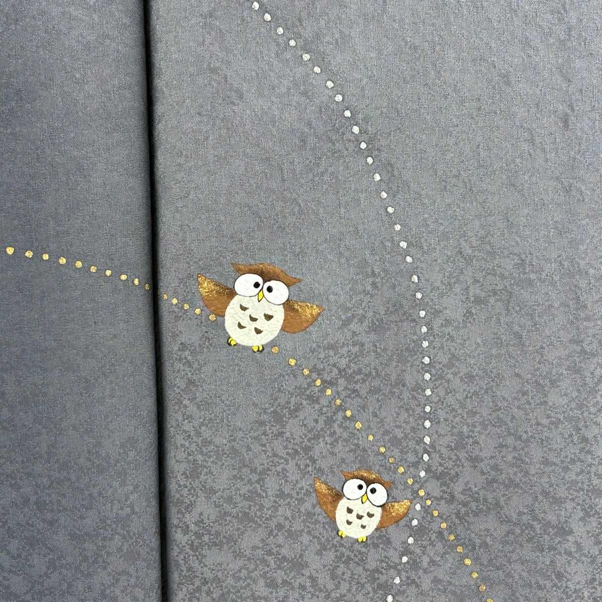 【在庫一掃】 【美品】 付下げ 身丈152cm 裄丈61.5cm S 袷 落款あり フクロウ 金銀彩 ぼかし 灰色 正絹 逸品