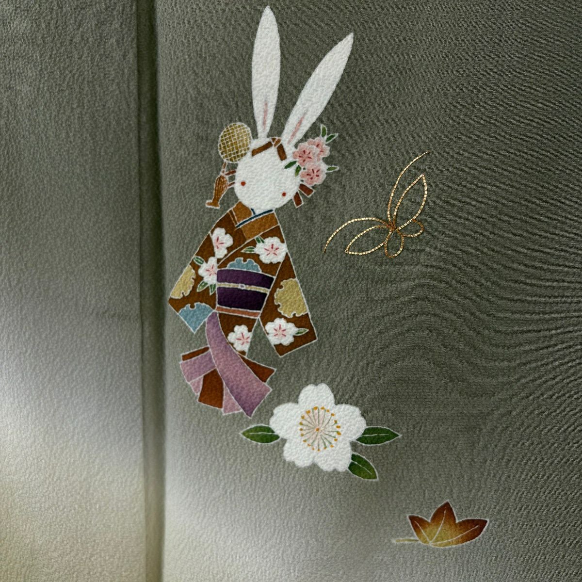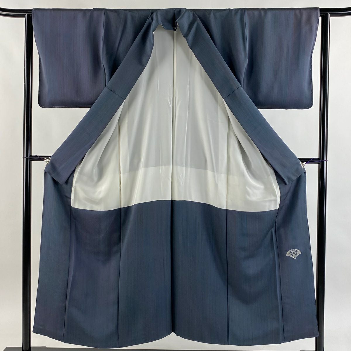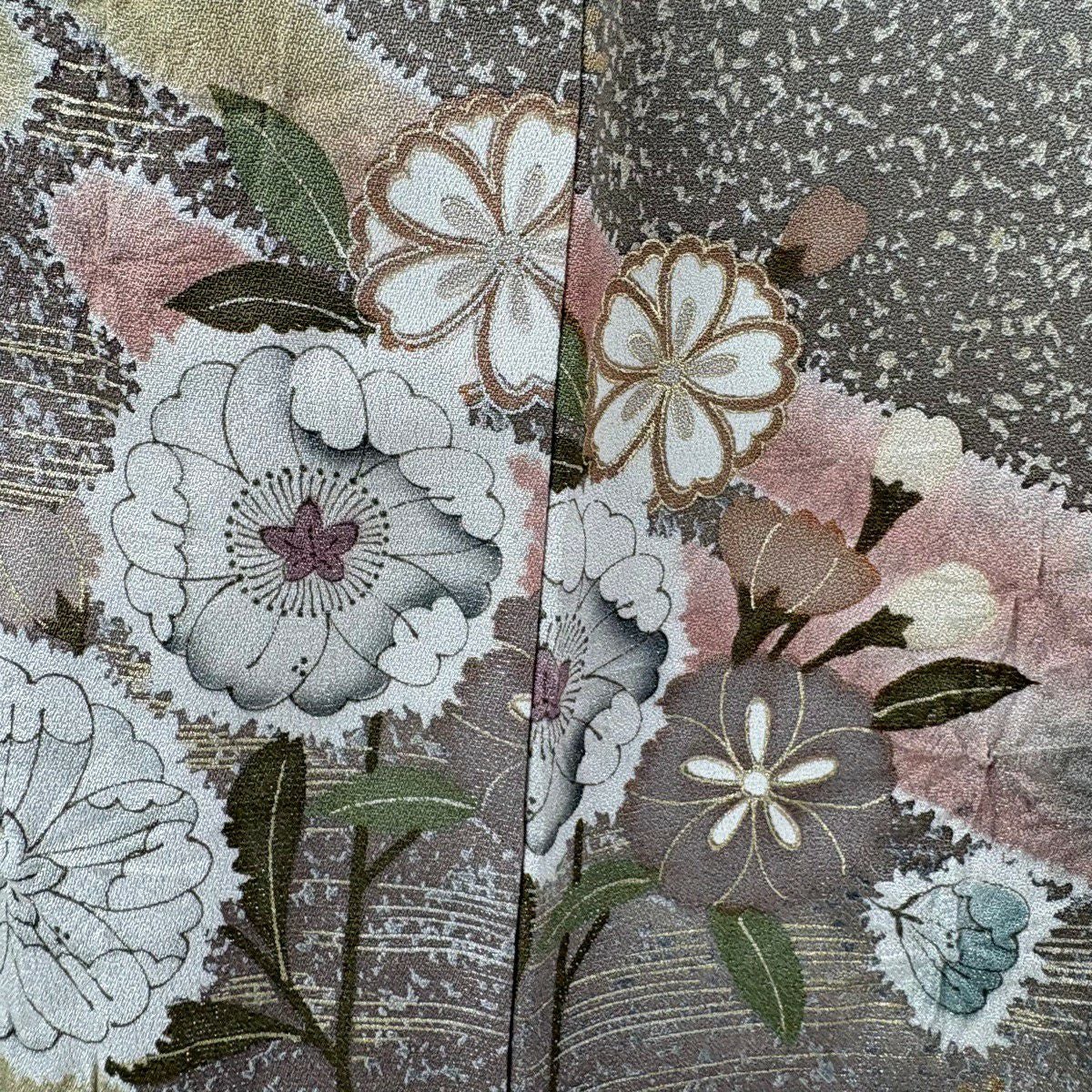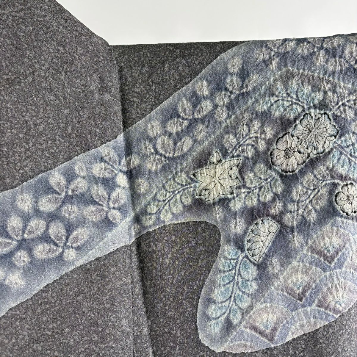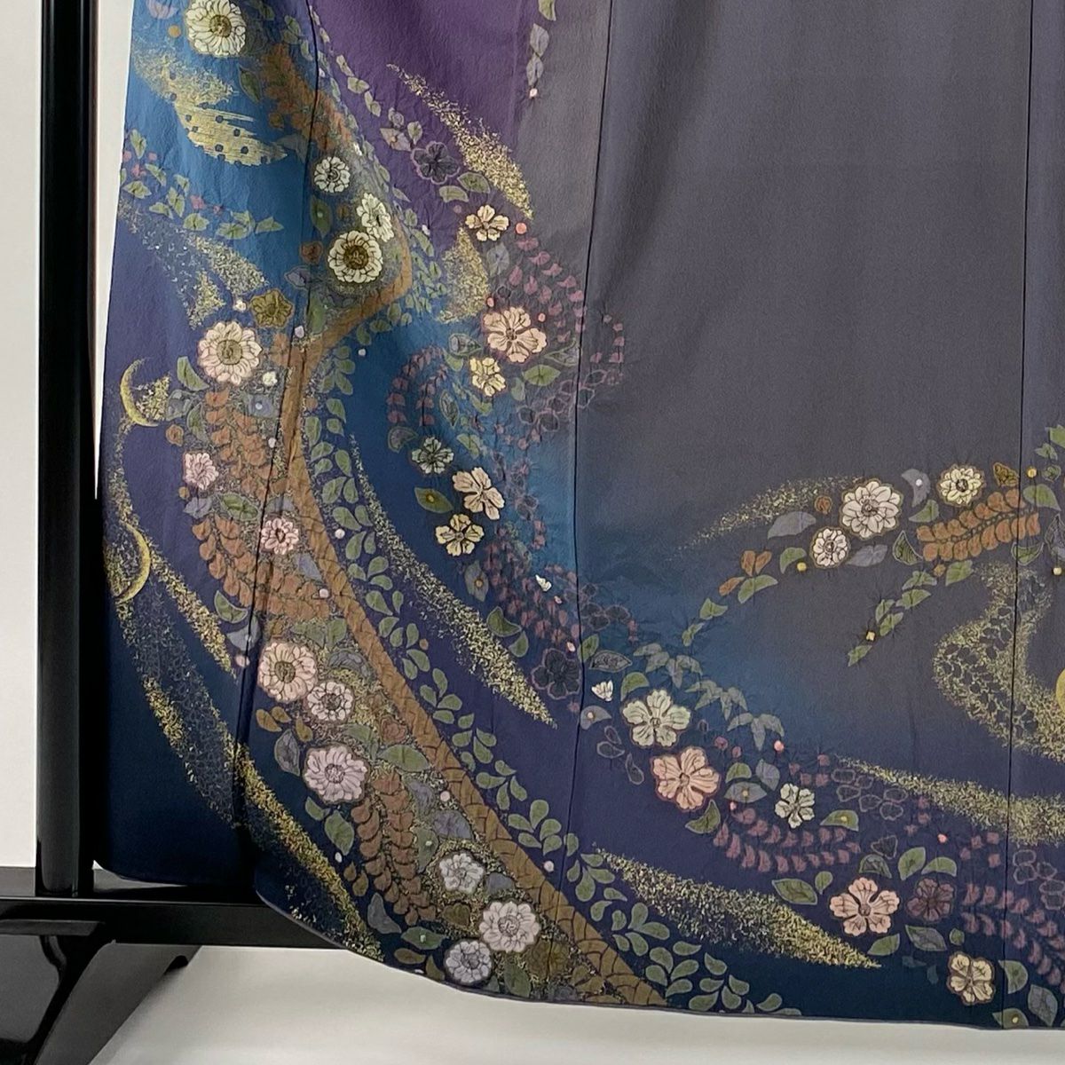 【在庫一掃】 【美品】 付下げ 身丈152cm 裄丈61.5cm S 袷 落款あり フクロウ 金銀彩 ぼかし 灰色 正絹 逸品