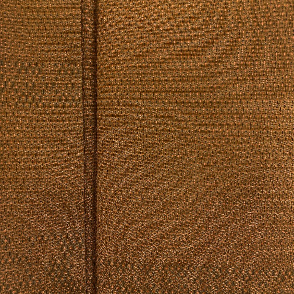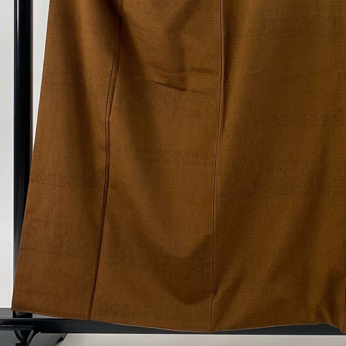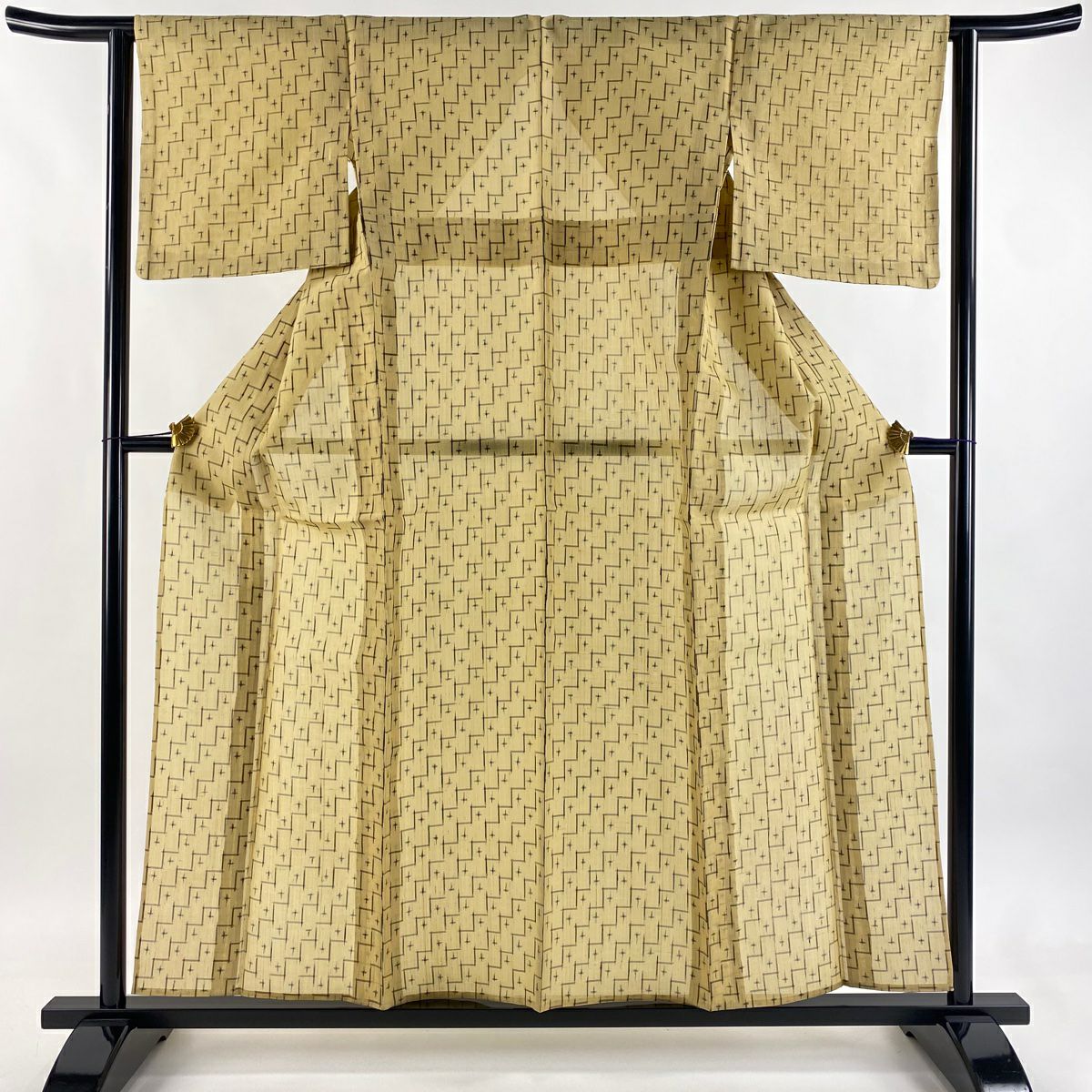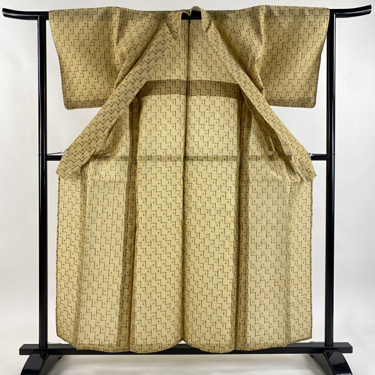 【在庫一掃】 お召 身丈158cm 裄丈65.5cm M 袷 やまだ織 雪の中のきれ 証紙あり 段縞 亀甲 茶色 正絹 逸品