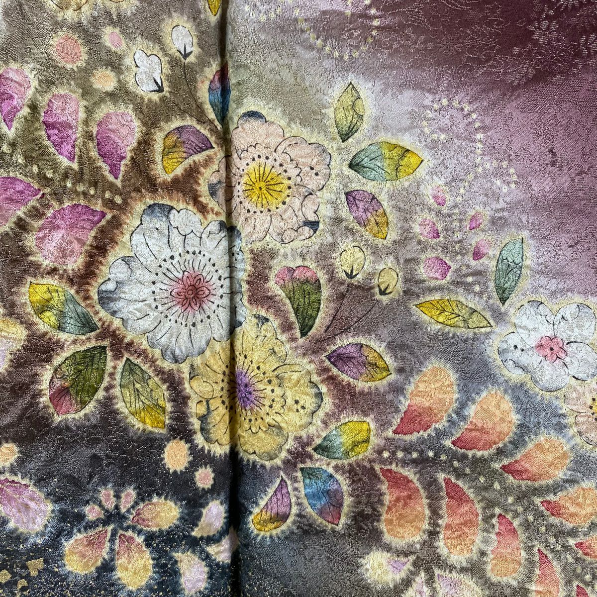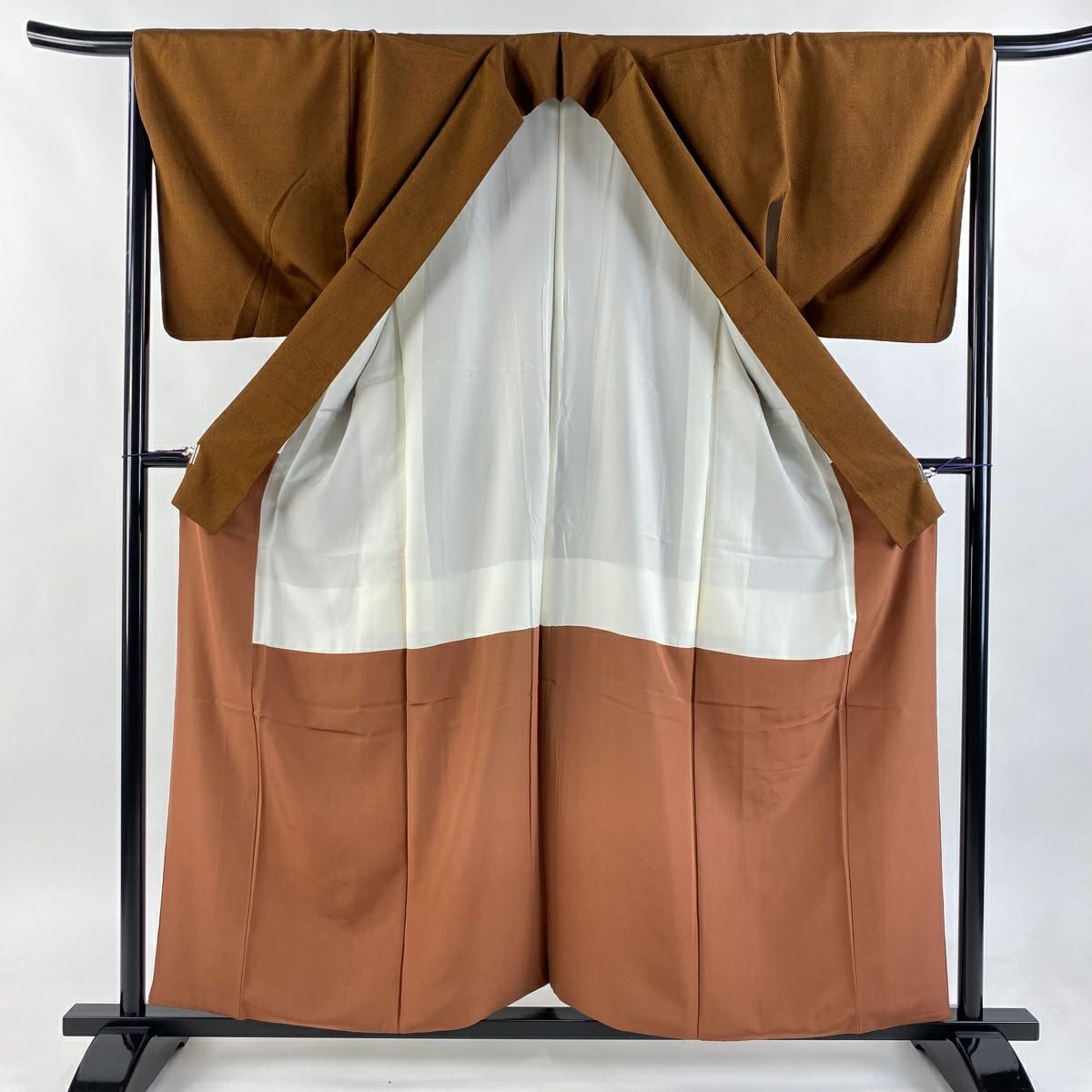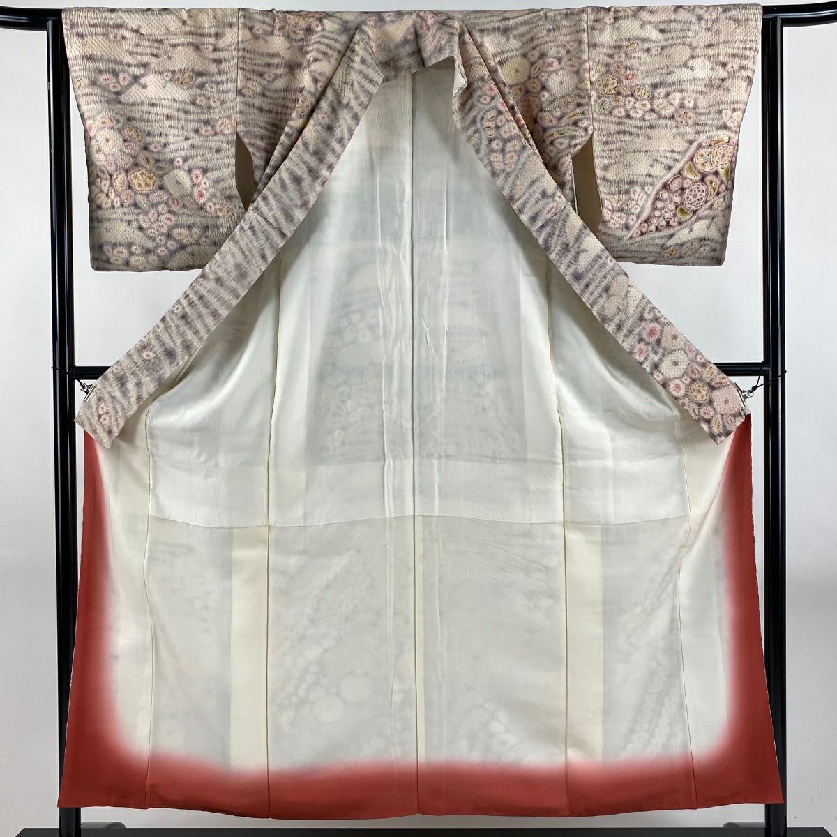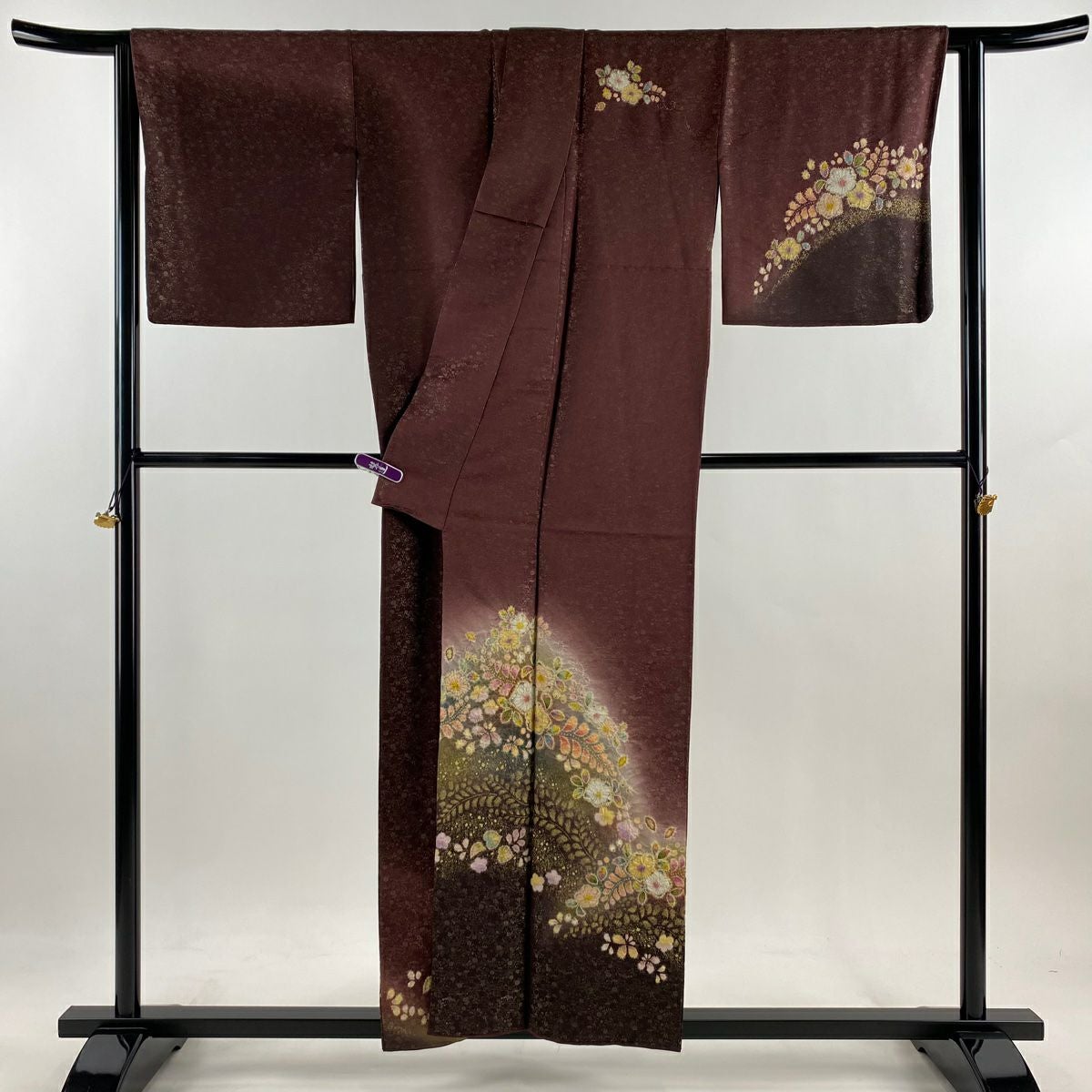【在庫一掃】 【美品】 訪問着 身丈155cm 裄丈63.5cm S 袷 京屋林蔵 落款あり 辻が花 ぼかし 薄小豆 正絹 逸品