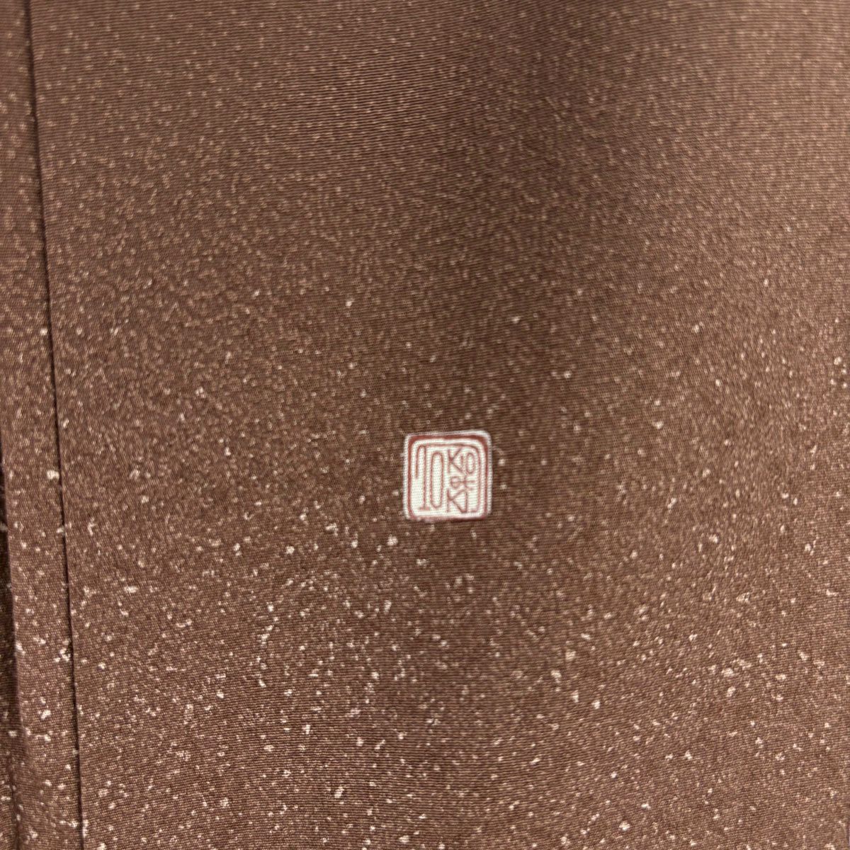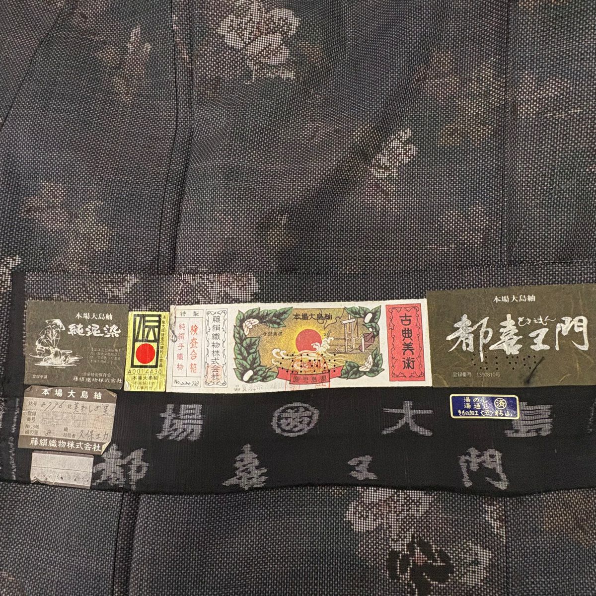 【在庫一掃】 【美品】 大島紬 身丈157.5cm 裄丈62.5cm S 袷 都喜ヱ門 純泥染 証紙あり 葉柄 焦茶色 正絹 逸品
