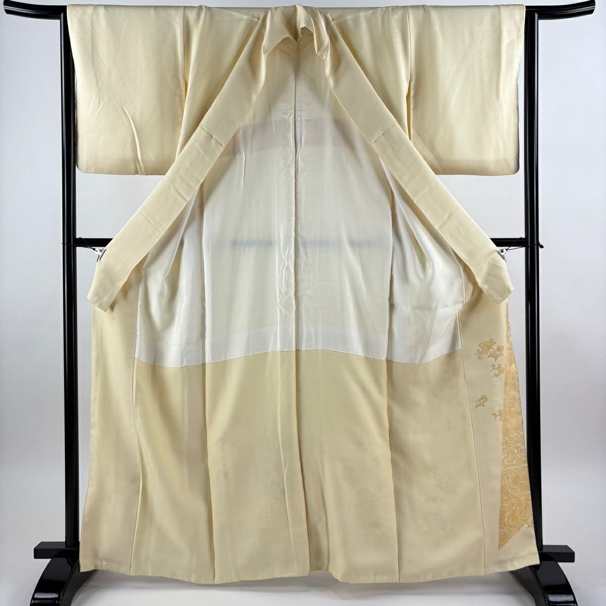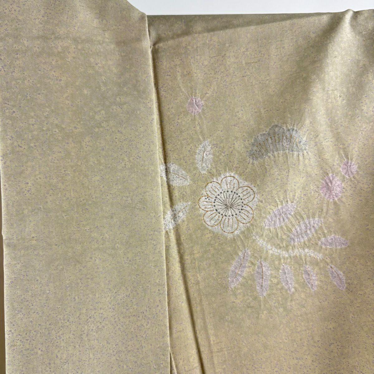 【美品】 訪問着 身丈167cm 裄丈64.5cm M 袷 牛首紬地 落款あり 辻が花柄 金彩 絞り ベージュ 正絹 逸品