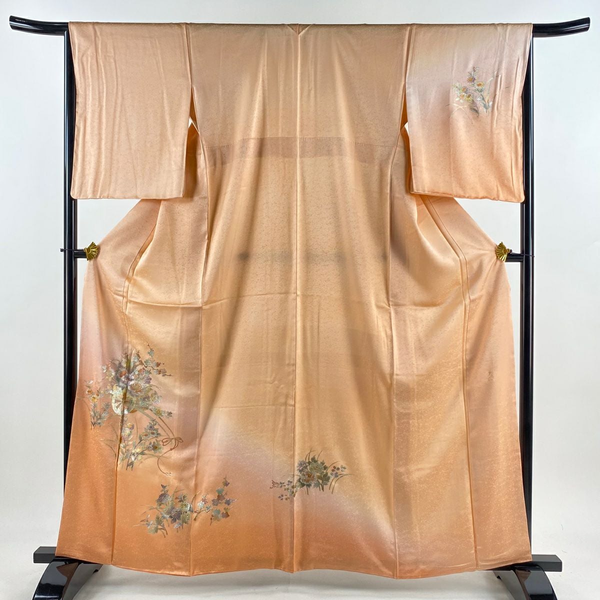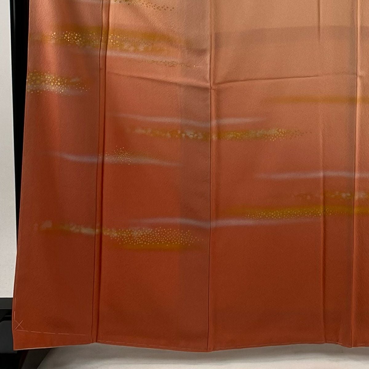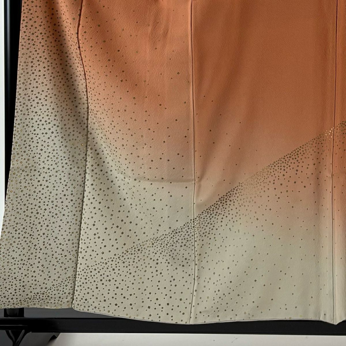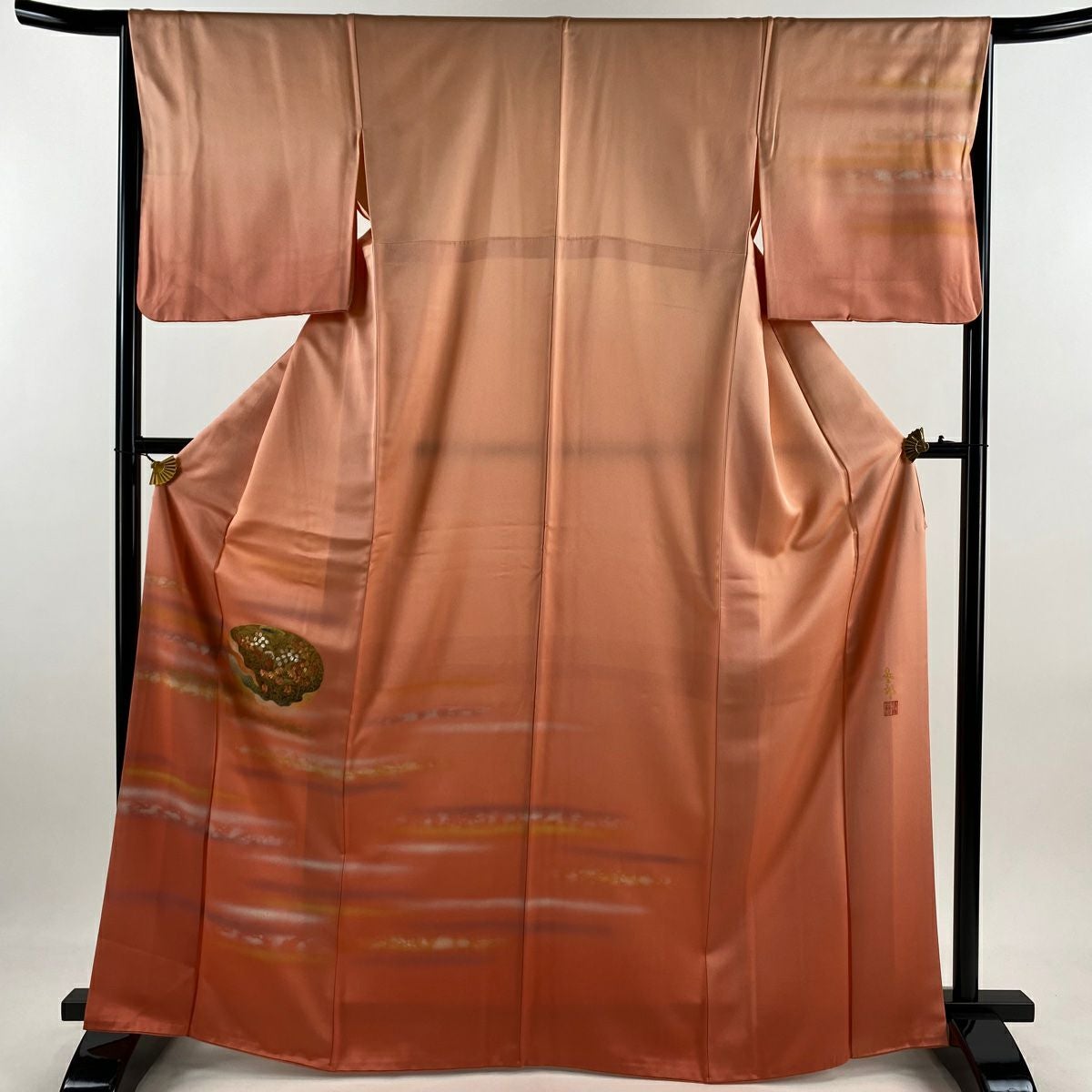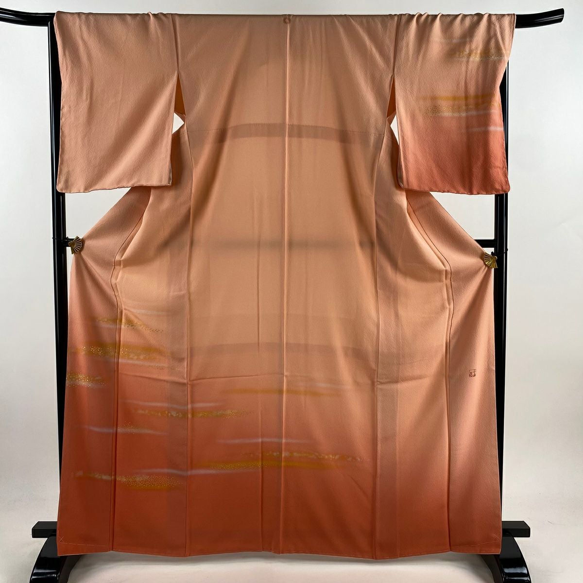 他の画像を見る 【在庫一掃】 【美品】 付下げ 身丈165.5cm 裄丈68cm L 袷 人間国宝 福田喜重 鈴乃屋 落款あり 霞 箔散らし 金彩 ぼかし 薄オレンジ 正絹 逸品 一つ紋 ¥ 12,540 税込