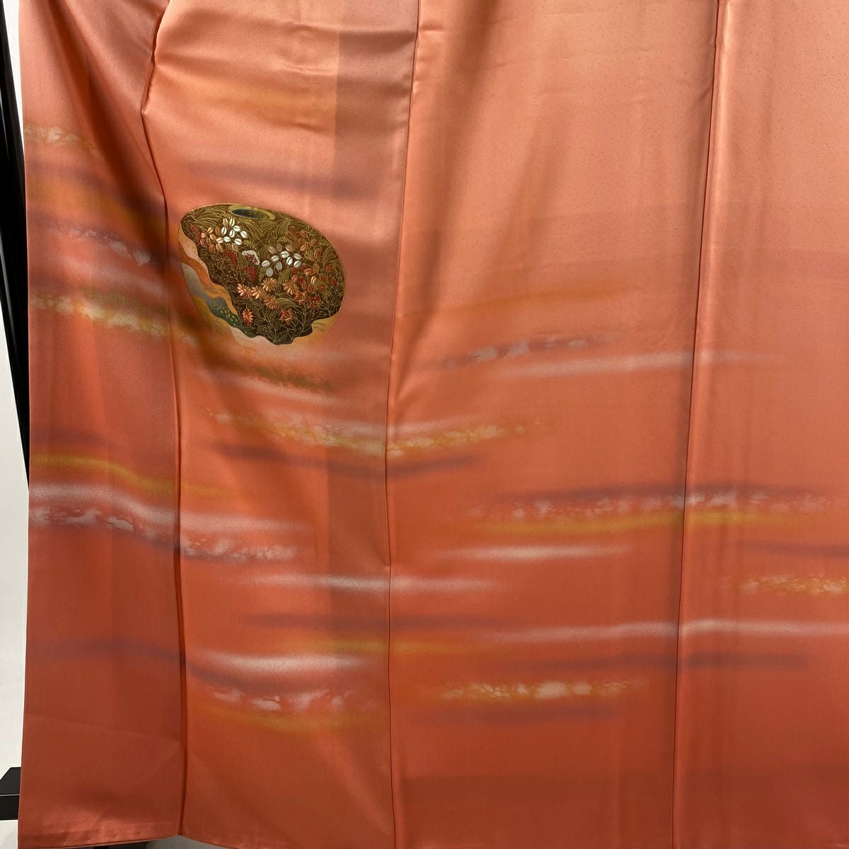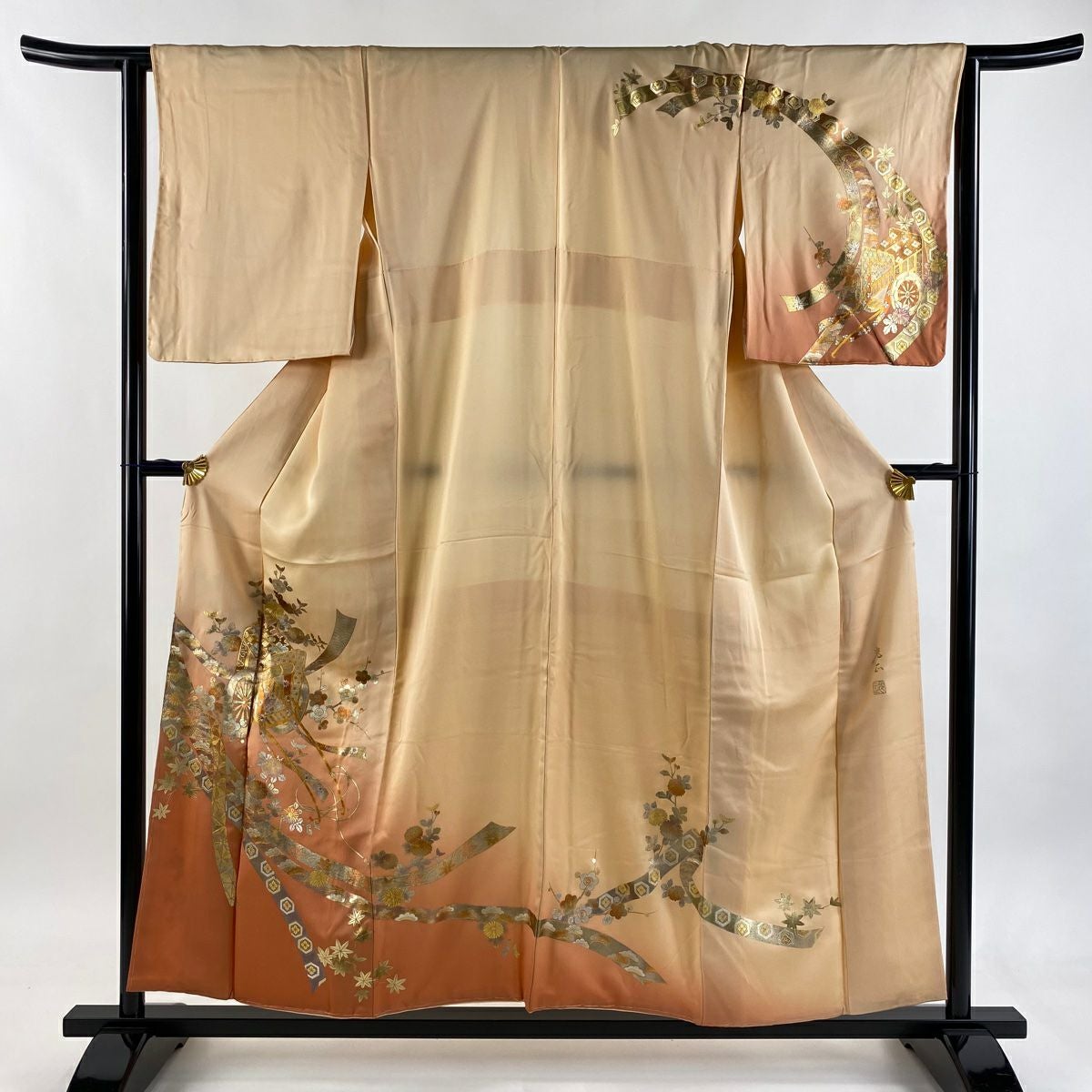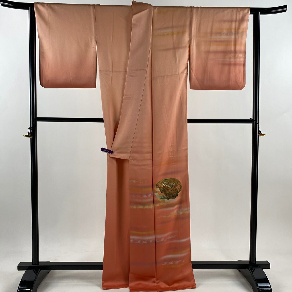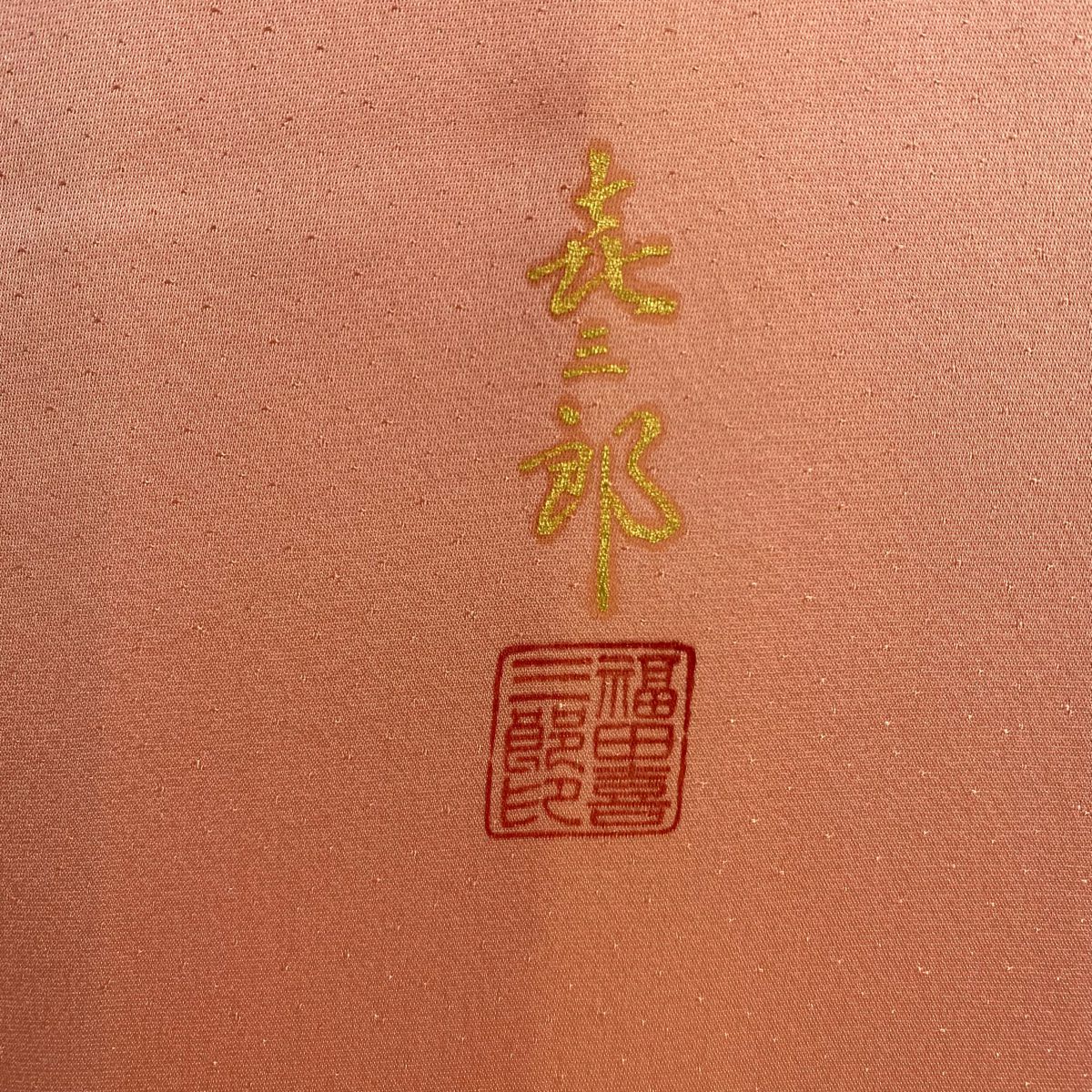 他の画像を見る 【在庫一掃】 【美品】 付下げ 身丈165.5cm 裄丈68cm L 袷 人間国宝 福田喜重 鈴乃屋 落款あり 霞 箔散らし 金彩 ぼかし 薄オレンジ 正絹 逸品 一つ紋 ¥ 12,540 税込