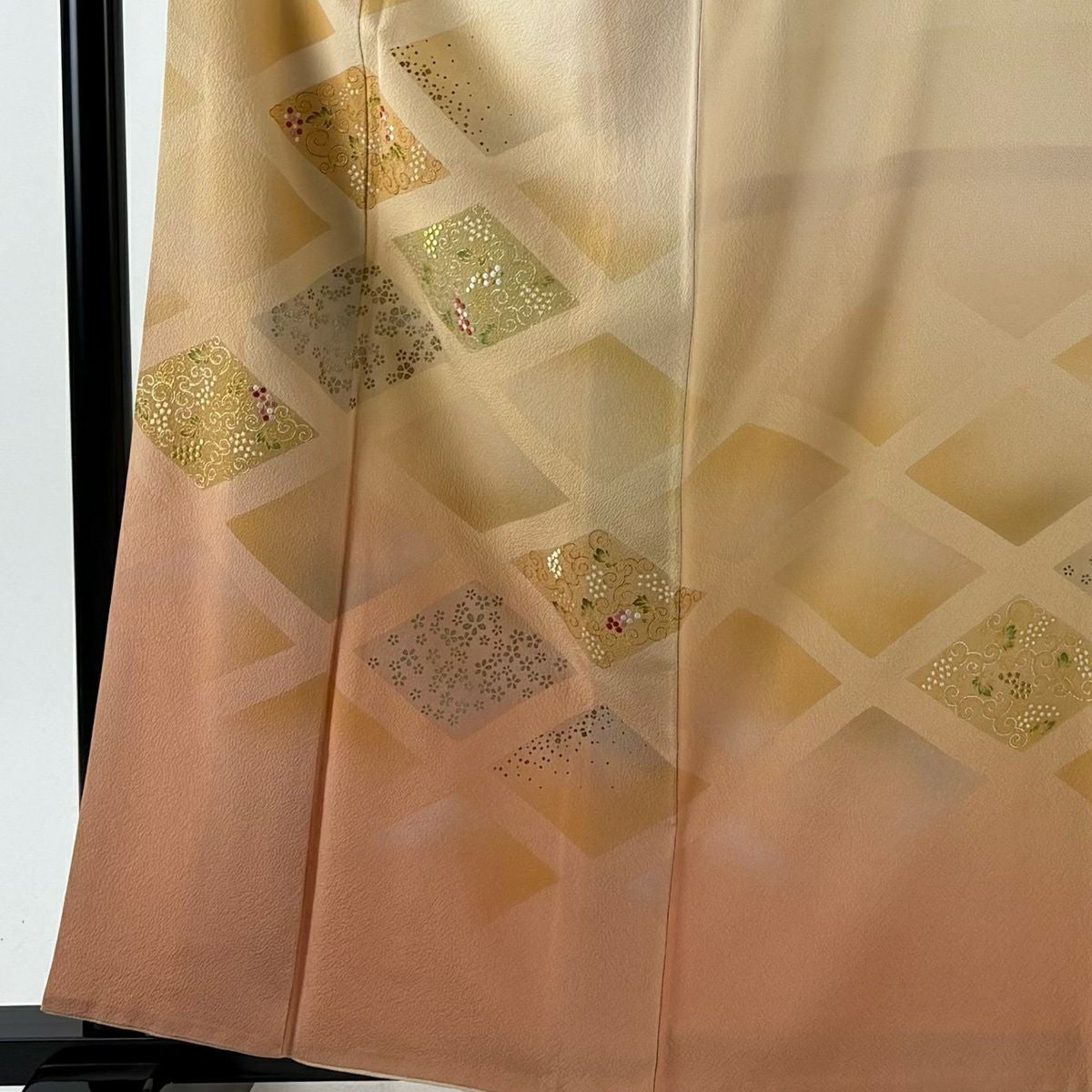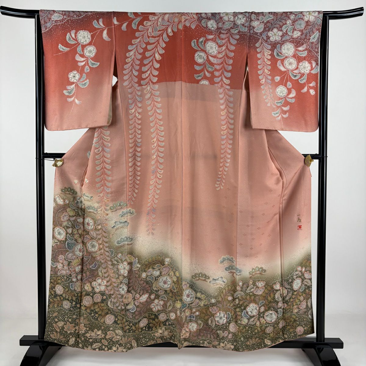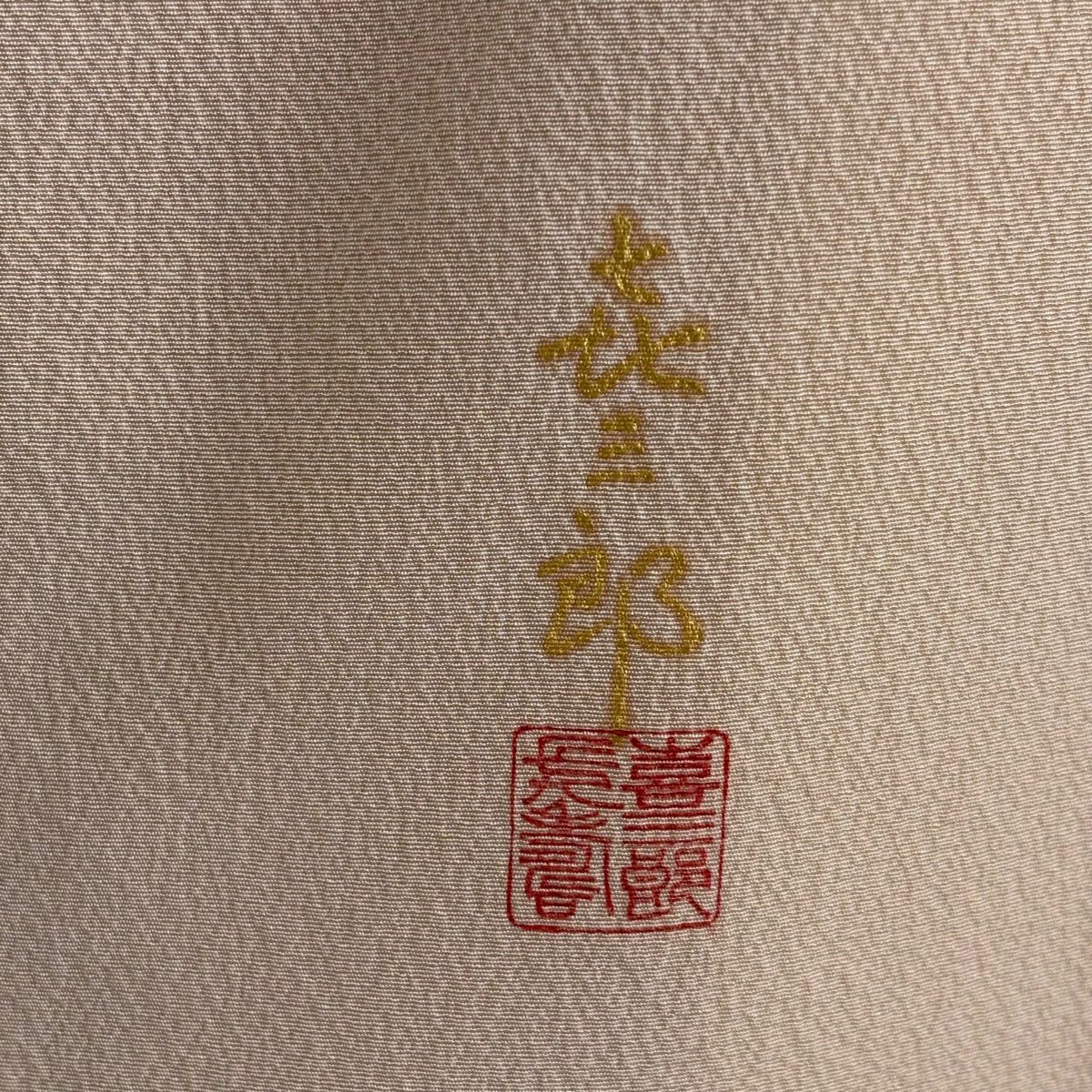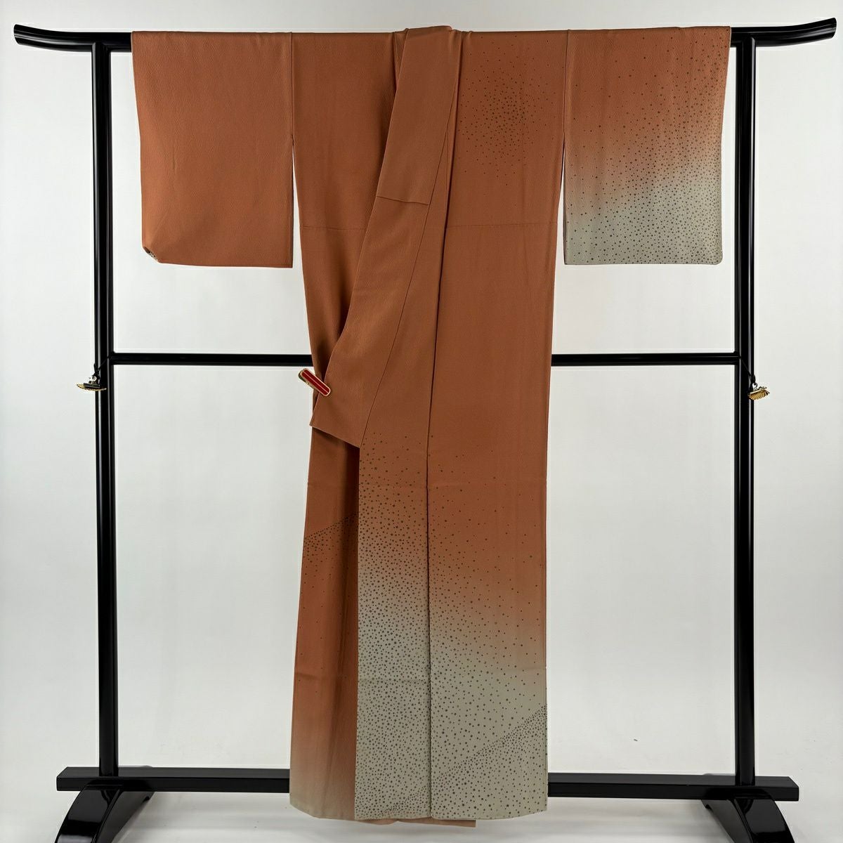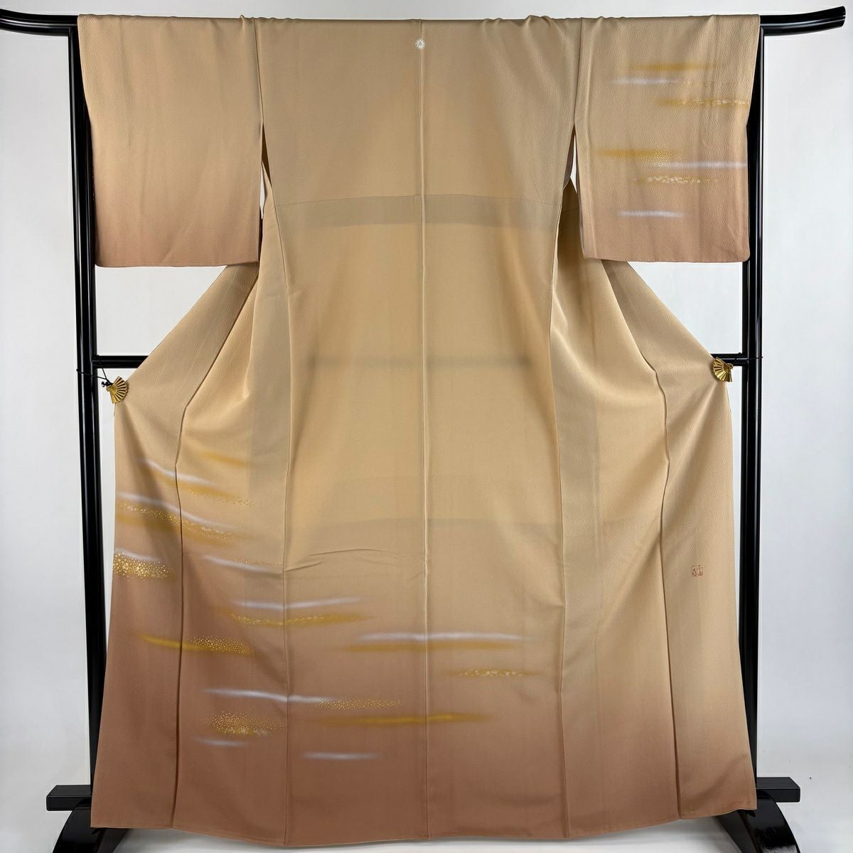 他の画像を見る 【在庫一掃】 【美品】 付下げ 身丈165.5cm 裄丈68cm L 袷 人間国宝 福田喜重 鈴乃屋 落款あり 霞 箔散らし 金彩 ぼかし 薄オレンジ 正絹 逸品 一つ紋 ¥ 12,540 税込