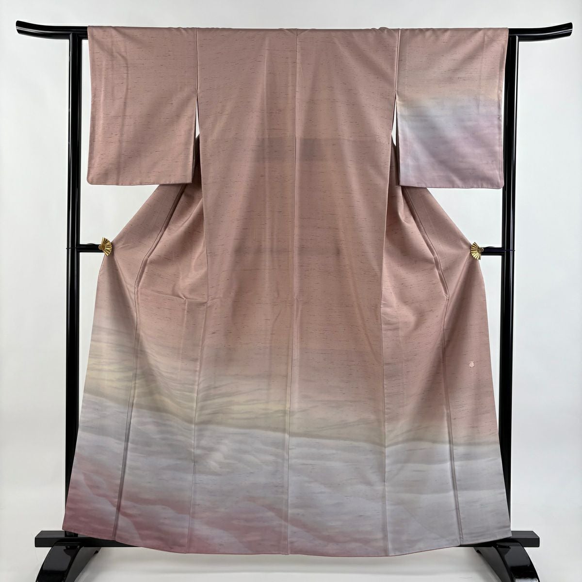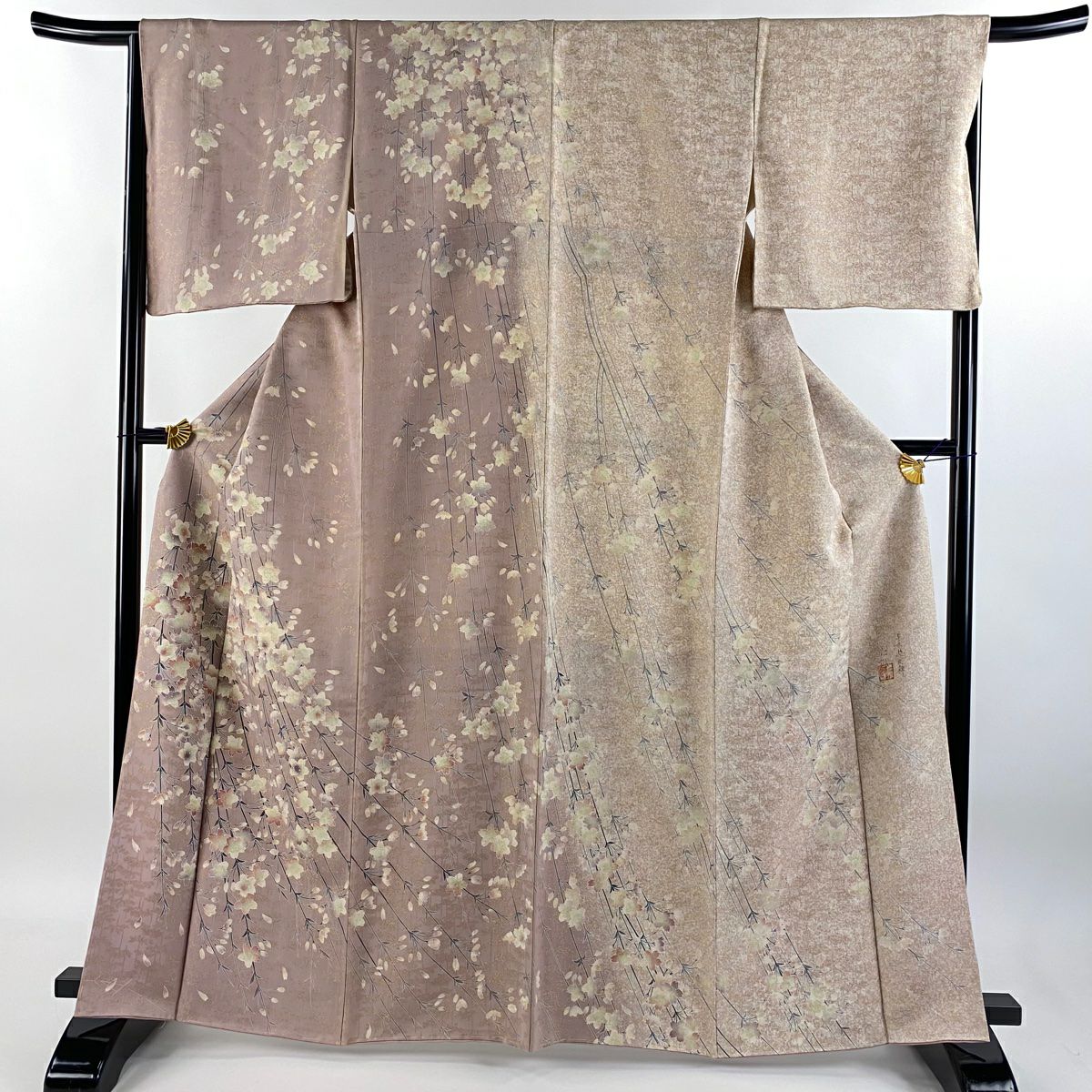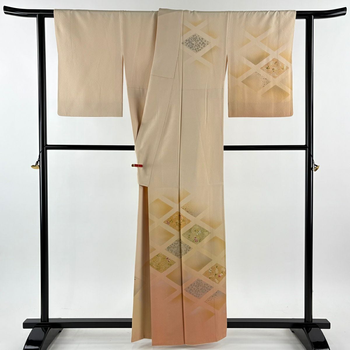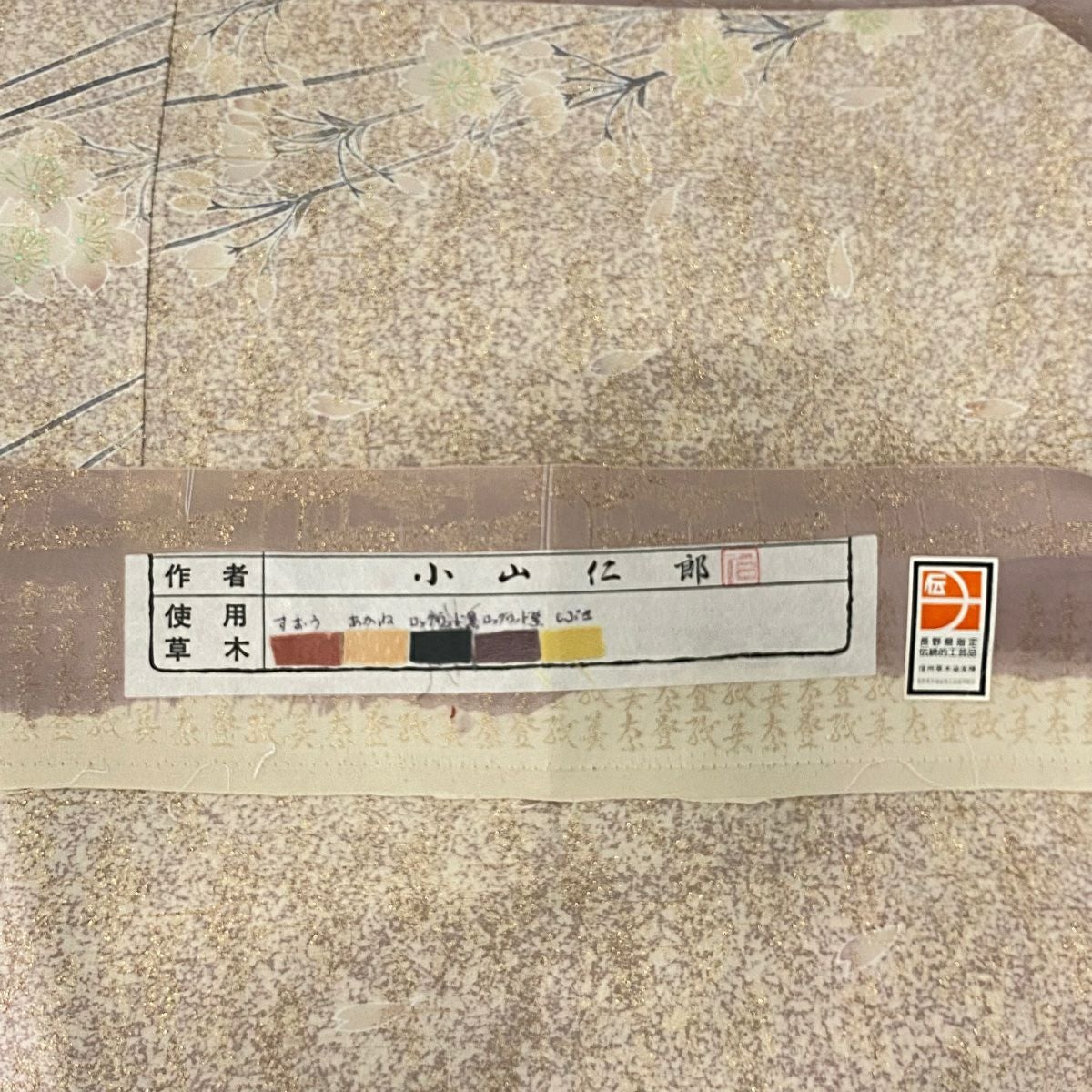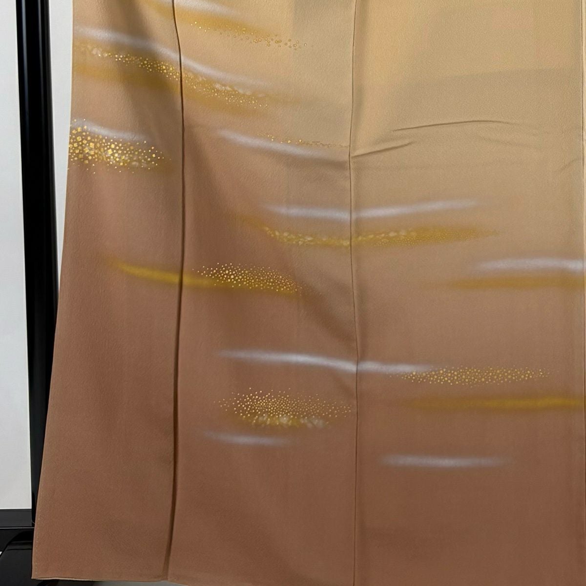 他の画像を見る 【在庫一掃】 【美品】 付下げ 身丈165.5cm 裄丈68cm L 袷 人間国宝 福田喜重 鈴乃屋 落款あり 霞 箔散らし 金彩 ぼかし 薄オレンジ 正絹 逸品 一つ紋 ¥ 12,540 税込