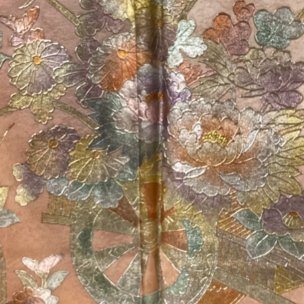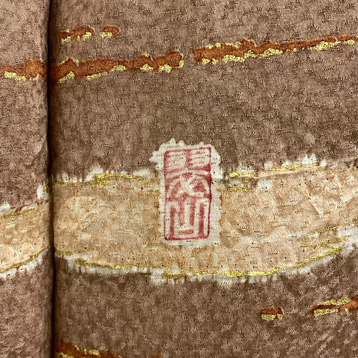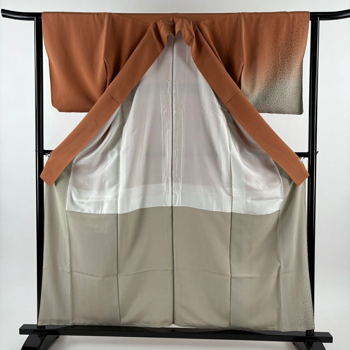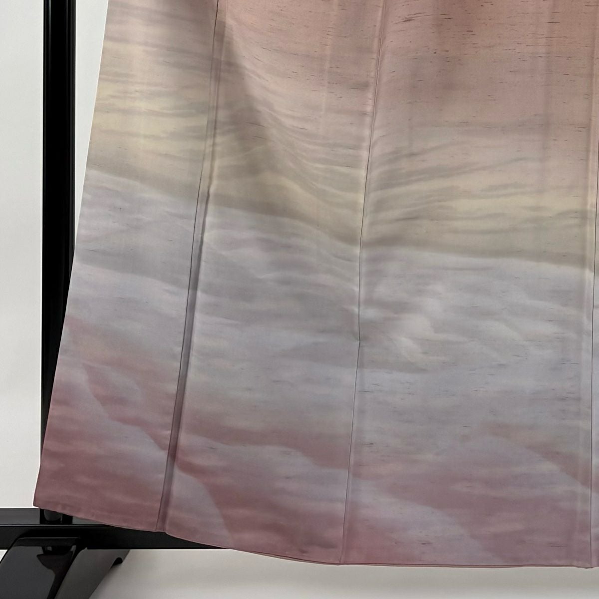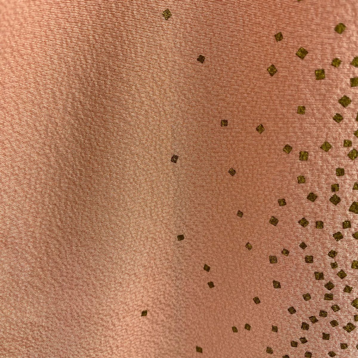 他の画像を見る 【在庫一掃】 【美品】 付下げ 身丈165.5cm 裄丈68cm L 袷 人間国宝 福田喜重 鈴乃屋 落款あり 霞 箔散らし 金彩 ぼかし 薄オレンジ 正絹 逸品 一つ紋 ¥ 12,540 税込