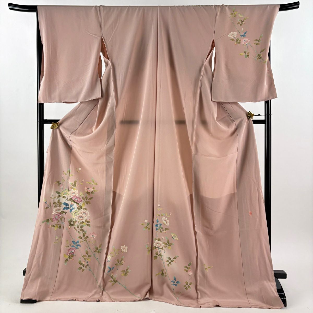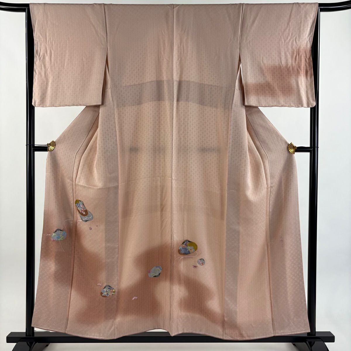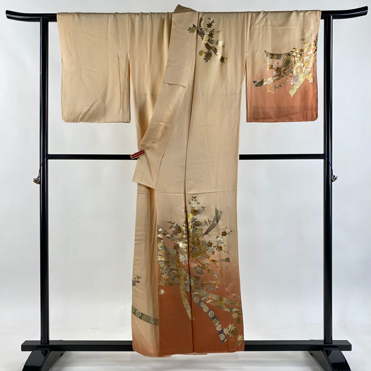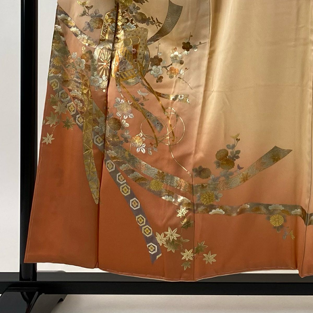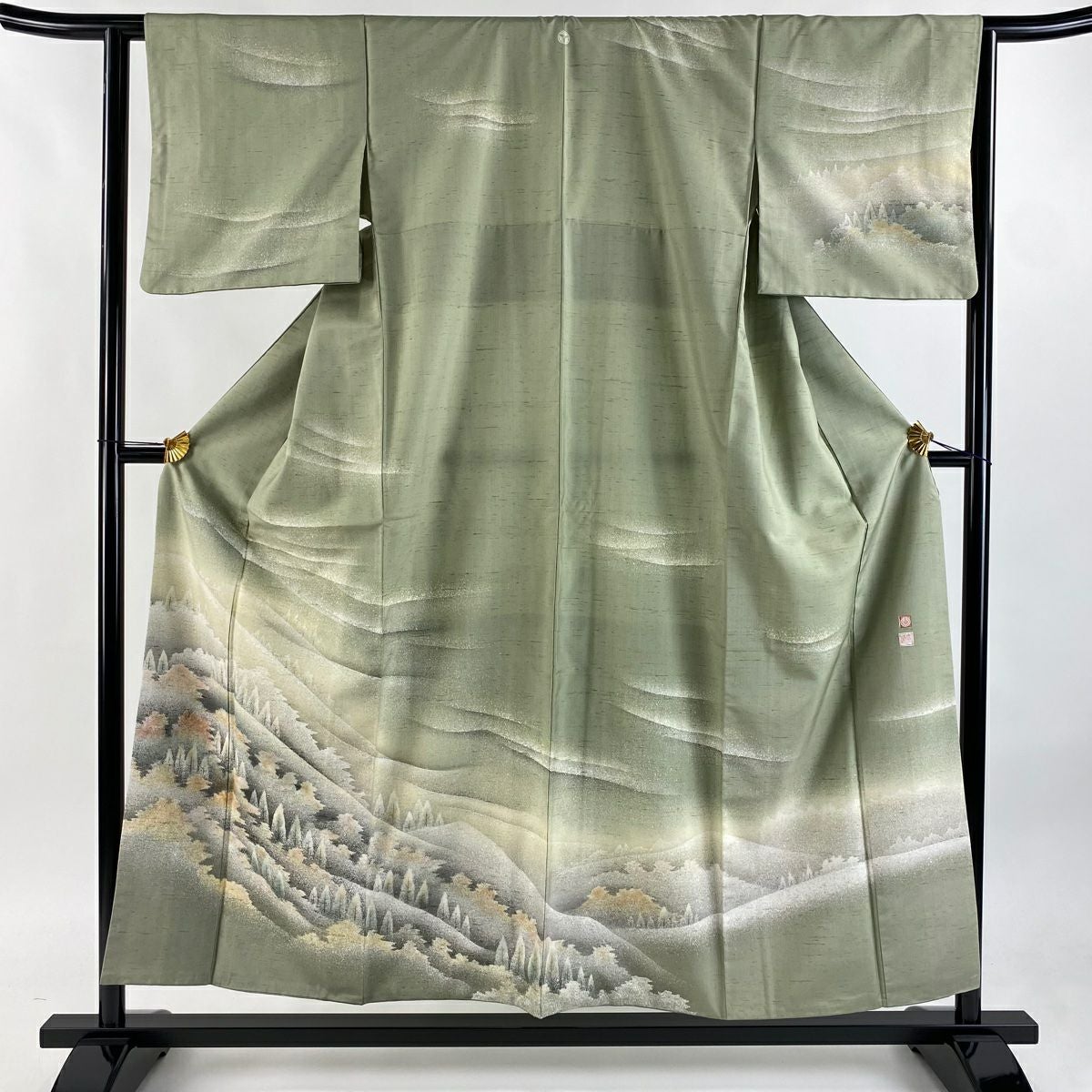 他の画像を見る 【在庫一掃】 【美品】 付下げ 身丈165.5cm 裄丈68cm L 袷 人間国宝 福田喜重 鈴乃屋 落款あり 霞 箔散らし 金彩 ぼかし 薄オレンジ 正絹 逸品 一つ紋 ¥ 12,540 税込