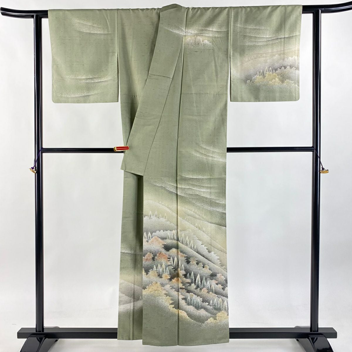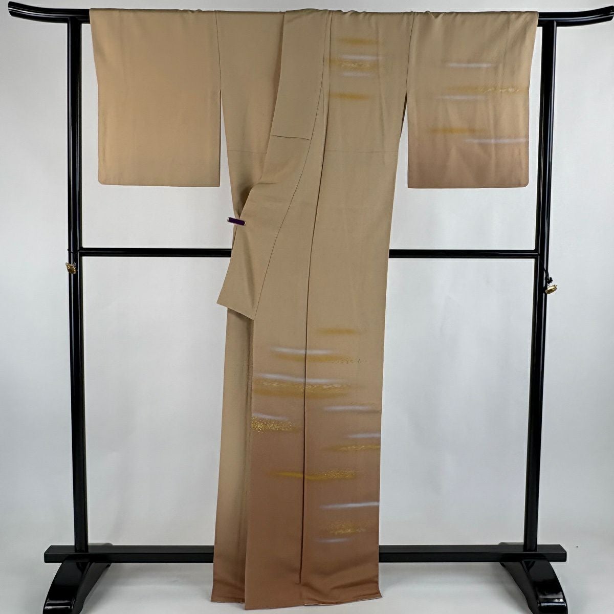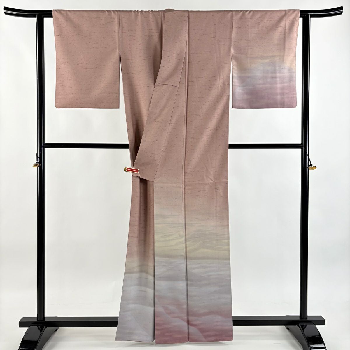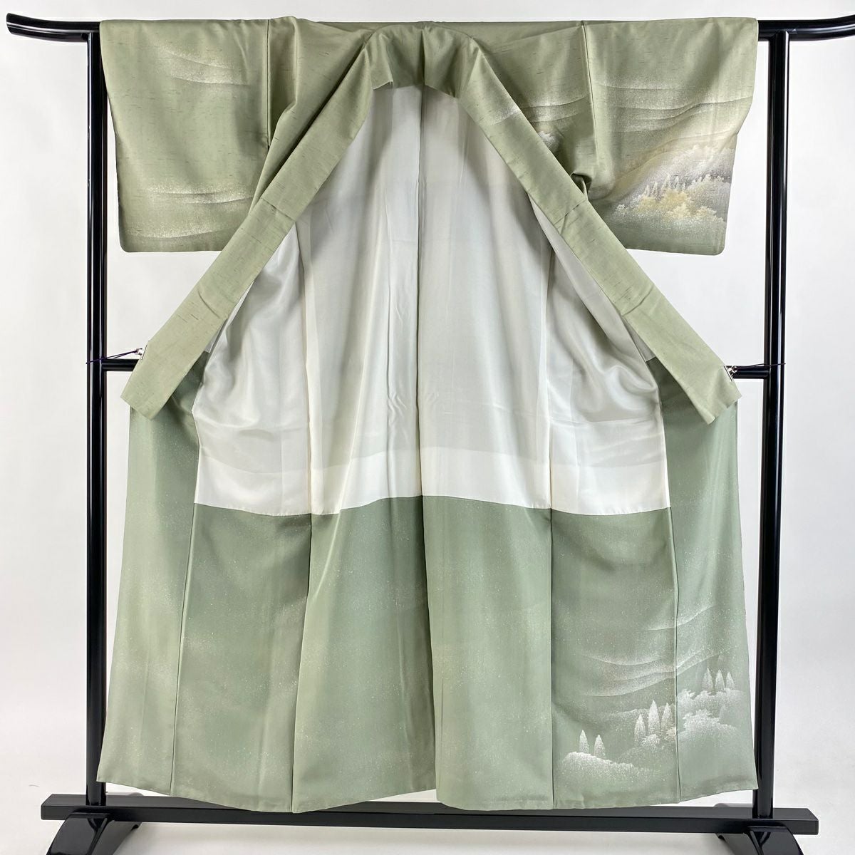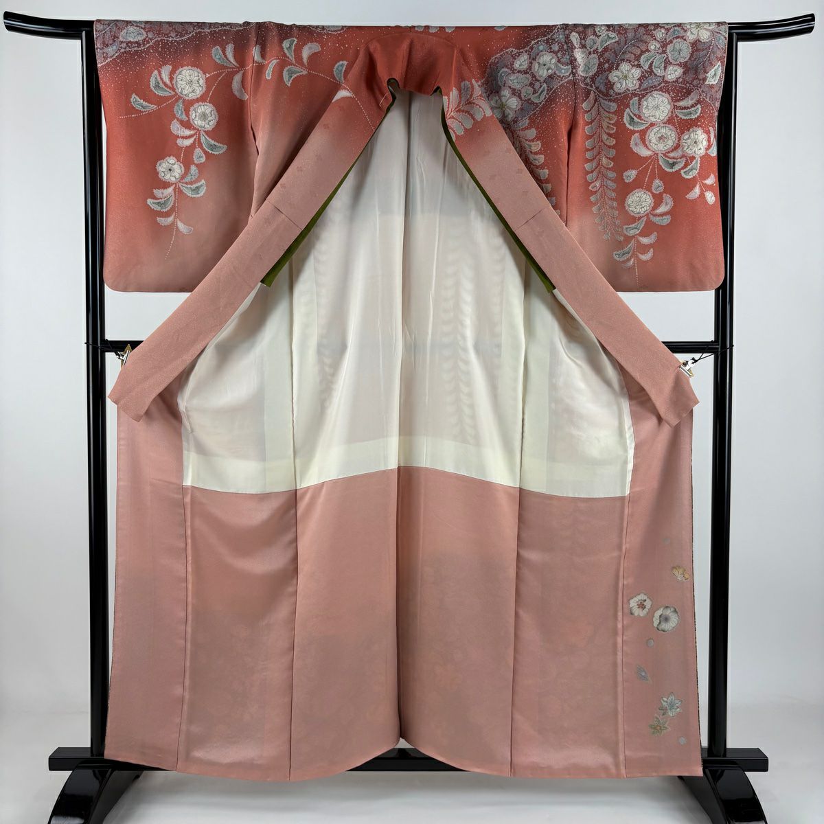 他の画像を見る 【在庫一掃】 【美品】 付下げ 身丈165.5cm 裄丈68cm L 袷 人間国宝 福田喜重 鈴乃屋 落款あり 霞 箔散らし 金彩 ぼかし 薄オレンジ 正絹 逸品 一つ紋 ¥ 12,540 税込