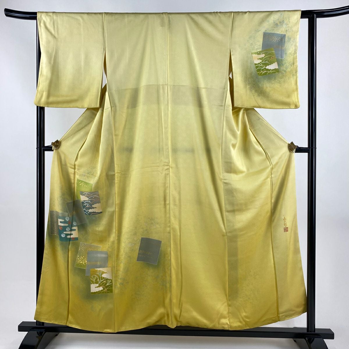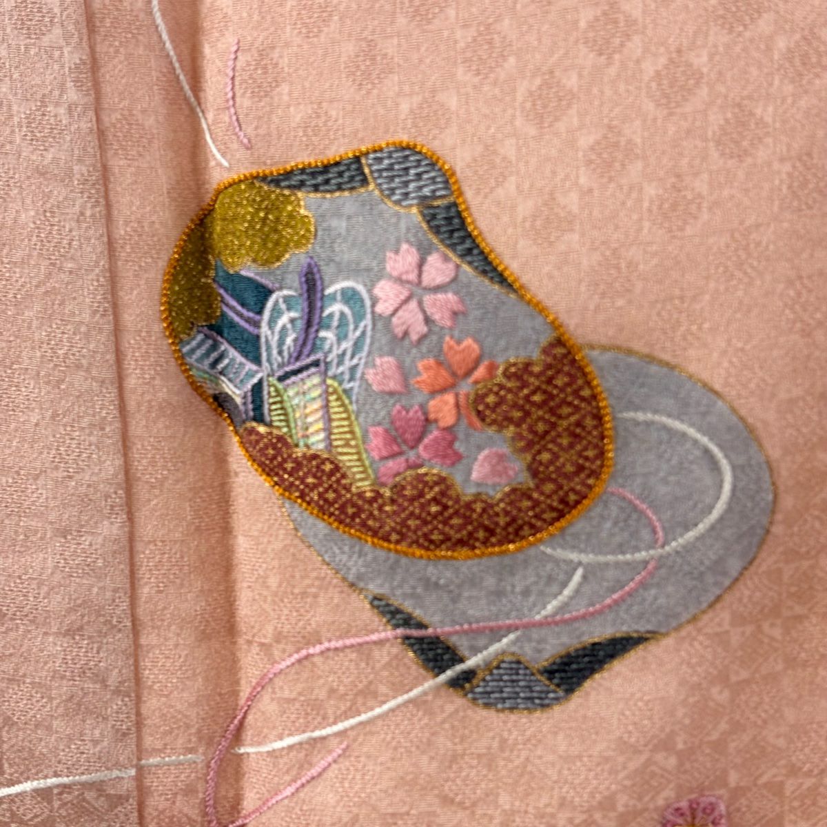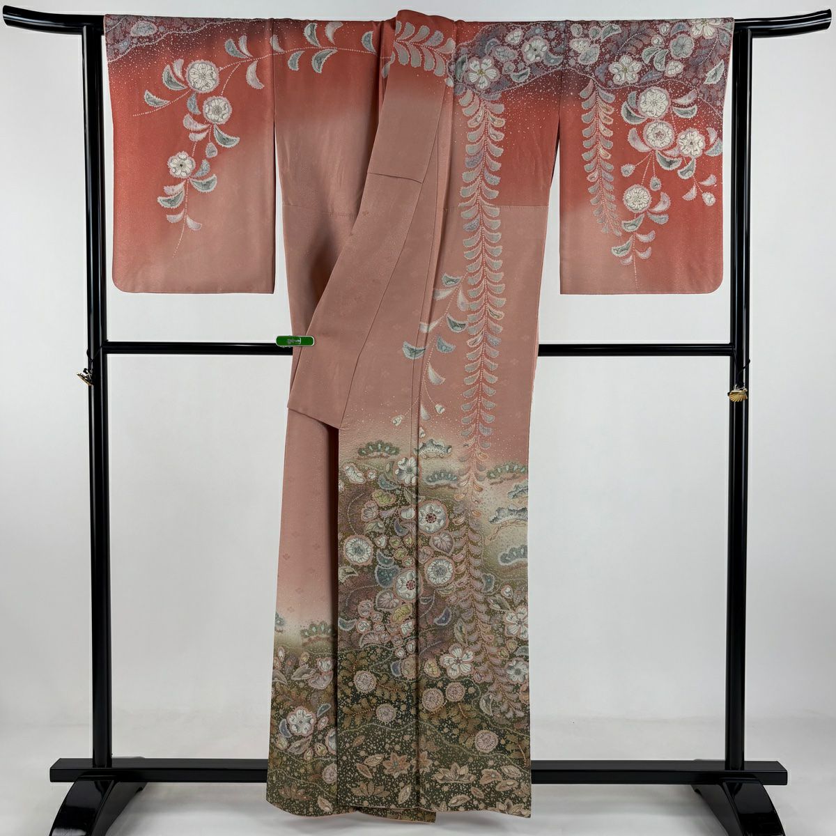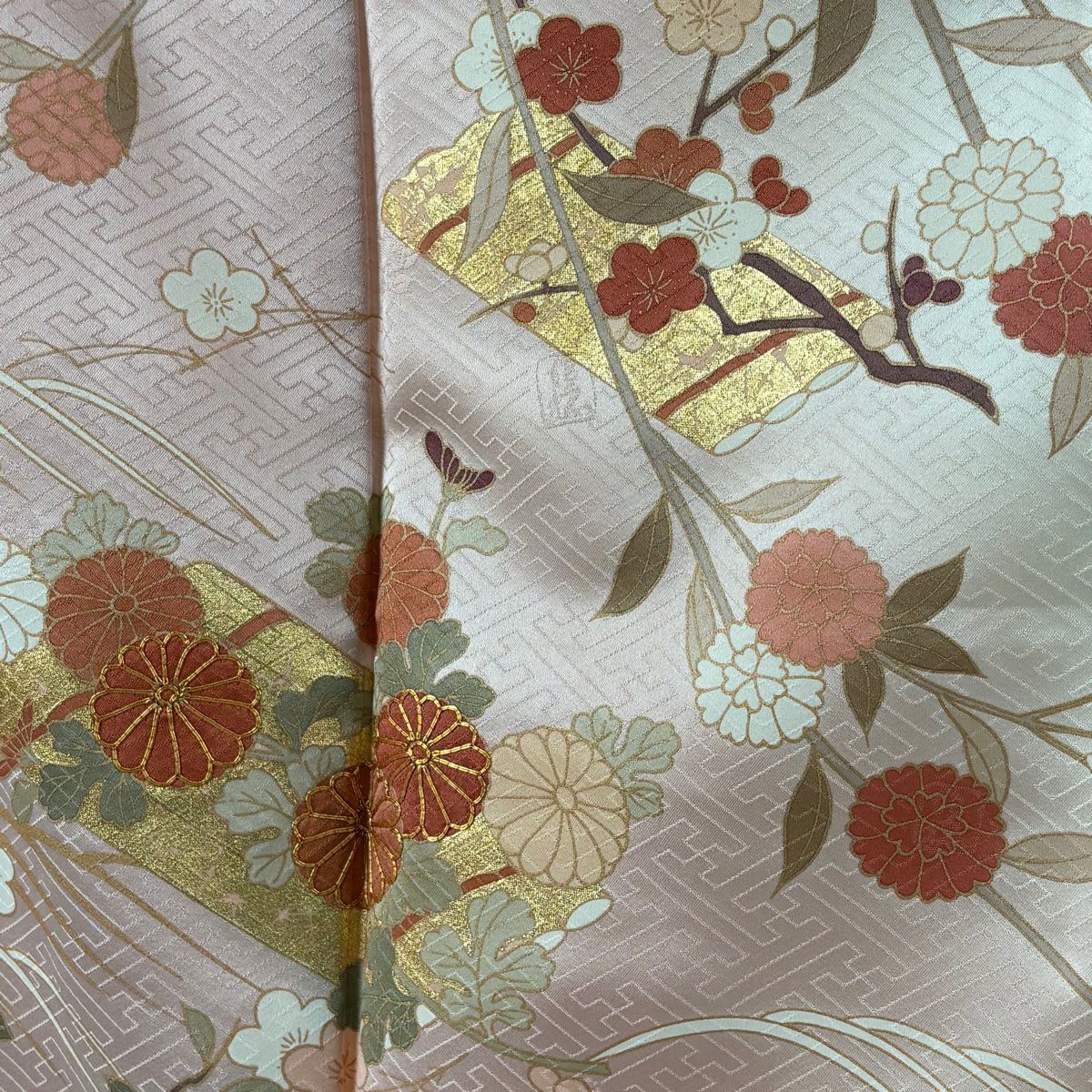 他の画像を見る 【在庫一掃】 【美品】 付下げ 身丈165.5cm 裄丈68cm L 袷 人間国宝 福田喜重 鈴乃屋 落款あり 霞 箔散らし 金彩 ぼかし 薄オレンジ 正絹 逸品 一つ紋 ¥ 12,540 税込